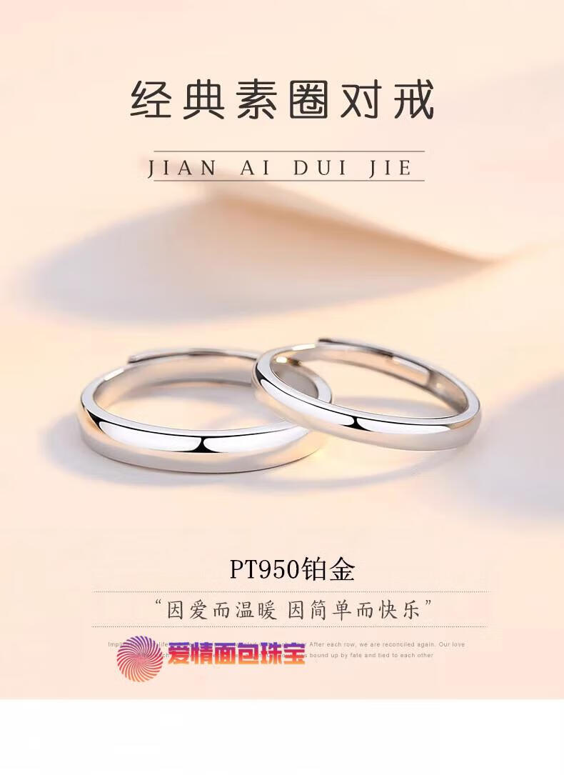 Qianjun pt950 platinum ring ring PT950 smooth solid 18k gold couple ring diamond ring for girlfriend and lover to embrace each other for the rest of their lives, couple ring pair