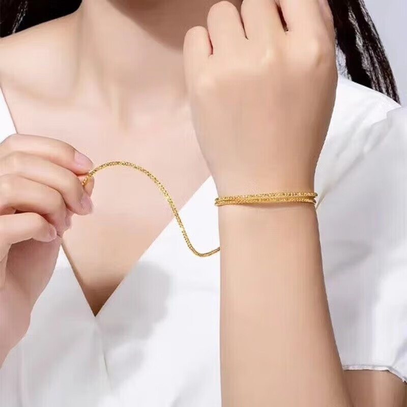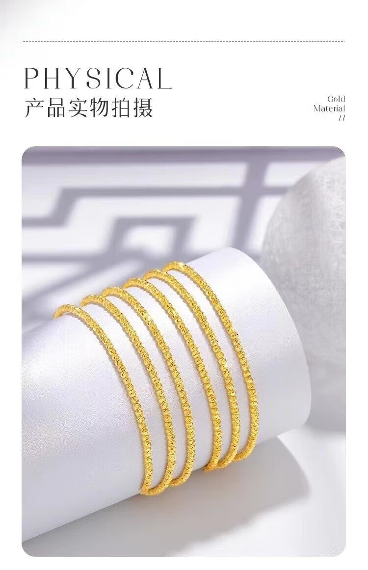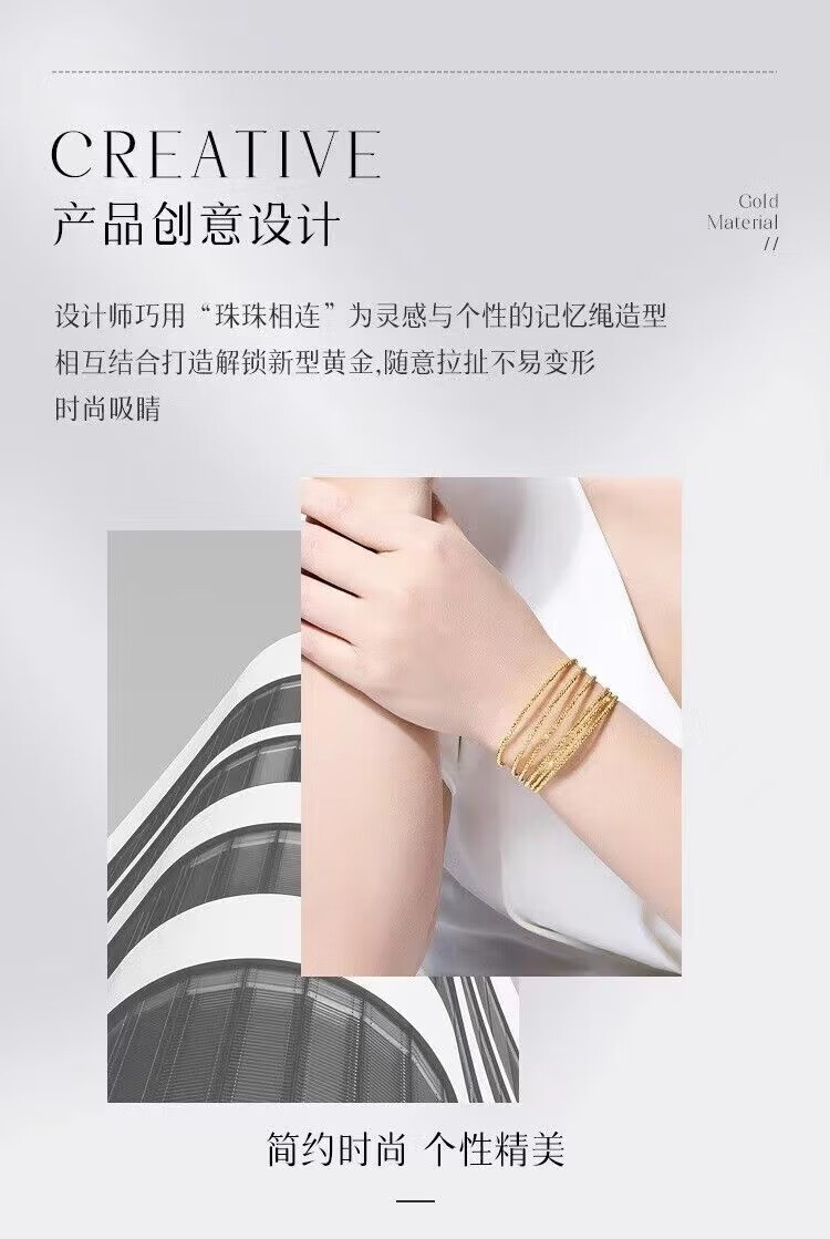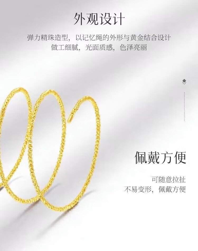 Qianjun Lao Phoenix Gold Store Gold 999 Bungee Bracelet Flashing Three Circles Bounce Beads Memory Elastic Broken Gold Plated 5 1.35g