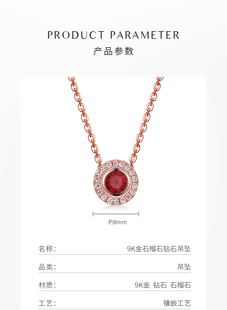 Chiba Jewelry 9K gold garnet and diamond pendant has a light luxury niche design as a gift for your girlfriend. 9K gold garnet and diamond pendant. Approximately 0.48g/subject to actual situation.