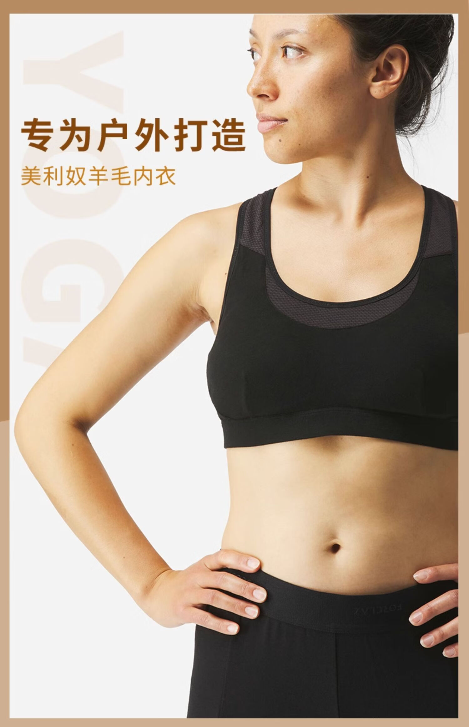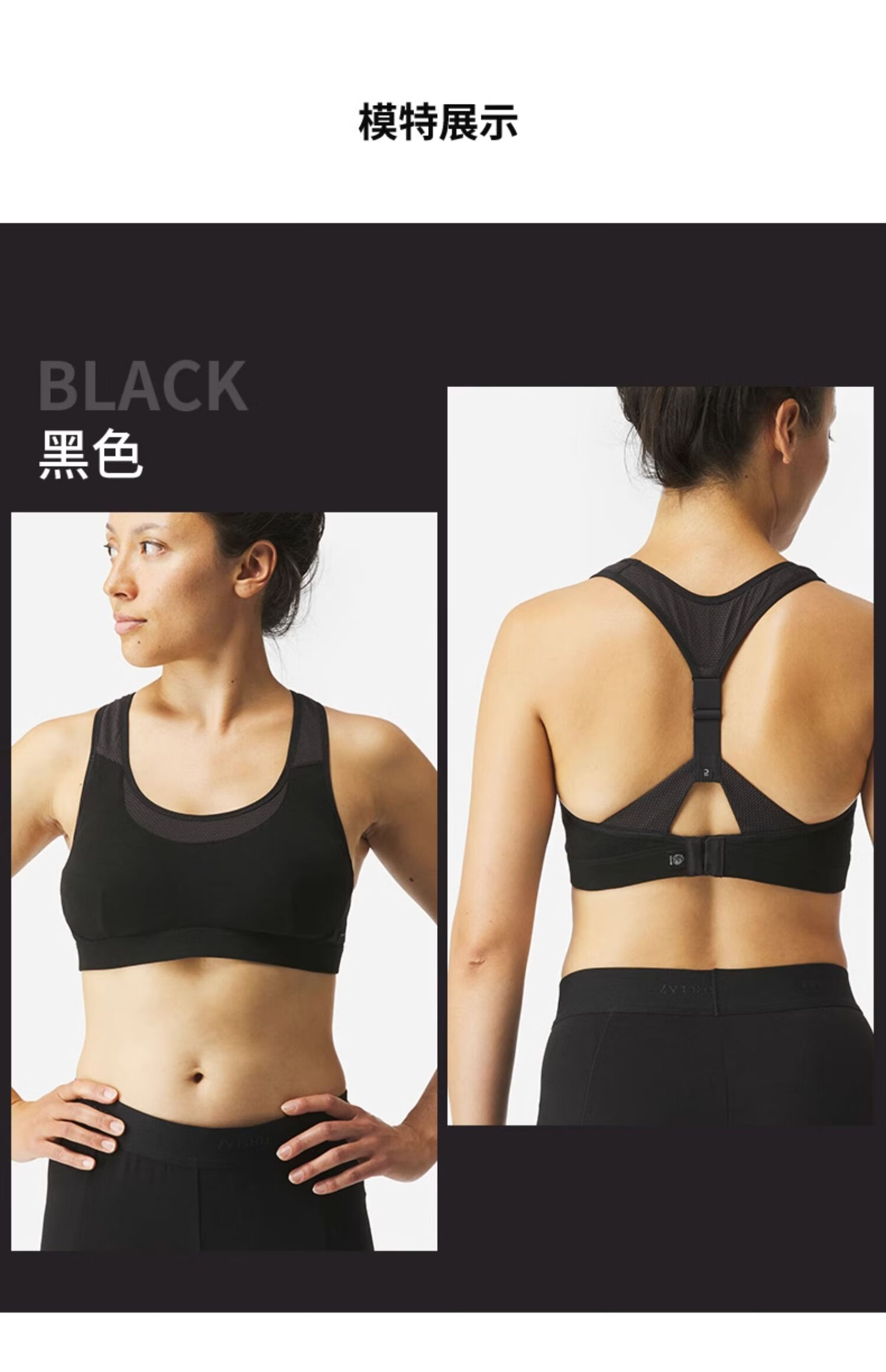 DECATHLON Sports Bra Women's Merino Wool Quick-Drying Shockproof Running Yoga Vest High-Intensity Fitness Bra ODS Black xs