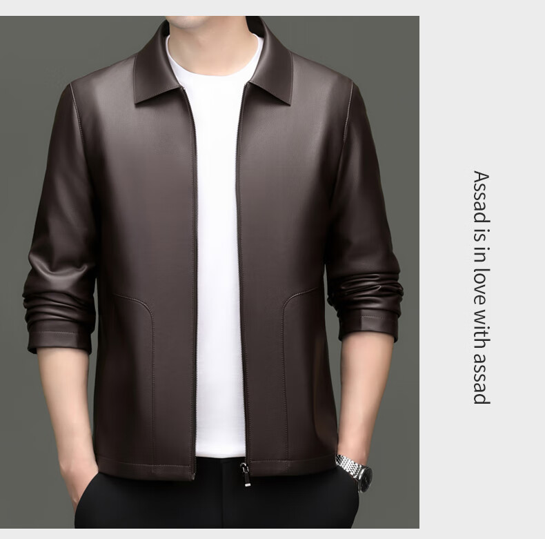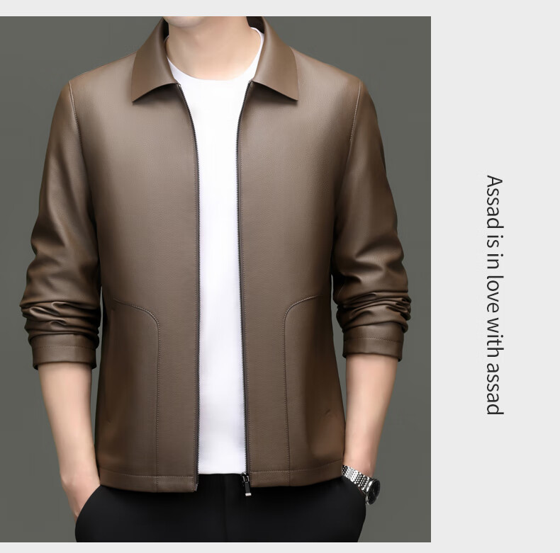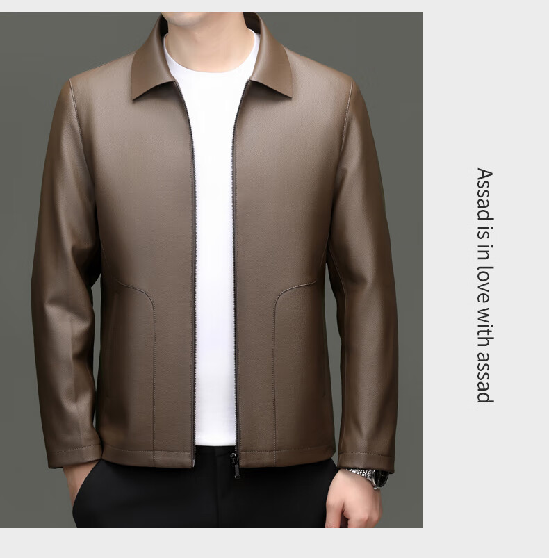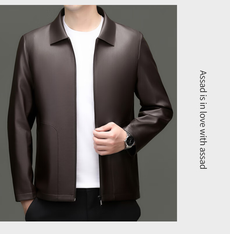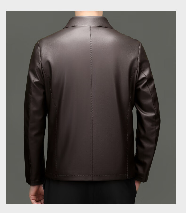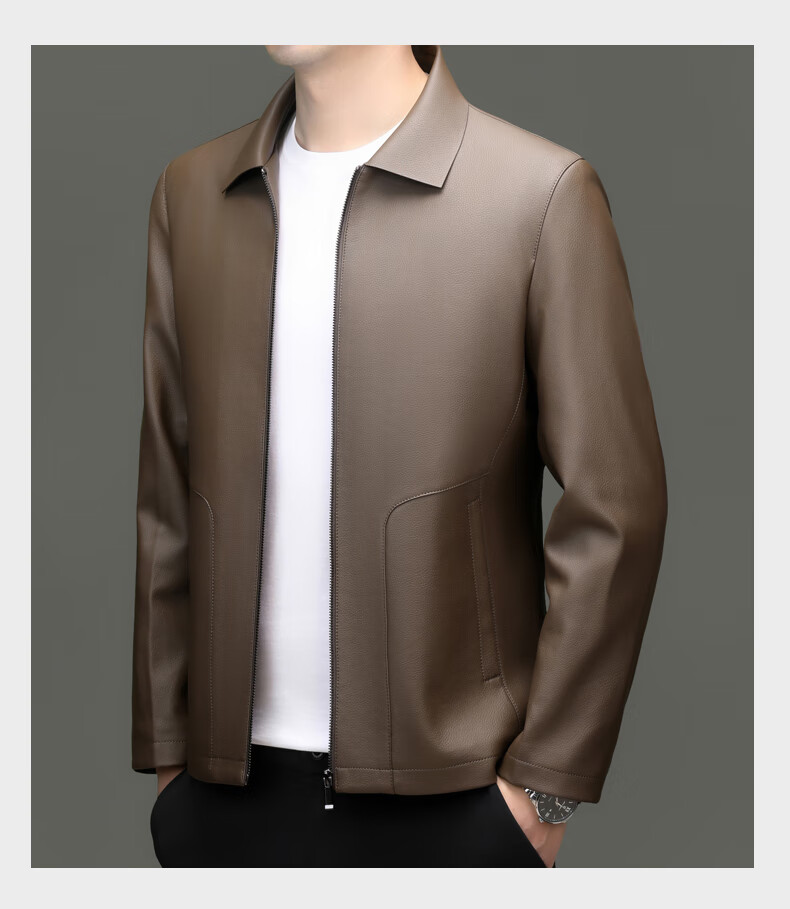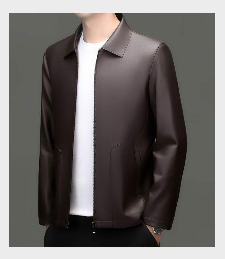 Pierre Cardin high-end leather jacket men's spring and autumn new lapel leather jacket middle-aged dad business casual cycling PU leather jacket coffee color 2XL (185)