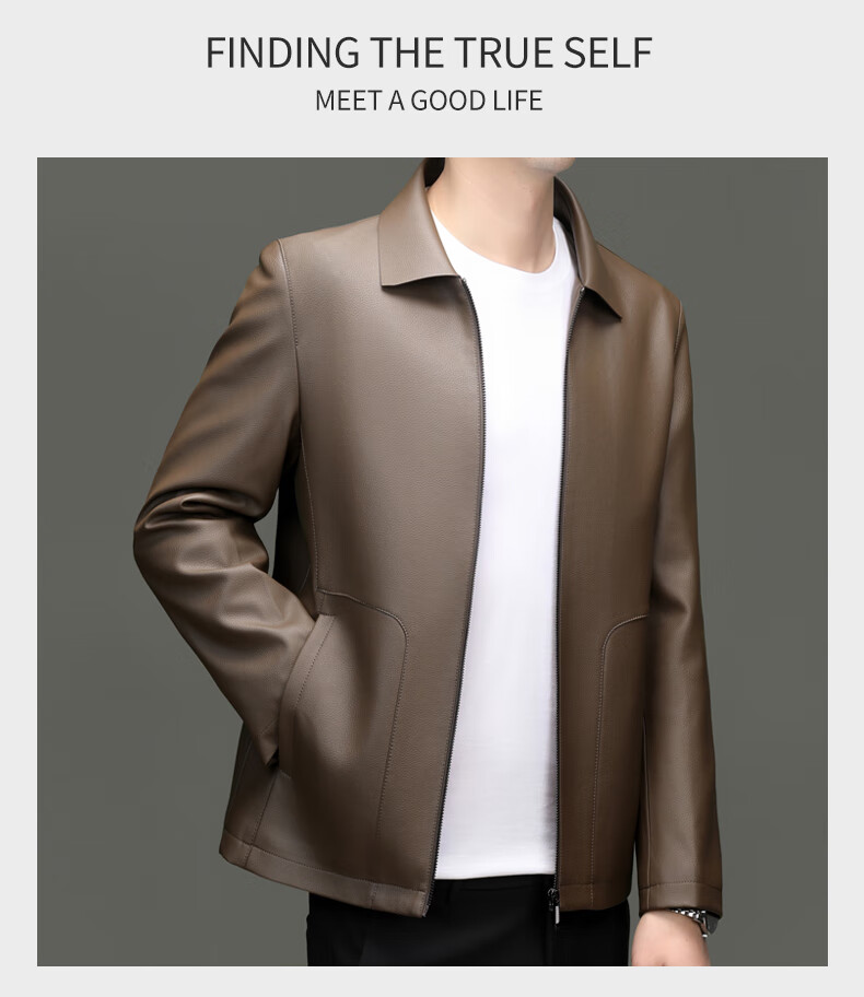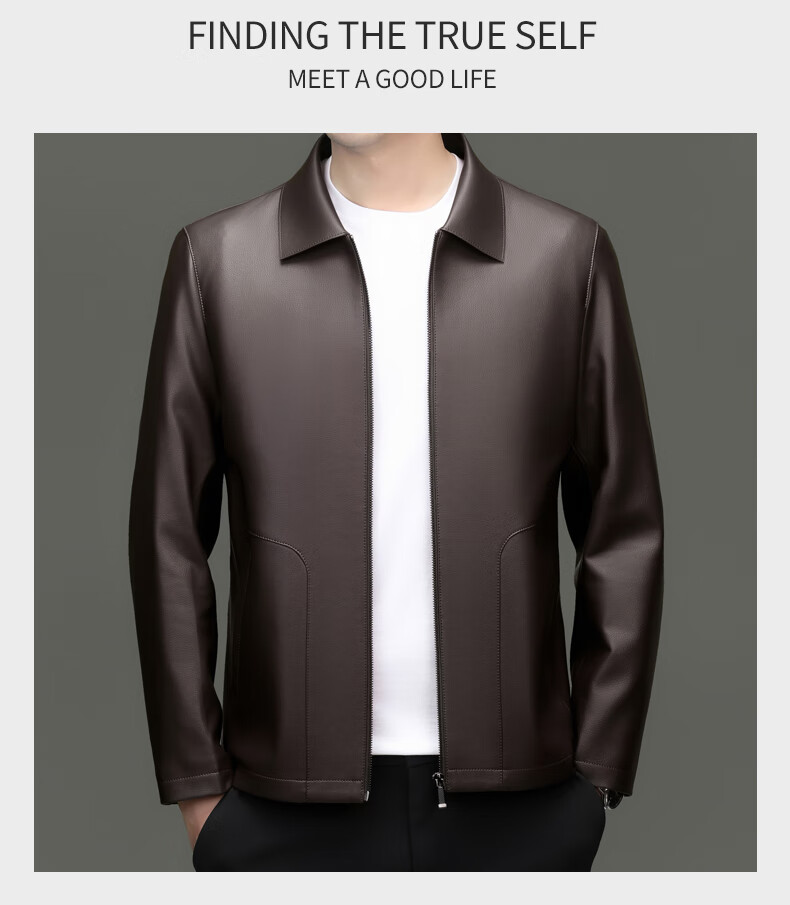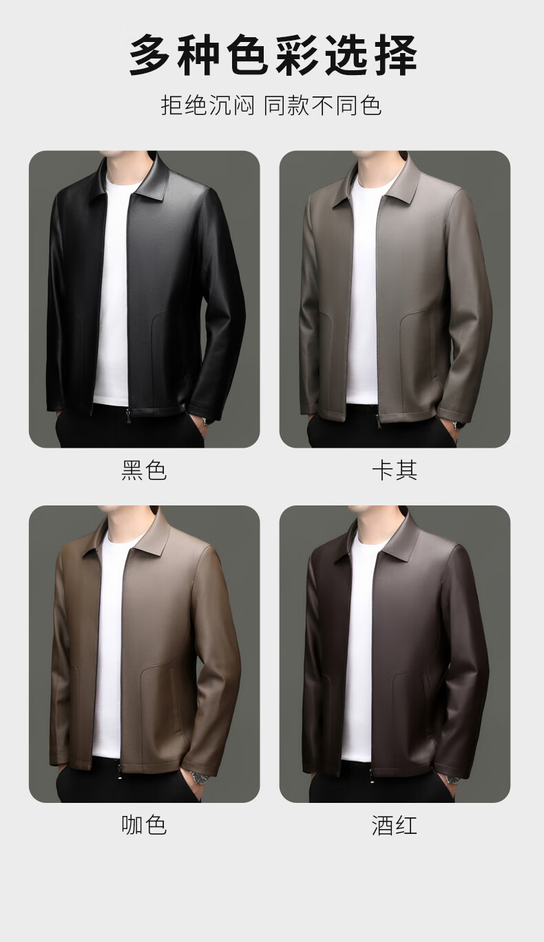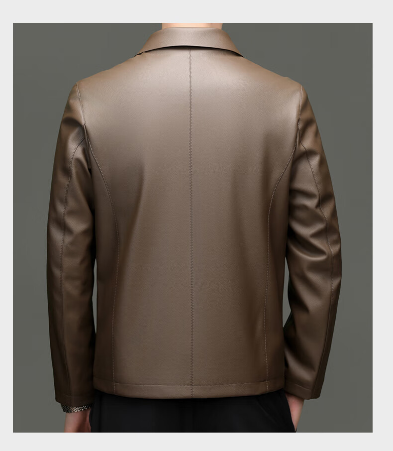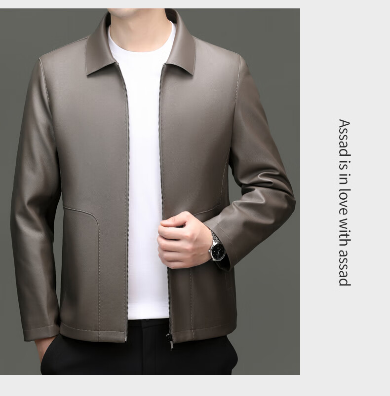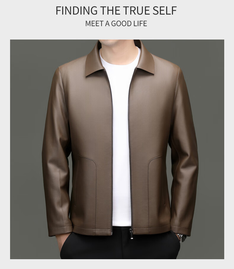 Pierre Cardin high-end leather jacket men's spring and autumn new lapel leather jacket middle-aged dad business casual cycling PU leather jacket coffee color 2XL (185)