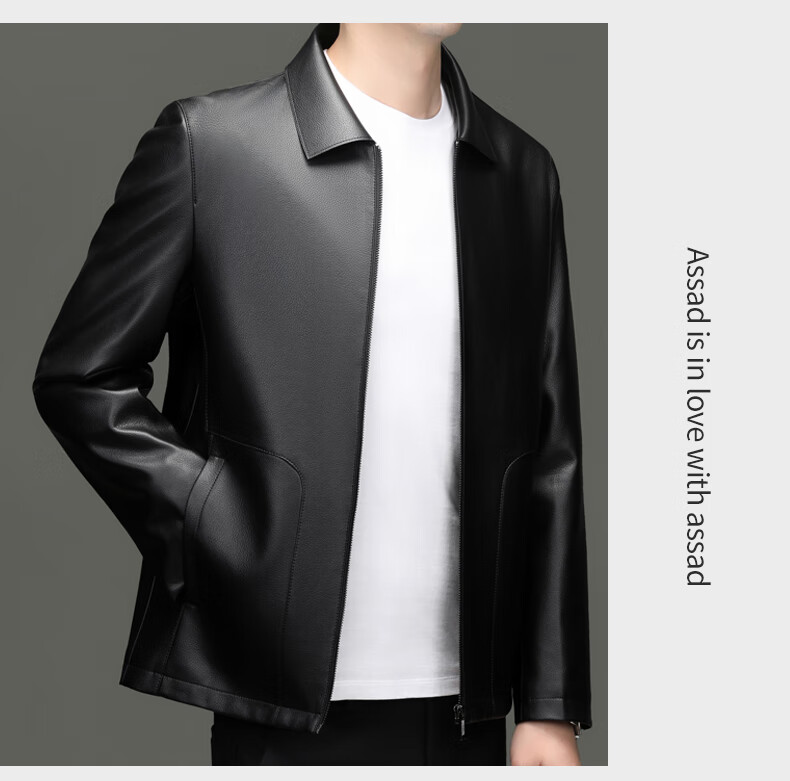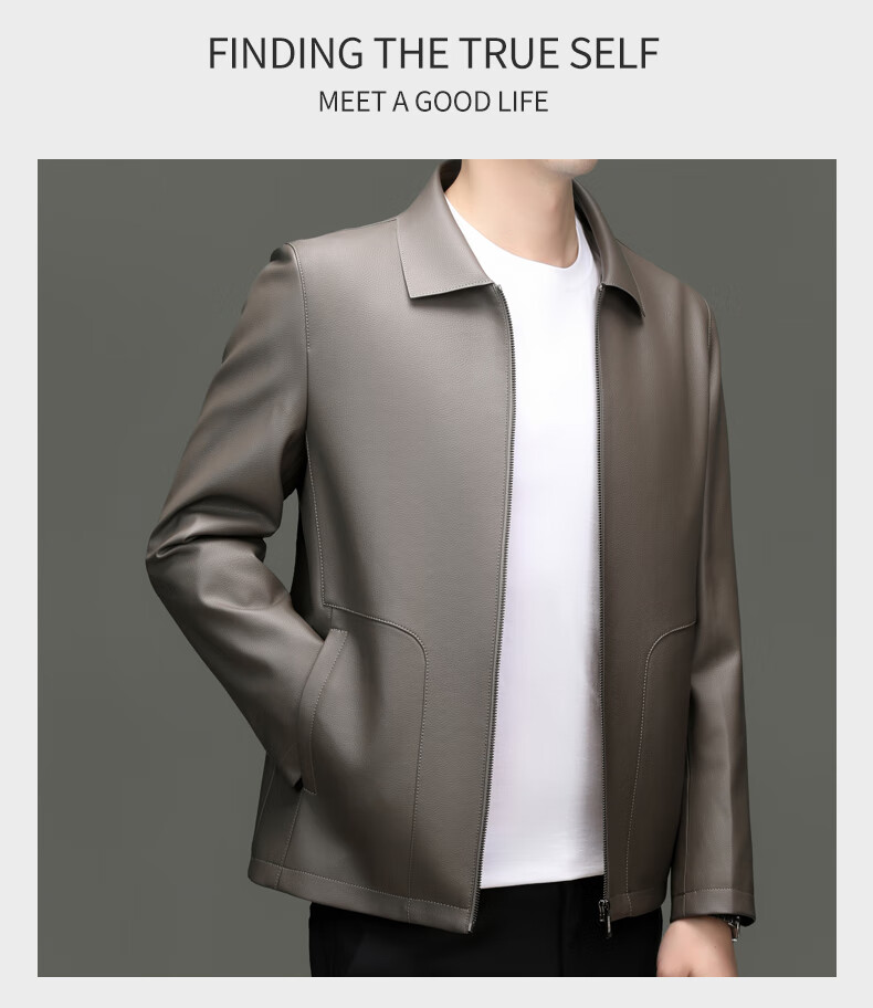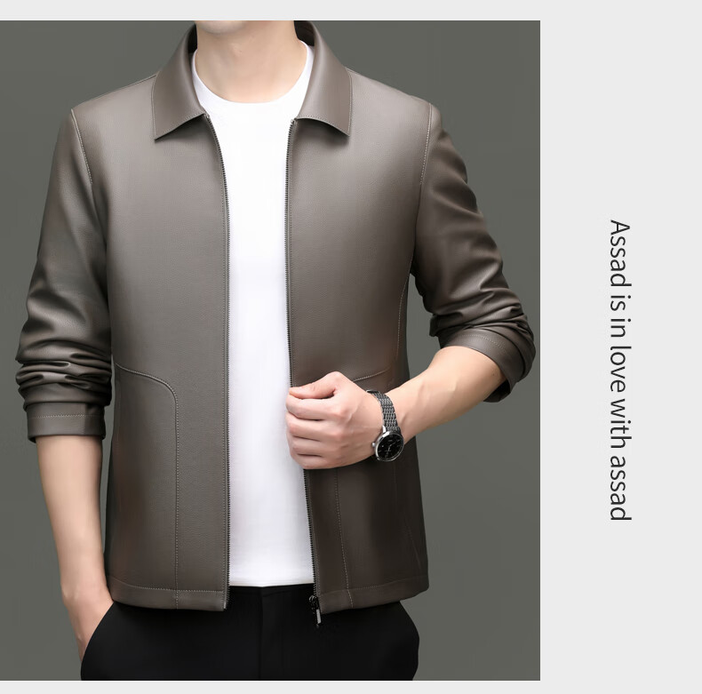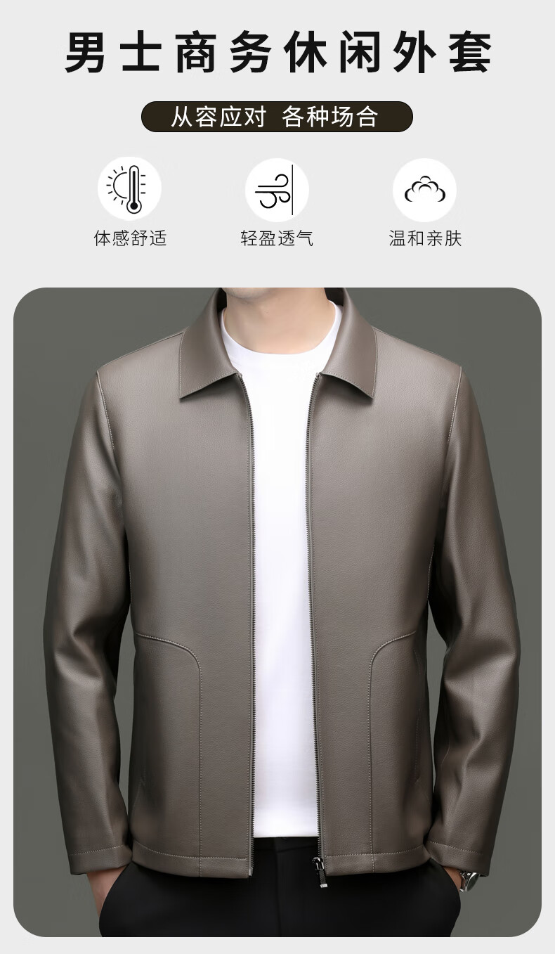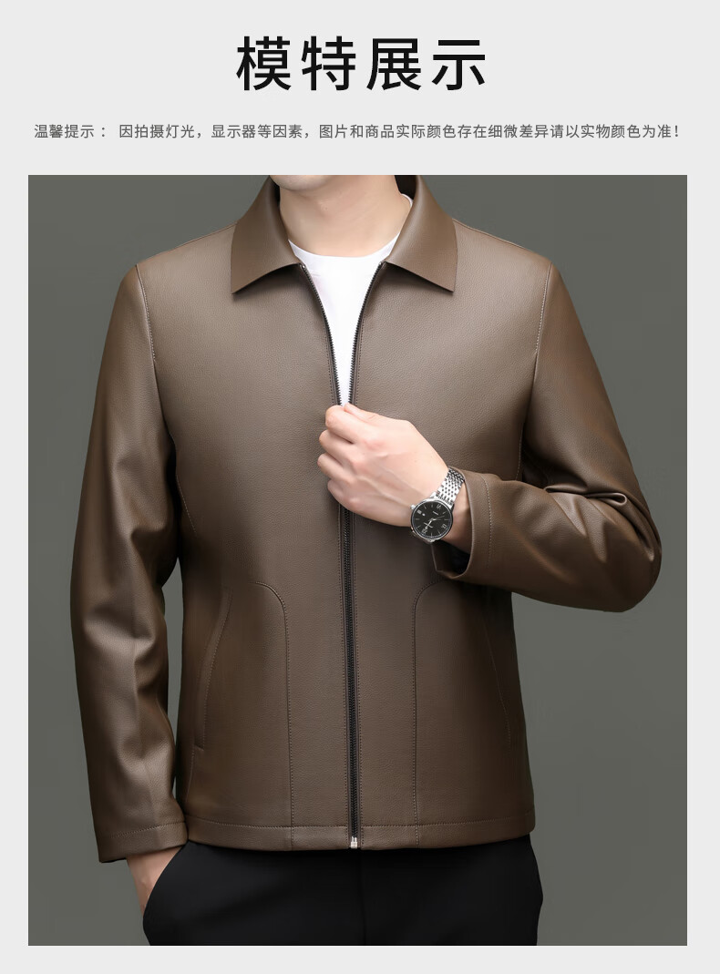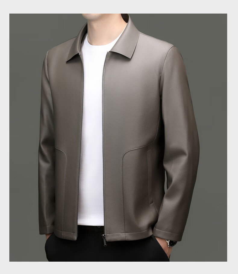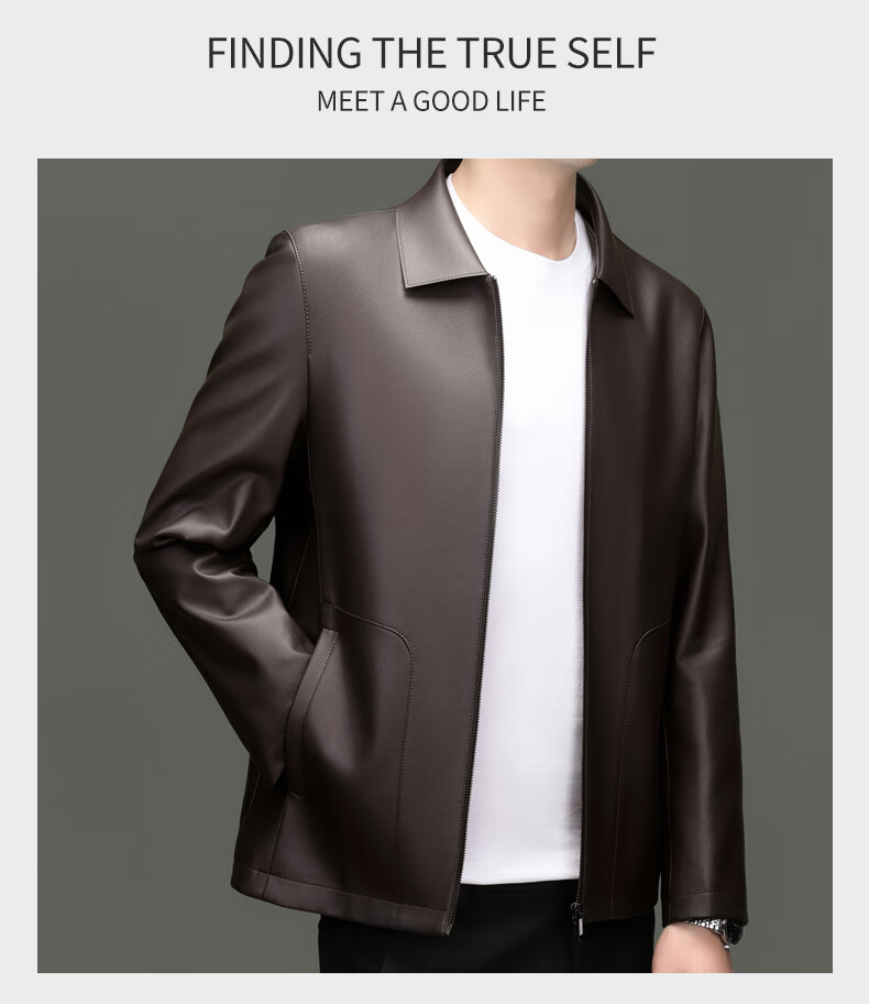 Pierre Cardin high-end leather jacket men's spring and autumn new lapel leather jacket middle-aged dad business casual cycling PU leather jacket coffee color 2XL (185)