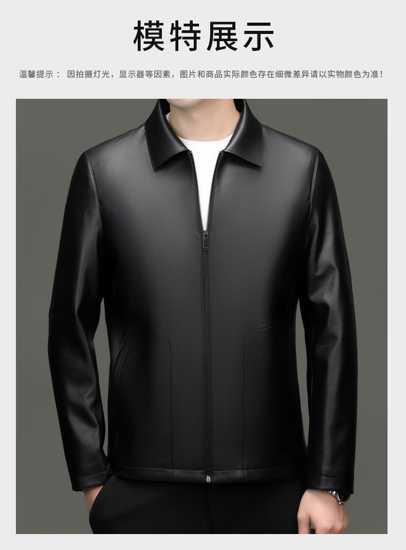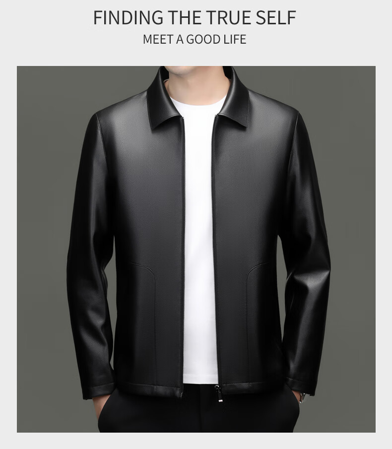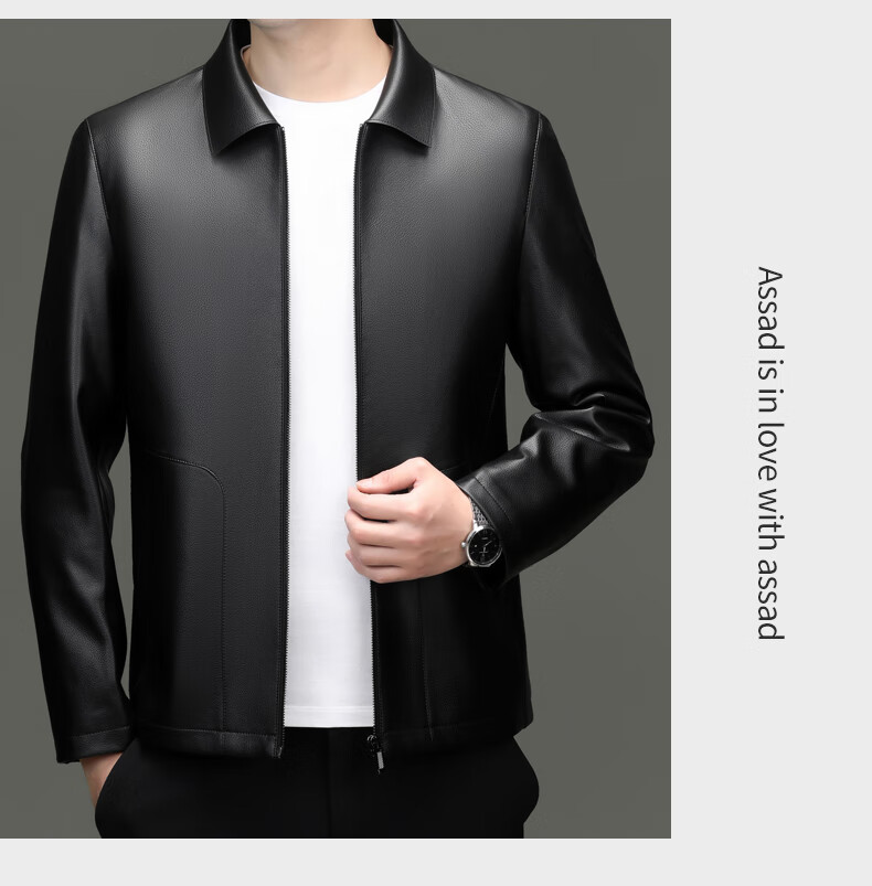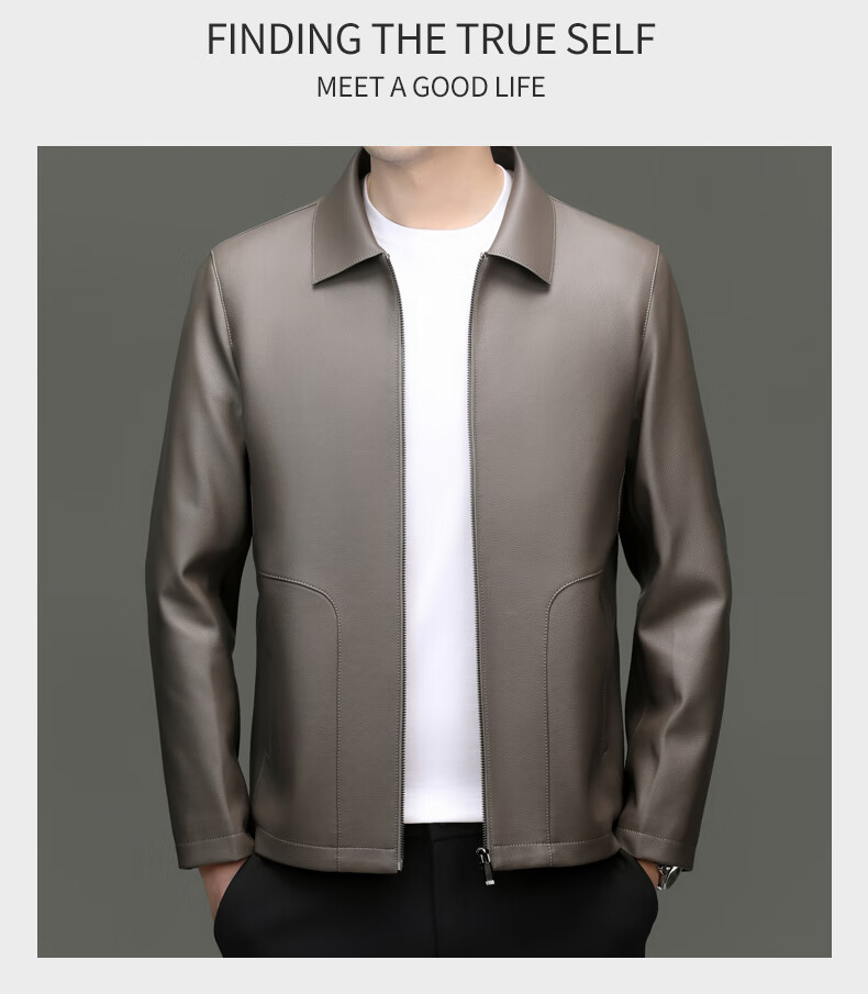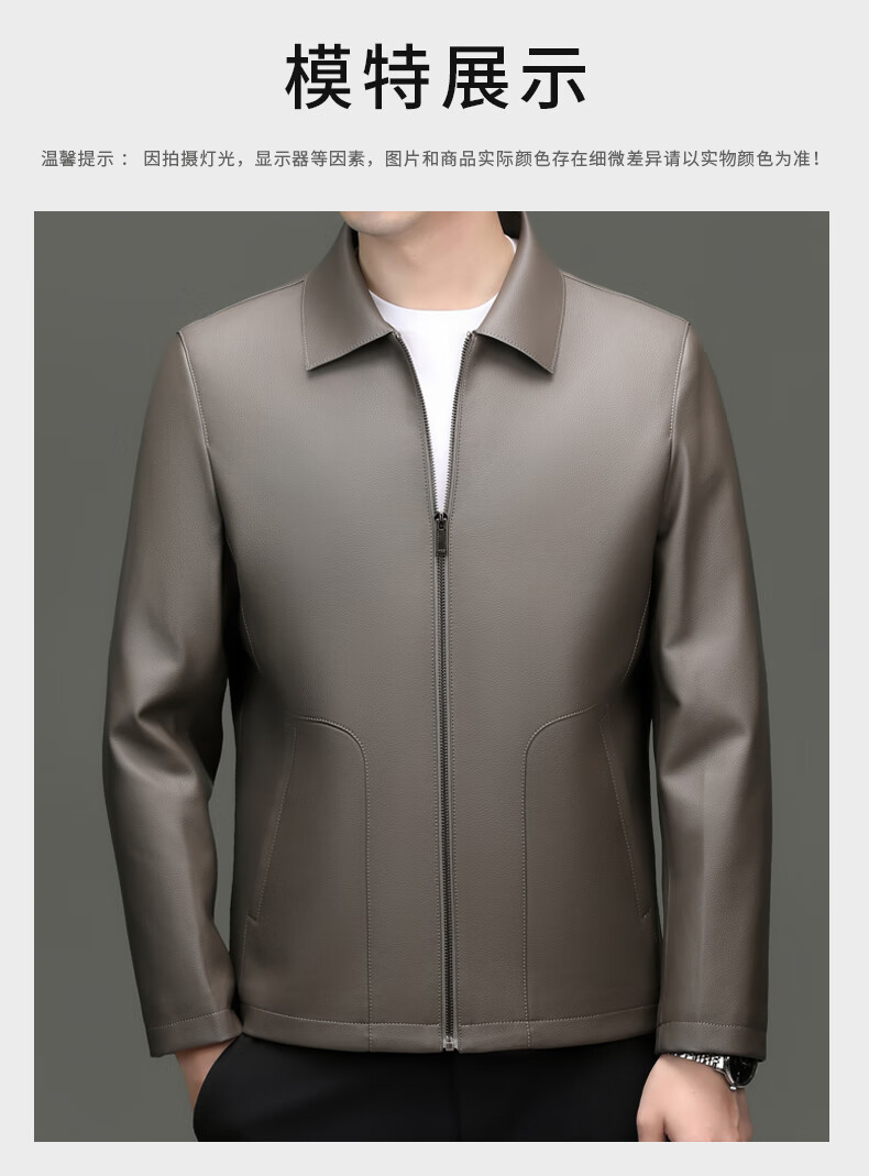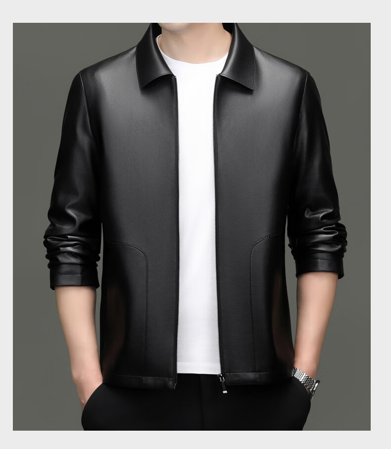 Pierre Cardin high-end leather jacket men's spring and autumn new lapel leather jacket middle-aged dad business casual cycling PU leather jacket coffee color 2XL (185)