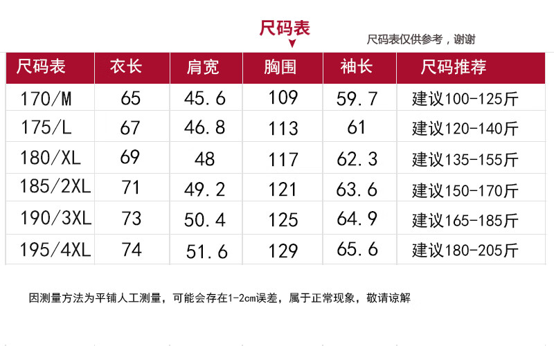 China (cm) 165 / 88-90 170 / 96-98 175 / 108-110 180 / 118-122 185 / 126-130
