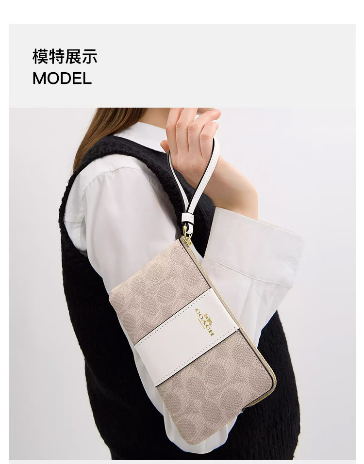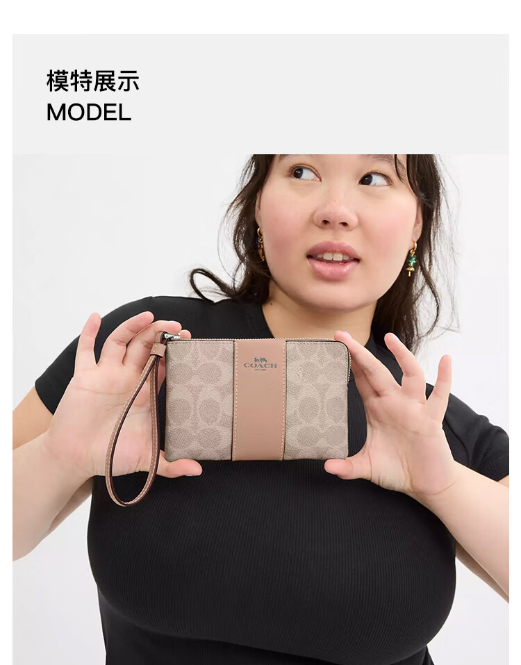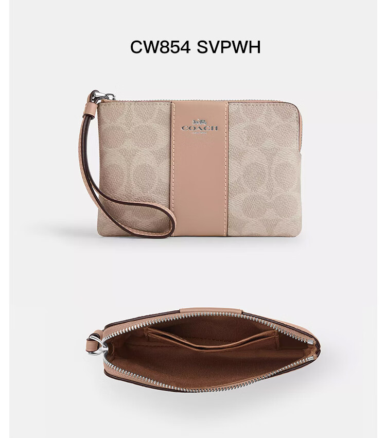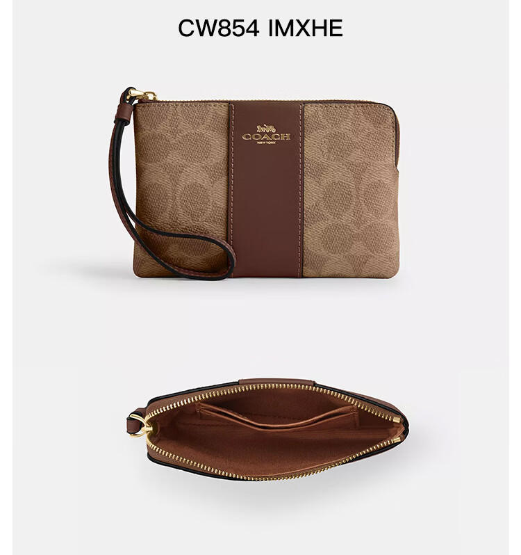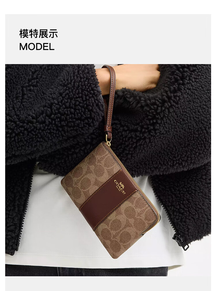 COACH women's bag Corner Zip 16 zipper closure women's clutch bag wrist bag coin purse gift for girlfriend brown