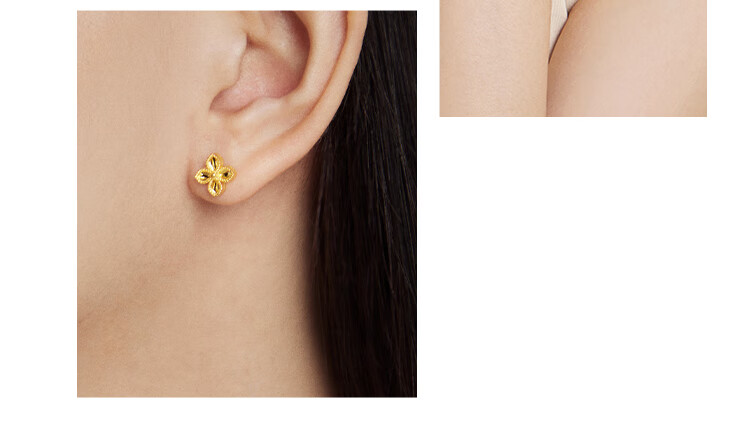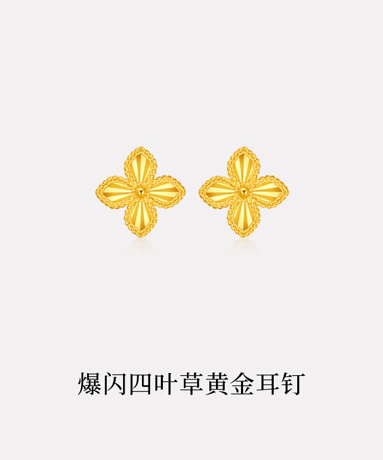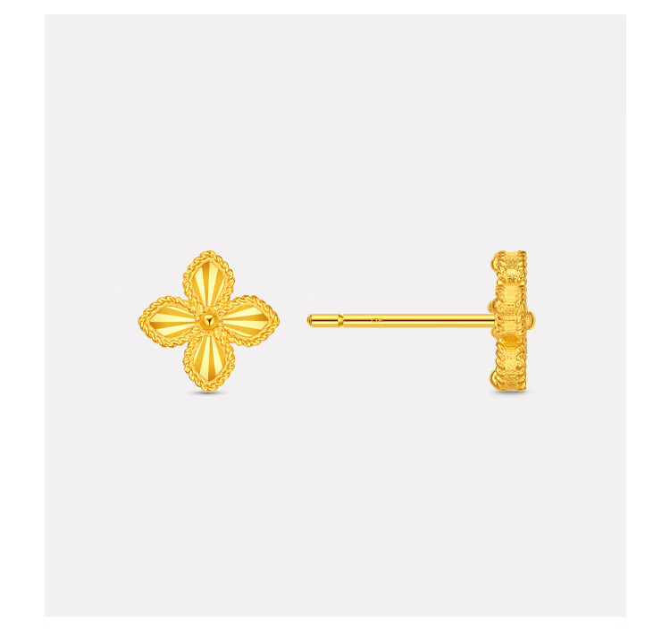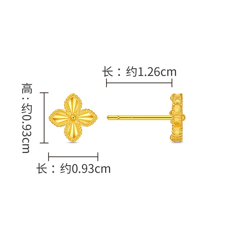 Chow Tai Fook four-leaf clover gold earrings for women pure gold earrings for girlfriend (labor cost 260) EOF1314 pure gold about 2.20g