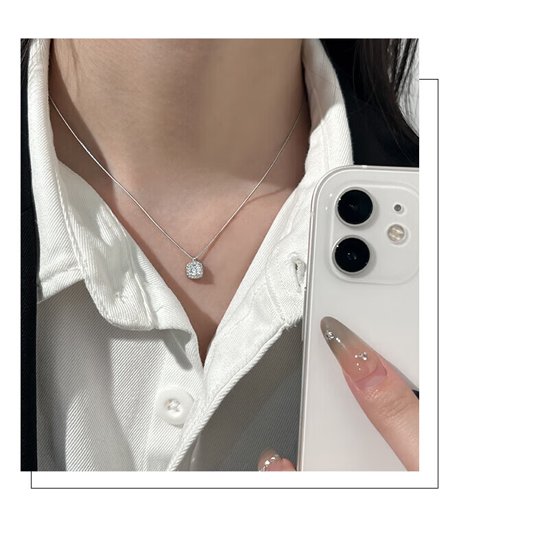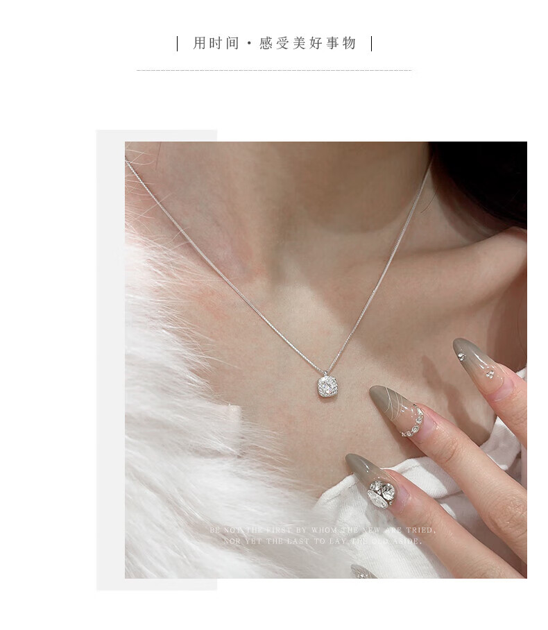 Qiuyu S999 Pure Silver Necklace for Girls High-end Pendant Sugar Cube Clavicle Chain Silver Jewelry Chinese Valentine's Day Gift for Girlfriend 925 Pure Silver Necklace Exquisite Gift Box + Box Chain