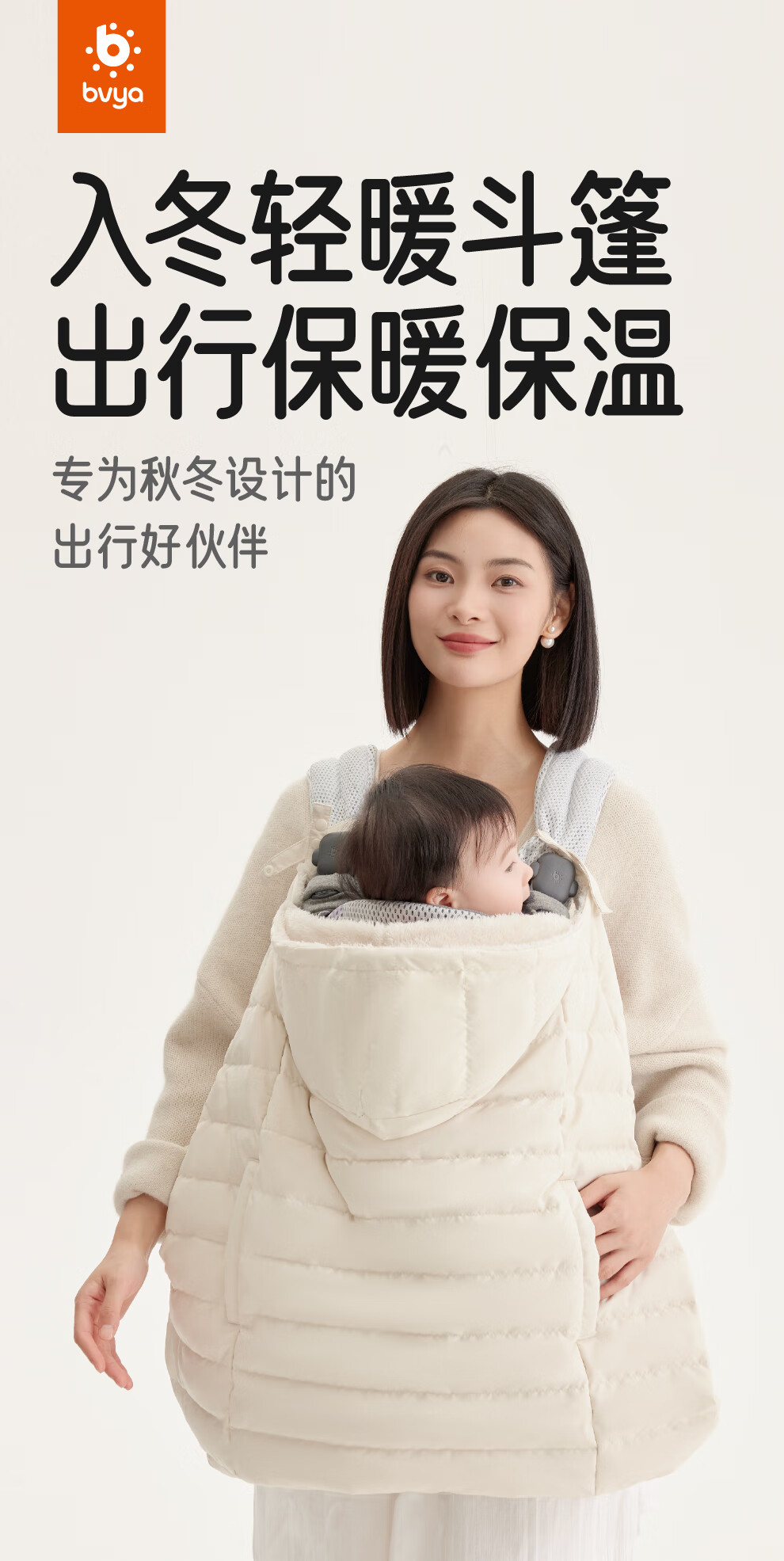 Bvya Bvya Baby Carrier Waist Stool Light Warm Cloak Down Warm Cloak Cover Blanket Baby Weatherproof Universal Cream White