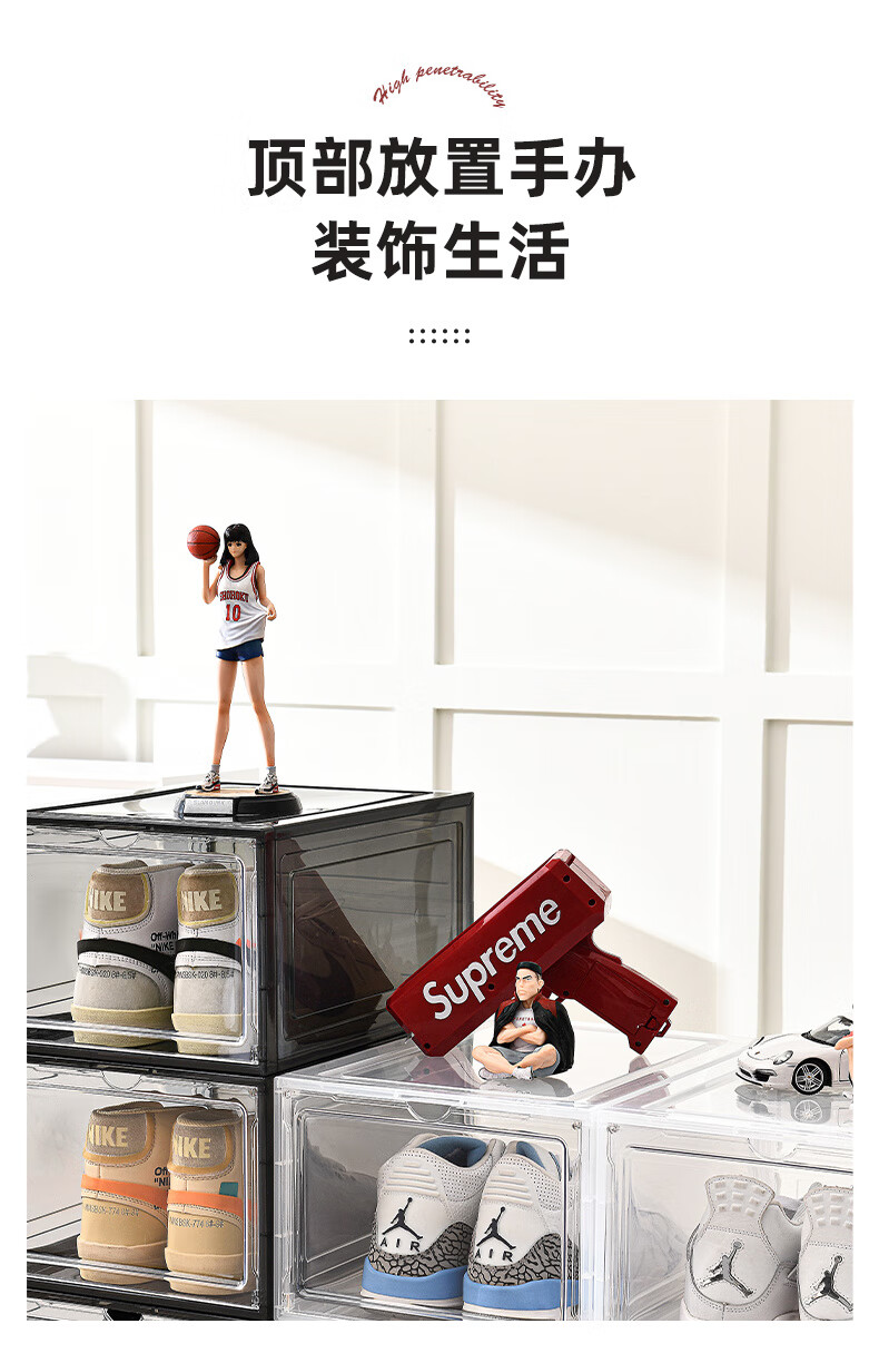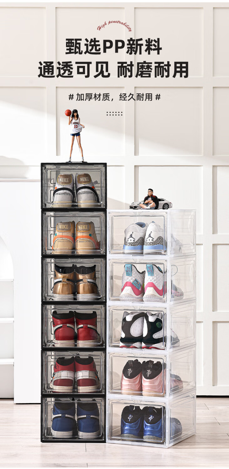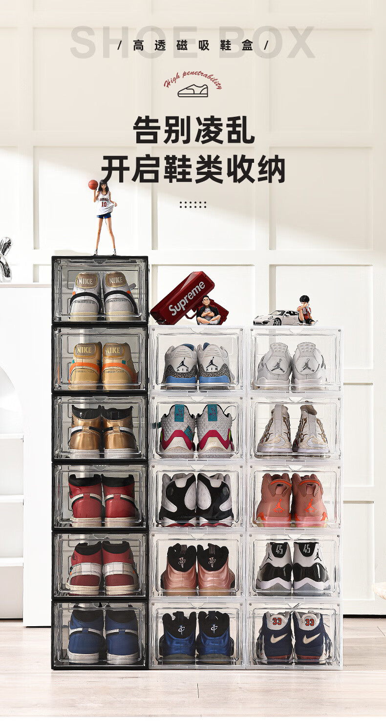 Thickened transparent shoe box AJ sneaker storage box magnetic display cabinet shoe storage artifact can be stacked on the shoe wall 24 pieces shoe factory giant fully transparent black #magnetic shoe box side door/can be stacked