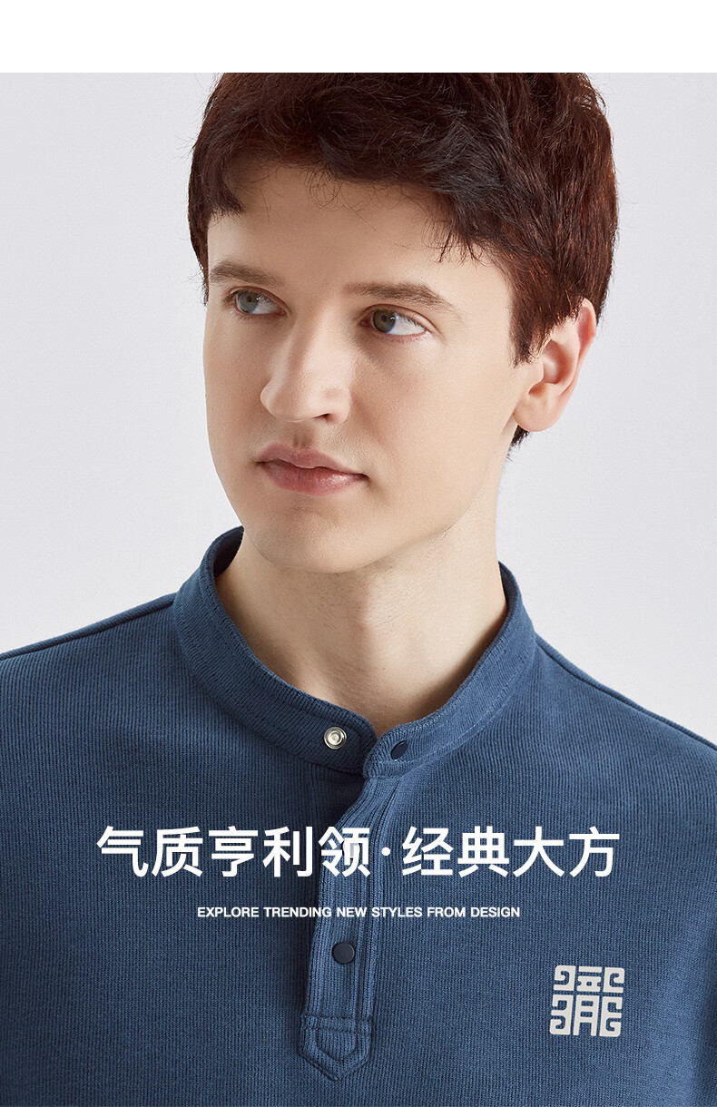 Thousand Paper Cranes Printed Sweater Men's Spring and Autumn New Men's Henry Collar Commuting Business Casual Bottoming Shirt Top Autumn Men's Style 63C Black 2XL