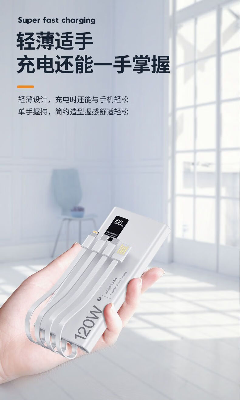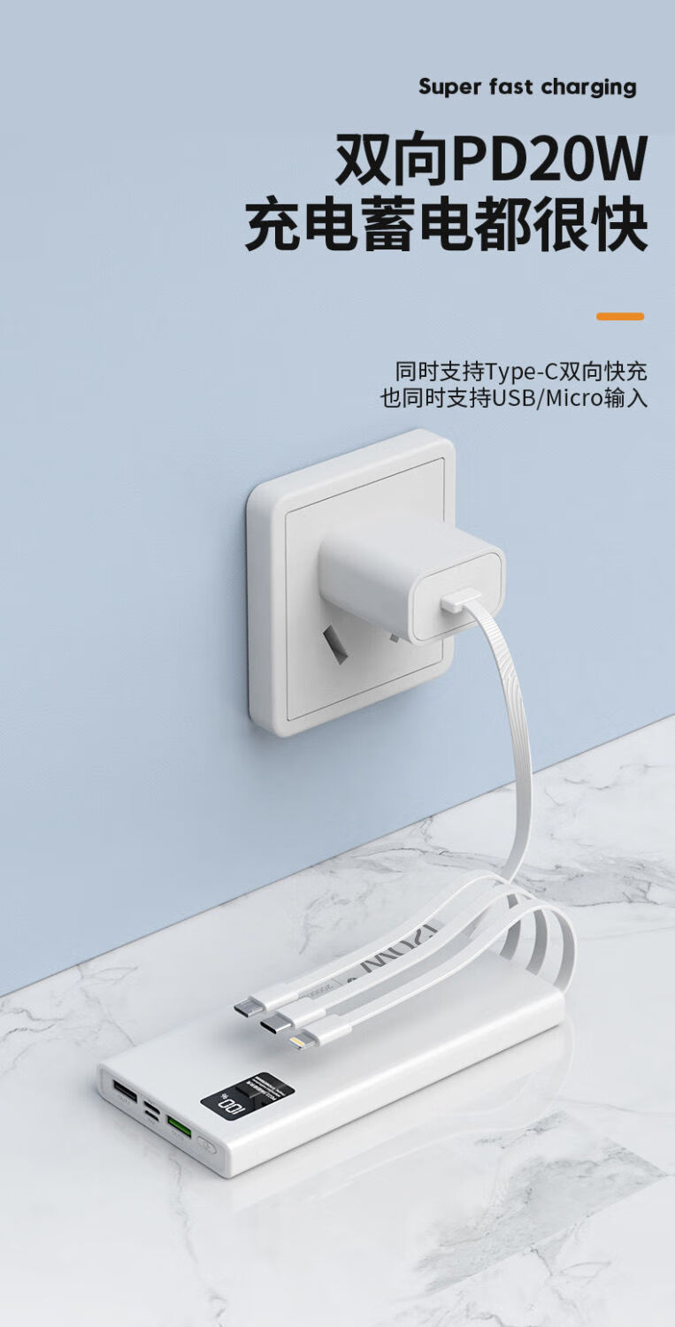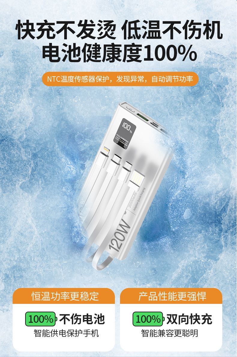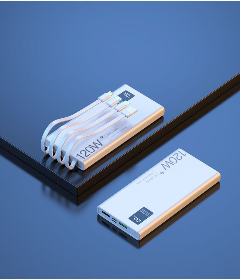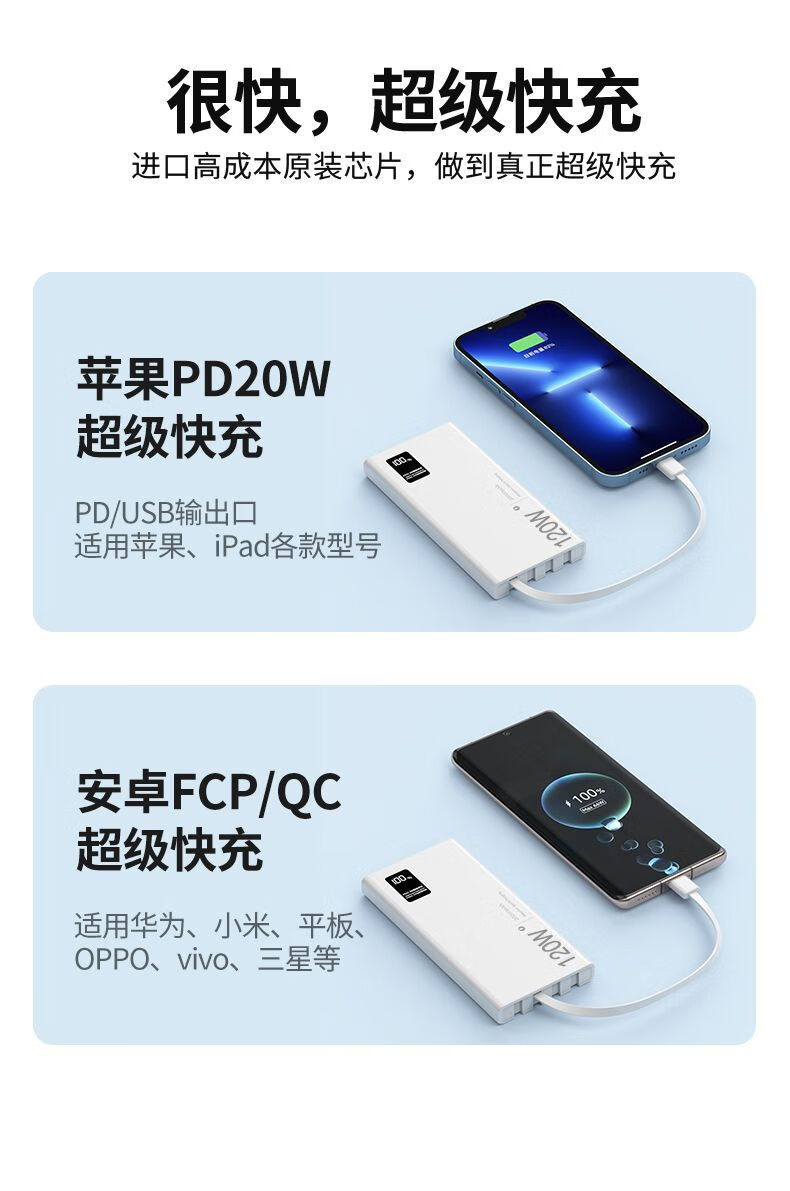 Shanton comes with a line 20000 mAh power bank 120W super fast charging 50000 mAh large capacity multi-port output student takeaway universal Apple Huawei outdoor mobile power source Dawn White Smart Charging丨brings a line speed increase 3333 20000 mAh