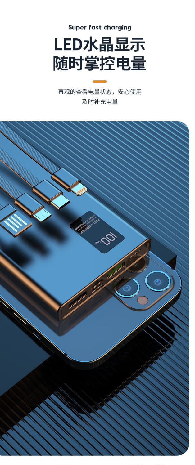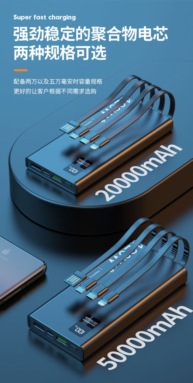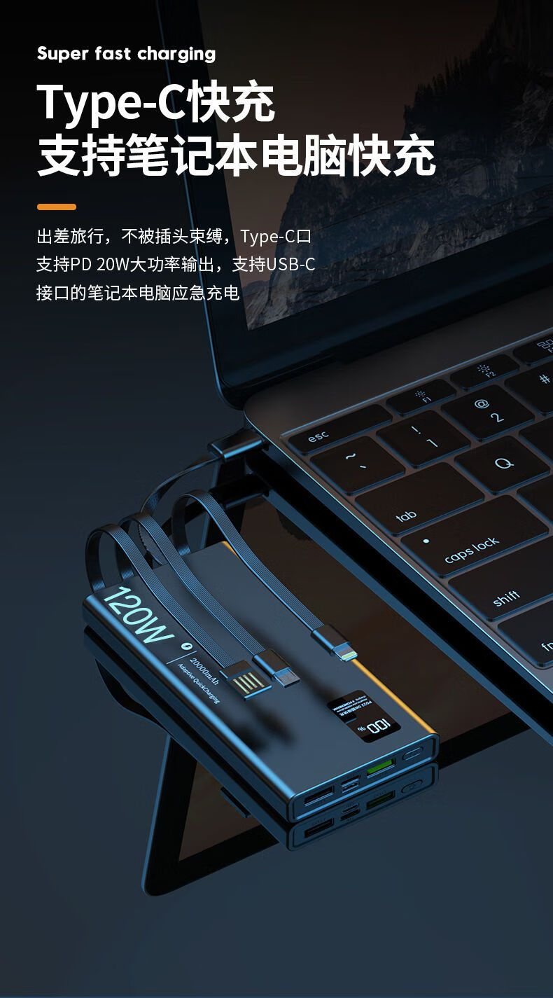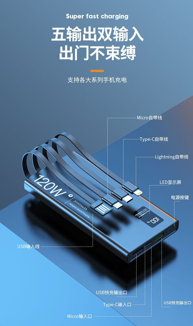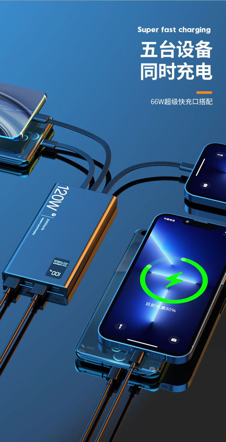 Shanton comes with a line 20000 mAh power bank 120W super fast charging 50000 mAh large capacity multi-port output student takeaway universal Apple Huawei outdoor mobile power source Dawn White Smart Charging丨brings a line speed increase 3333 20000 mAh