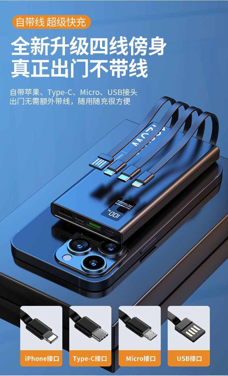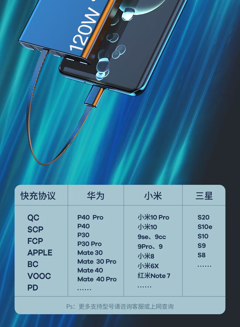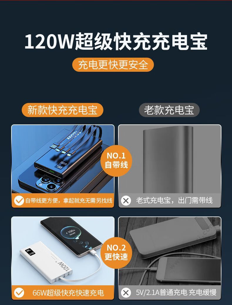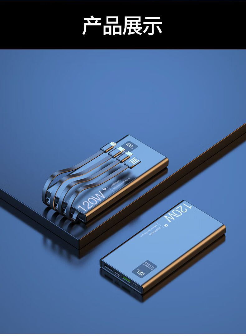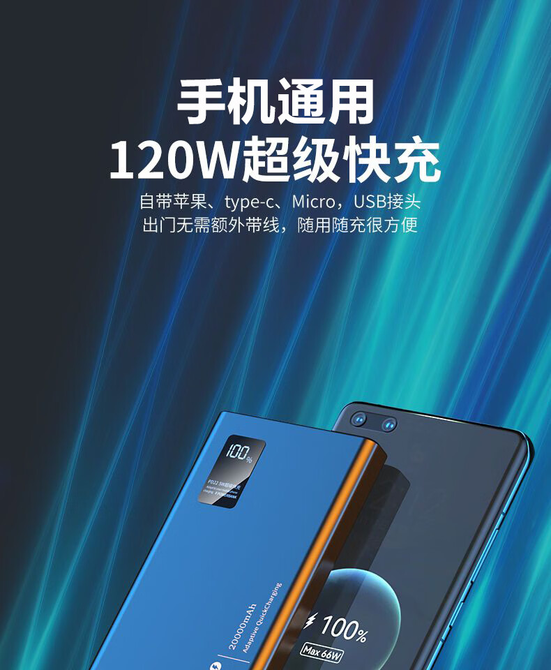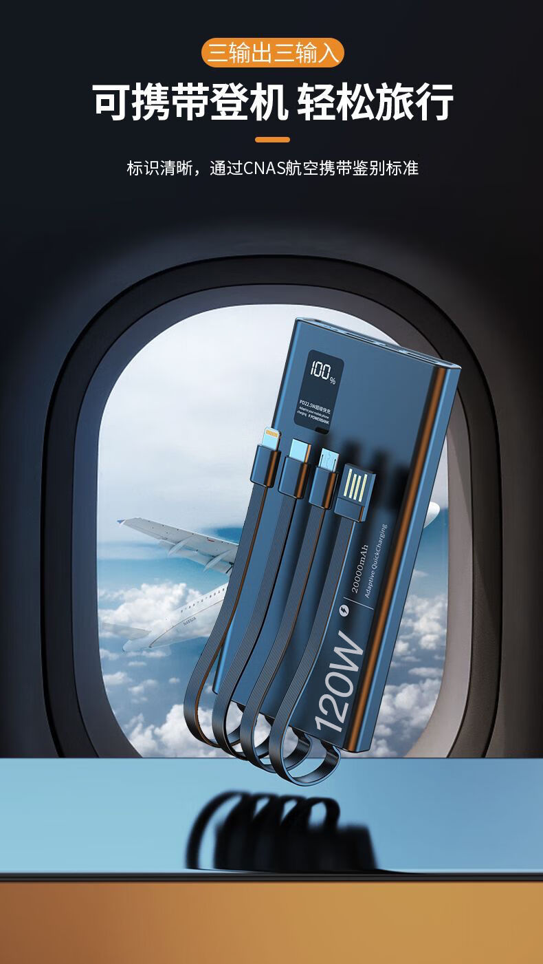 Shanton comes with a line 20000 mAh power bank 120W super fast charging 50000 mAh large capacity multi-port output student takeaway universal Apple Huawei outdoor mobile power source Dawn White Smart Charging丨brings a line speed increase 3333 20000 mAh