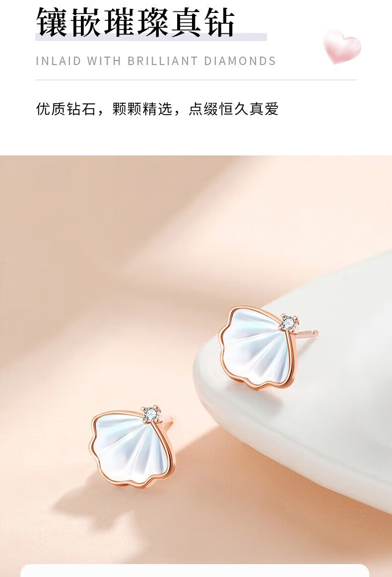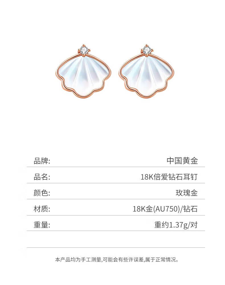 CHINA GOLD Yibeizi 18k gold earrings women's diamond rose gold earrings birthday gift for girlfriend and wife's birthday 18K gold double love diamond earrings