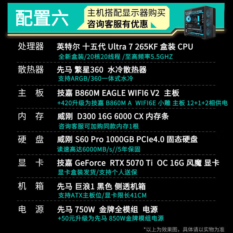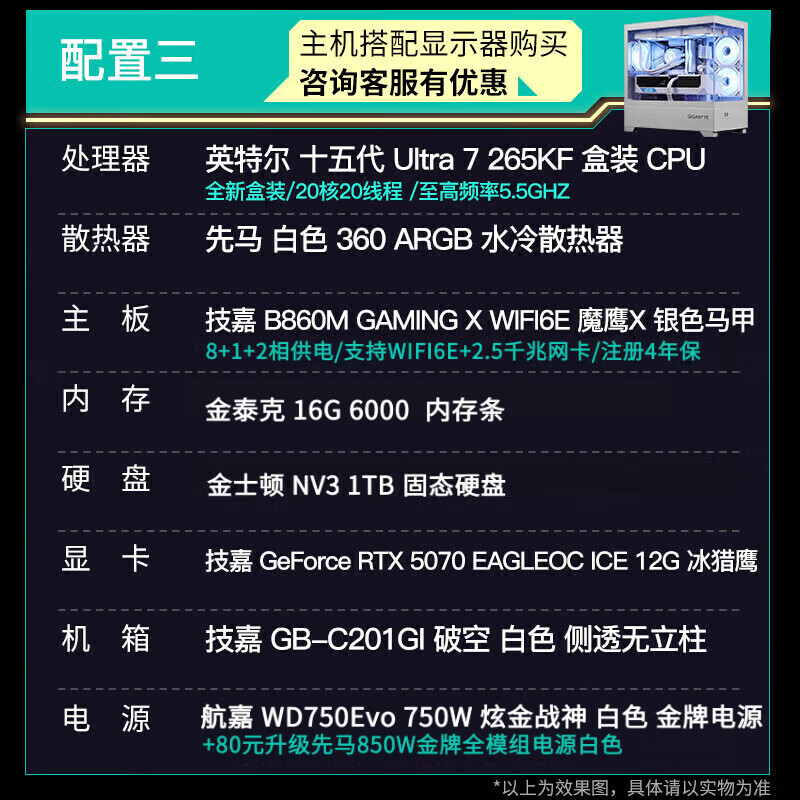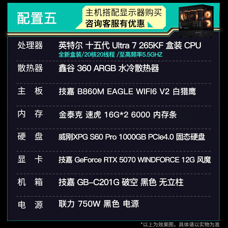 GIGABYTE RTX5070 host 265K core display RTX5060 Ti/225 desktop e-sports game AI deep learning designer live broadcast DIY assembly machine complete machine configuration 1 265K core display host