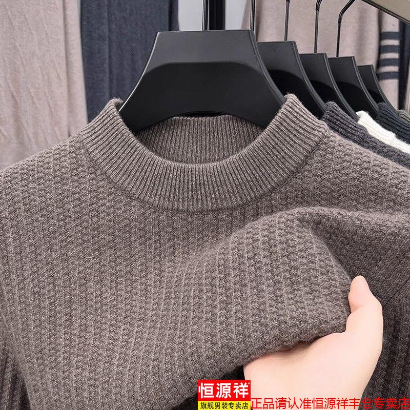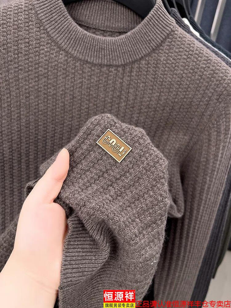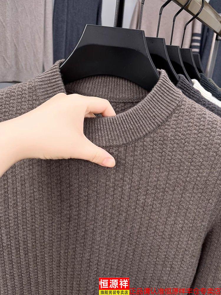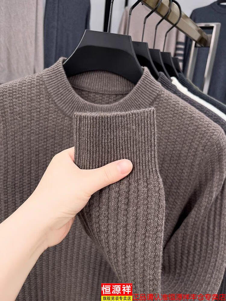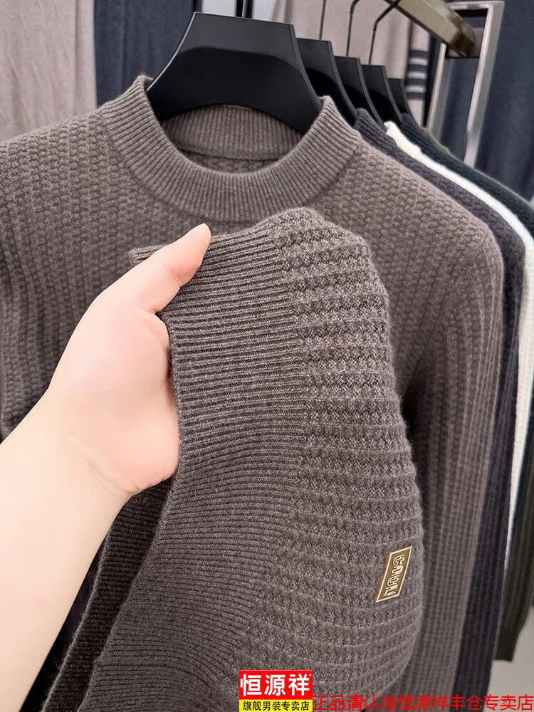 Hengyuanxiang light luxury high-end sheep wool men's wool sweater winter thickened warm sweater round neck sweater solid color base camel 3XL 185 recommended 170-190Jin Jin equals 0.5 kg