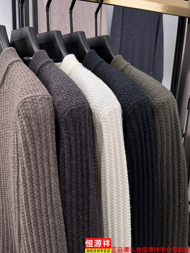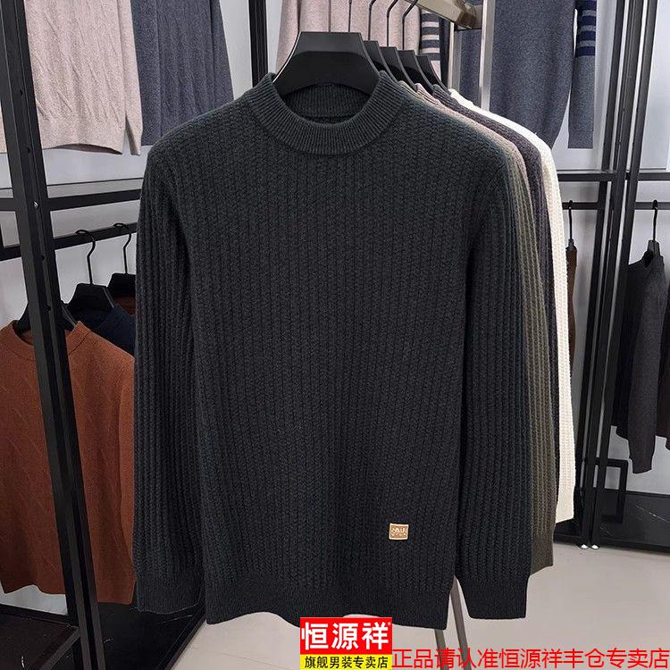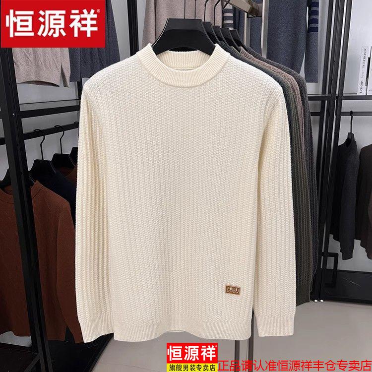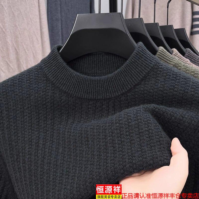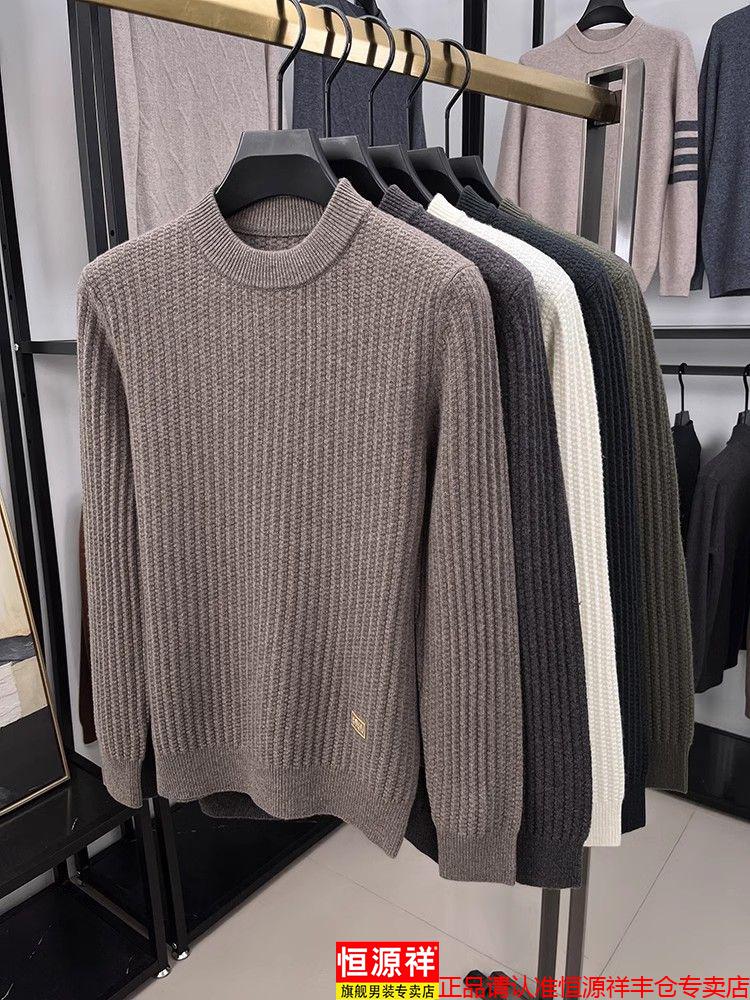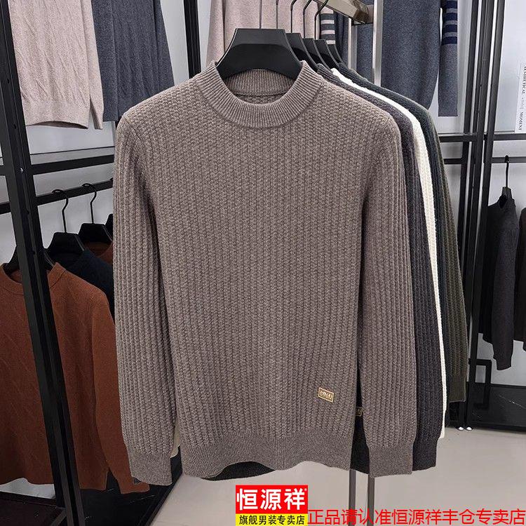 Hengyuanxiang light luxury high-end sheep wool men's wool sweater winter thickened warm sweater round neck sweater solid color base camel 3XL 185 recommended 170-190Jin Jin equals 0.5 kg
