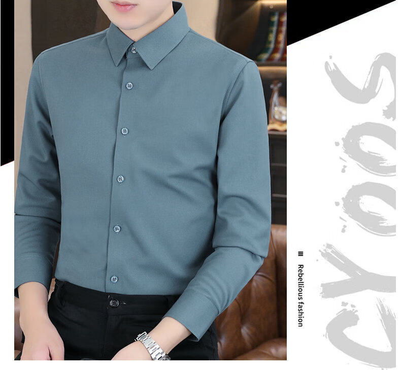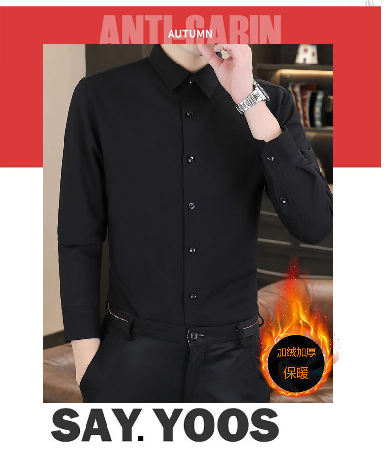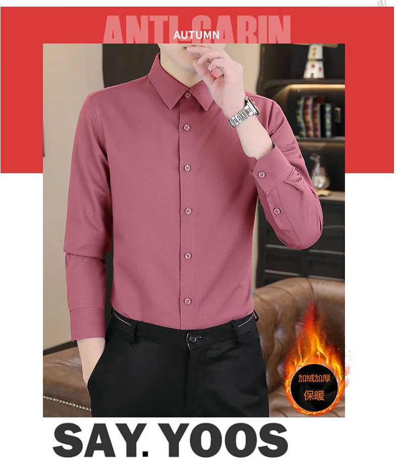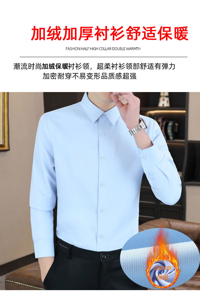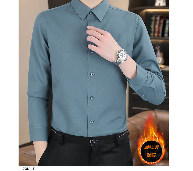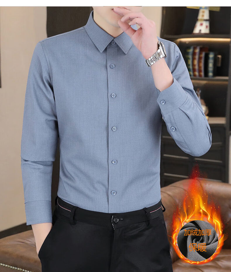 Hengyuanxiang high-end brand warm shirt men's autumn and winter velvet thickened shirt men's long-sleeved business casual men's top gray XL