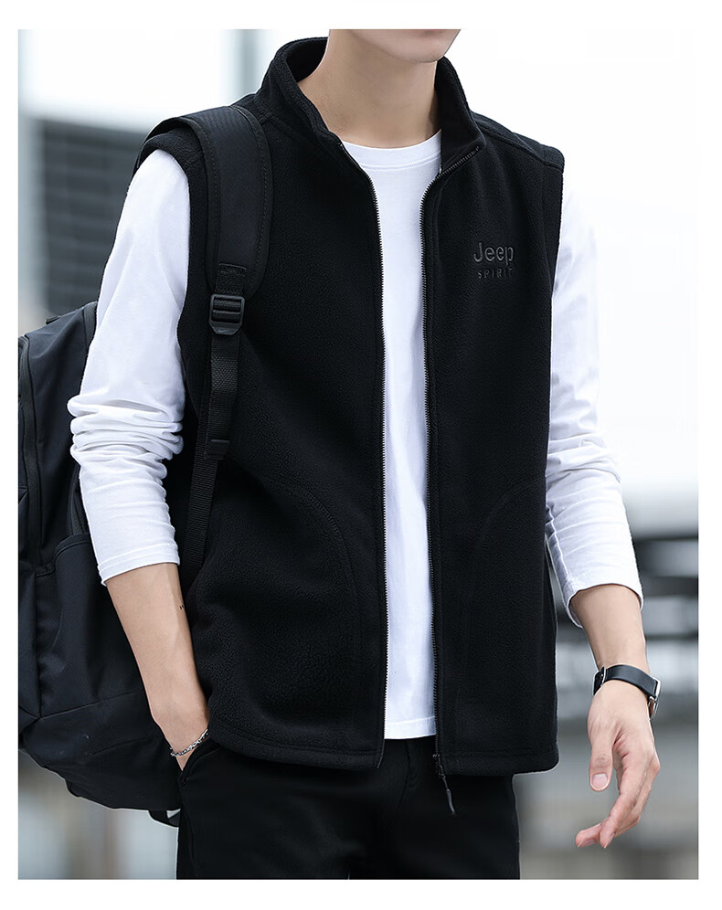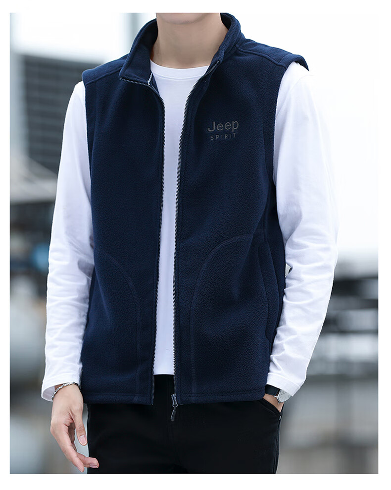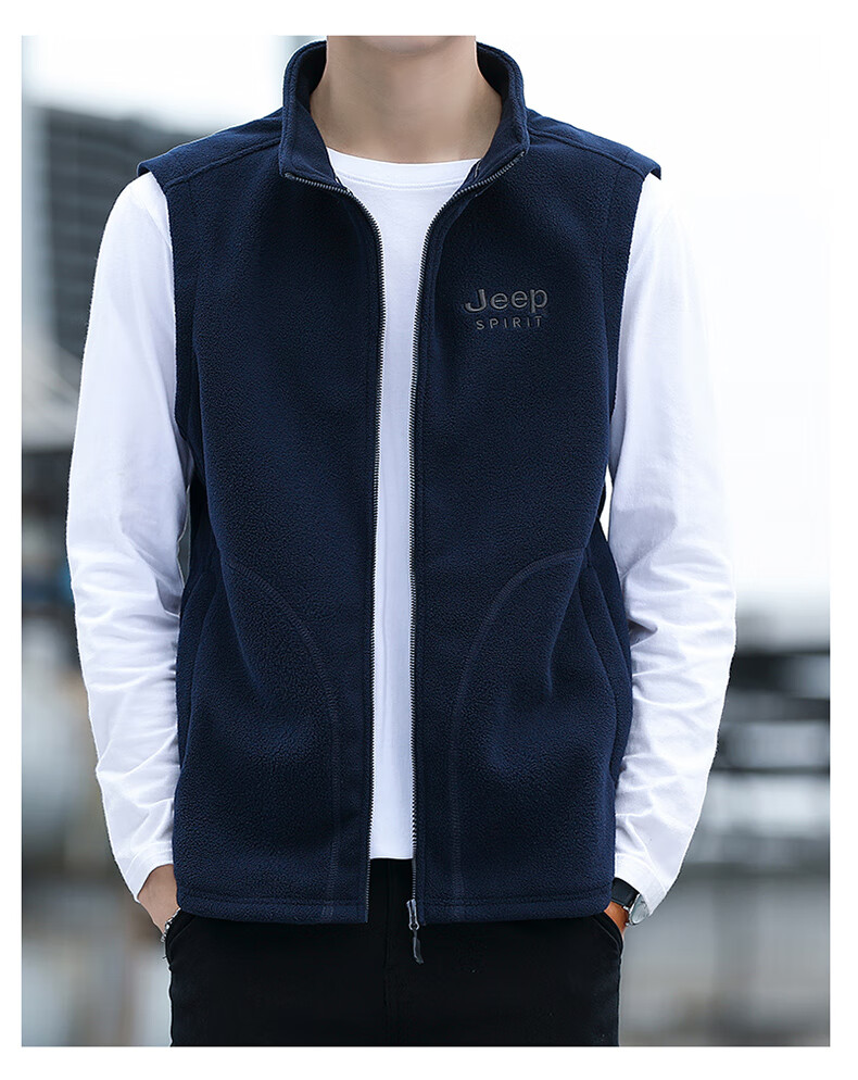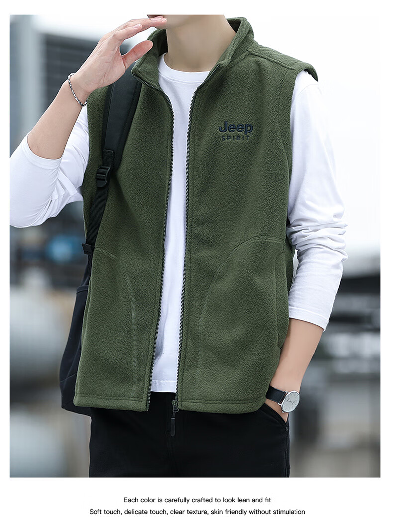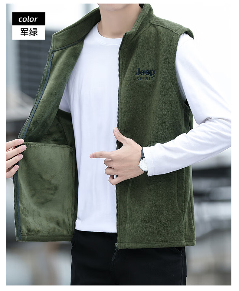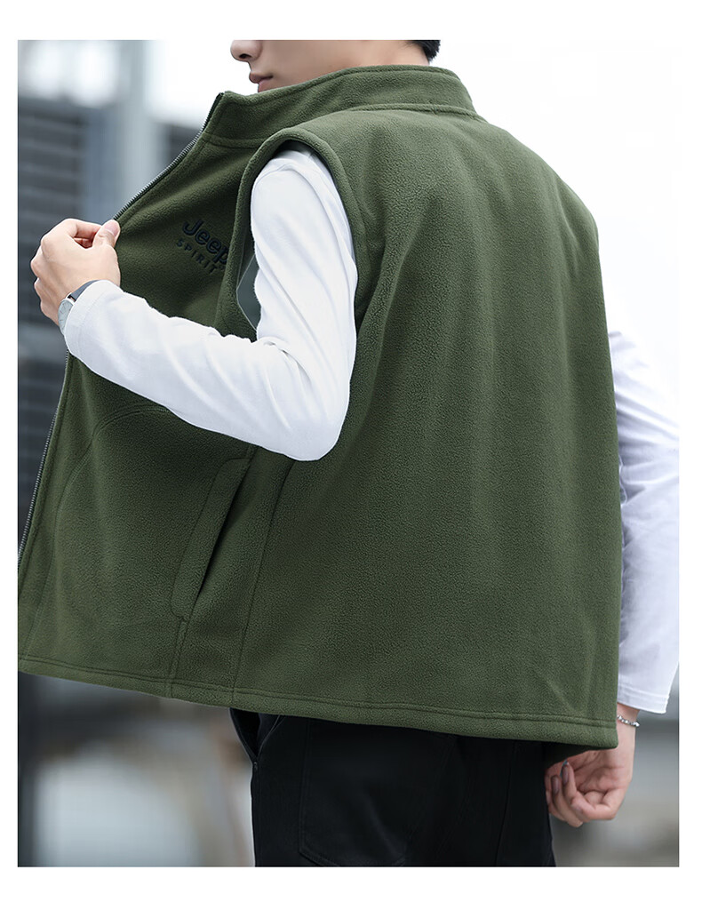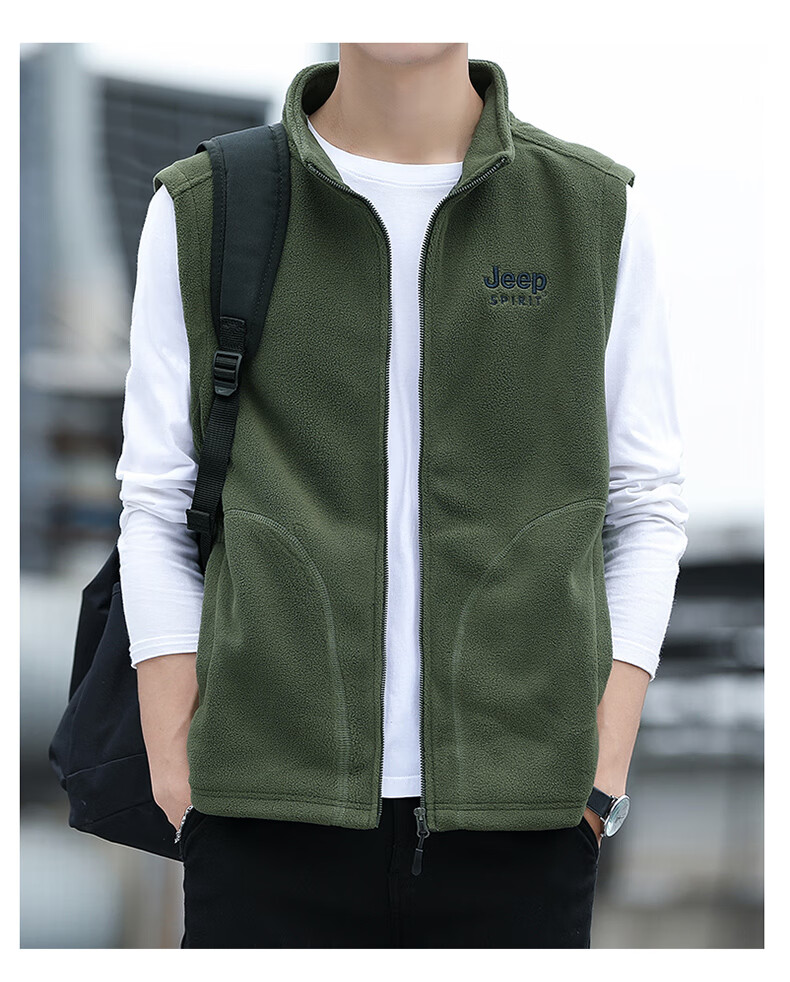 JEEP SPIRIT吉普精神抓绒背心马甲男秋冬加绒加厚保暖马夹休闲立领大码外套男 军绿 3XL