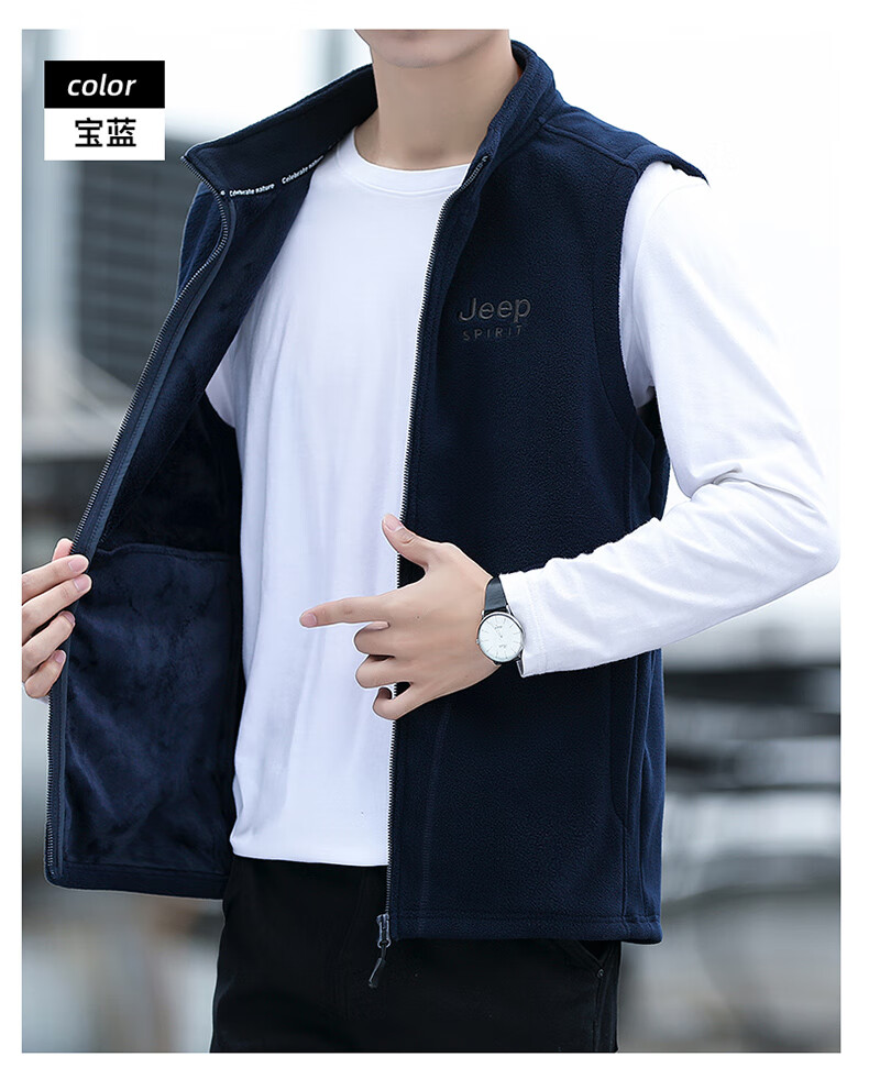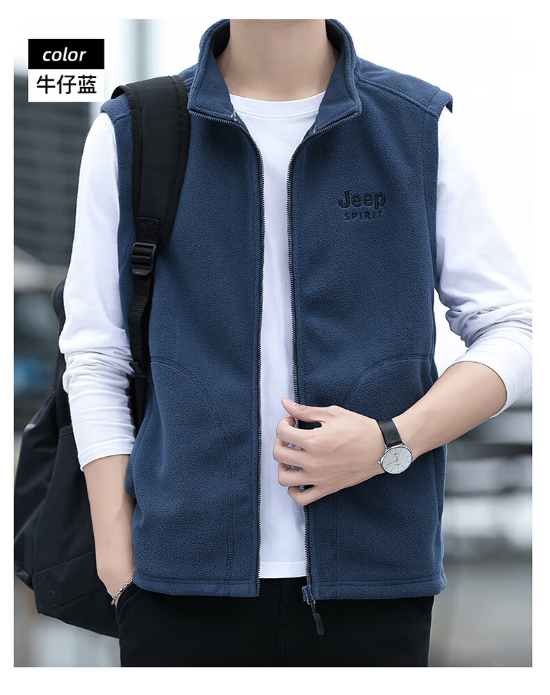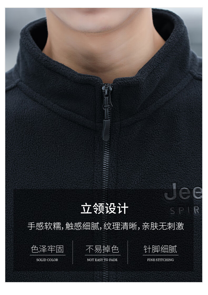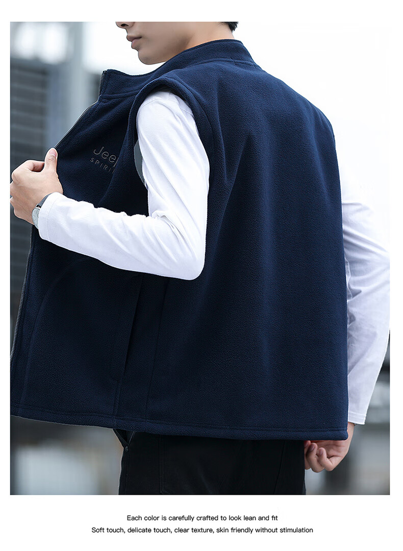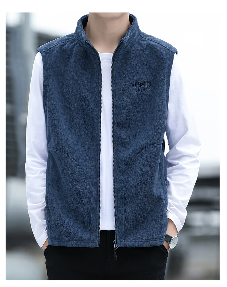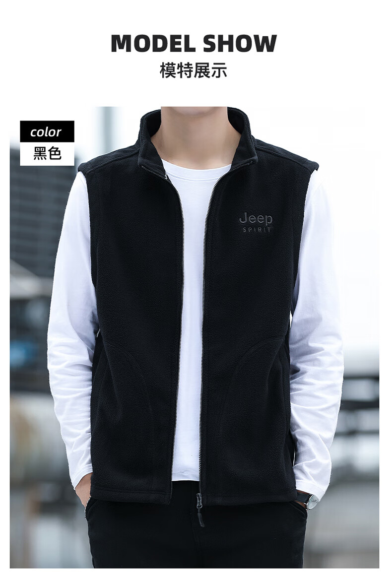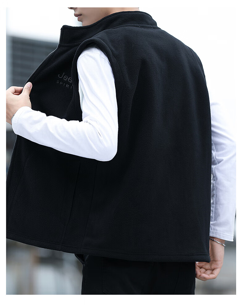 JEEP SPIRIT吉普精神抓绒背心马甲男秋冬加绒加厚保暖马夹休闲立领大码外套男 军绿 3XL