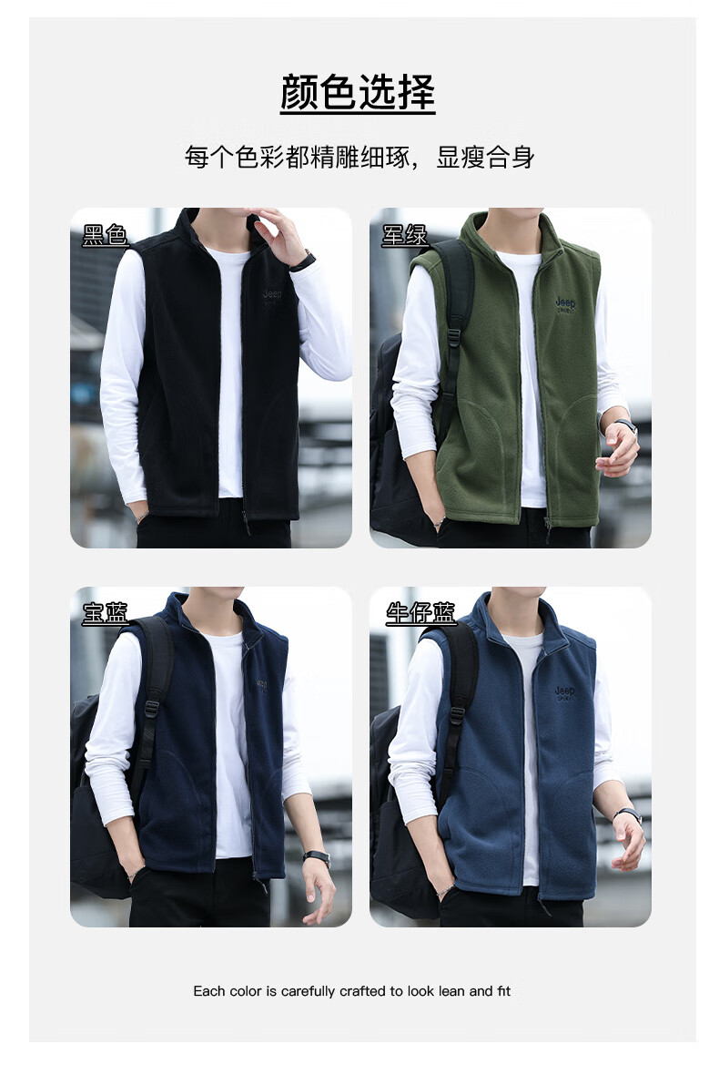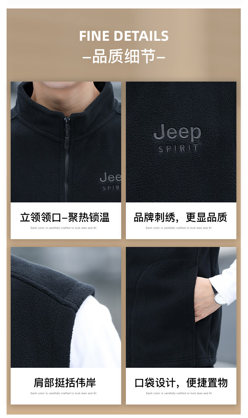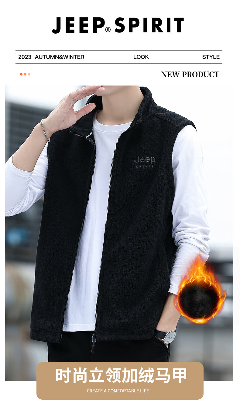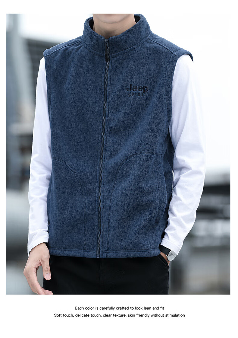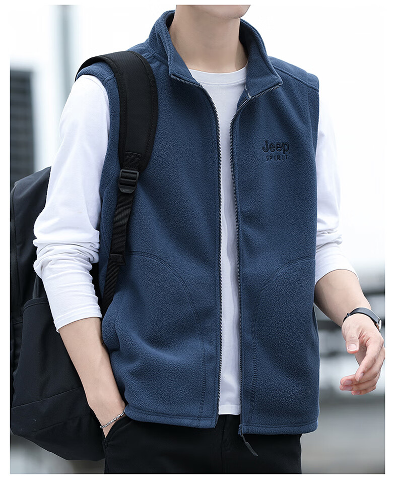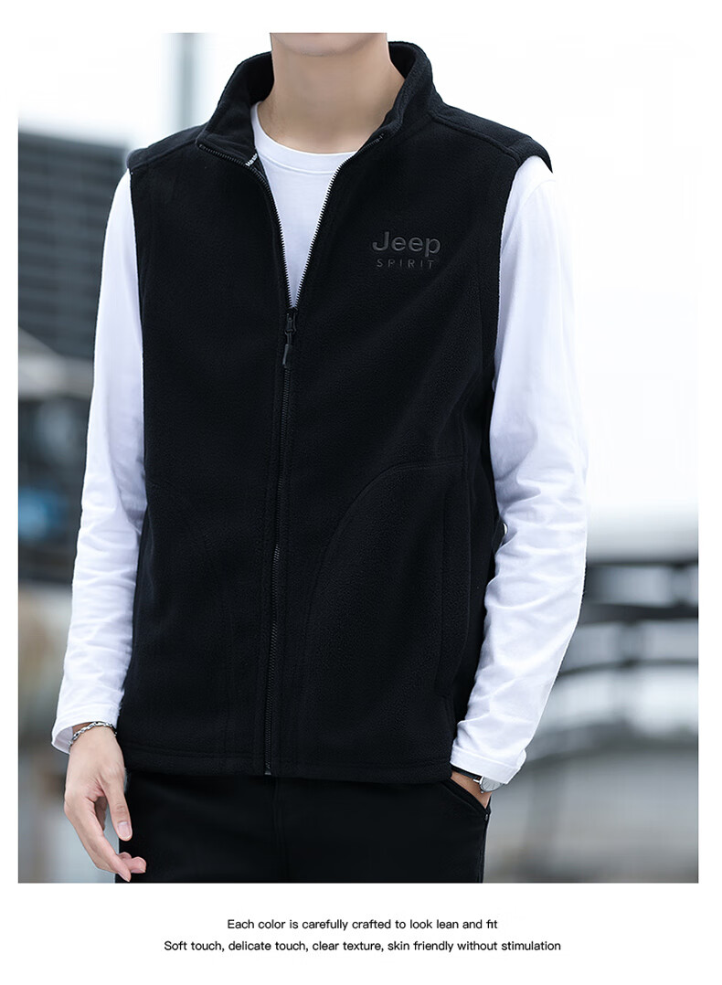 JEEP SPIRIT吉普精神抓绒背心马甲男秋冬加绒加厚保暖马夹休闲立领大码外套男 军绿 3XL