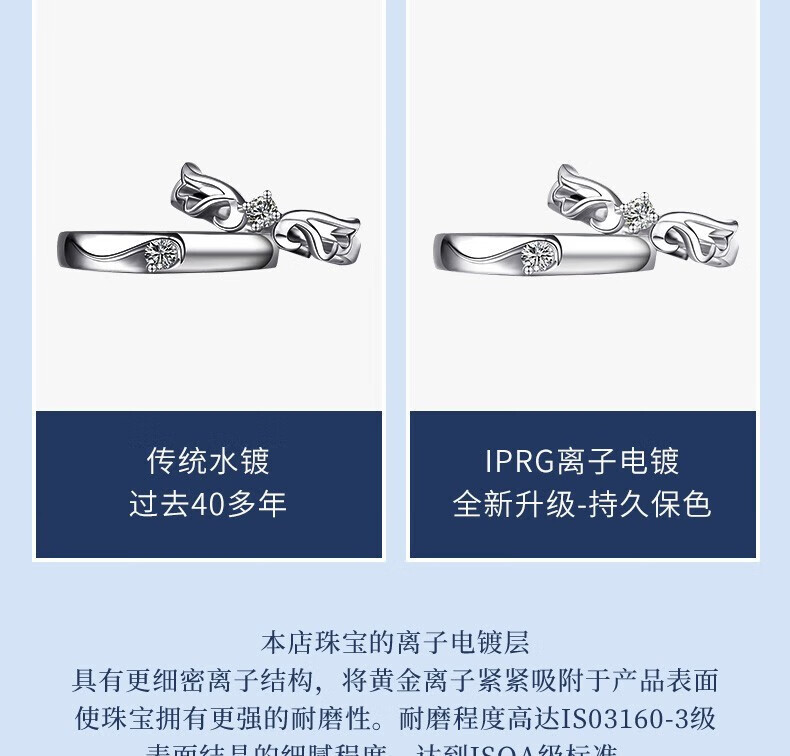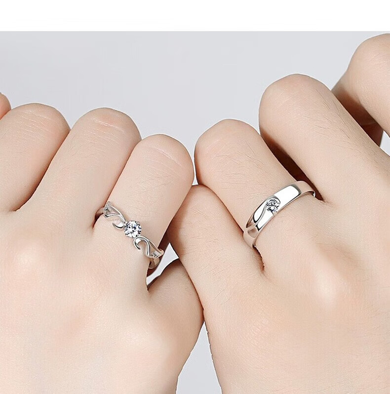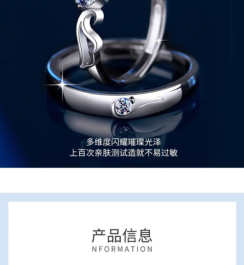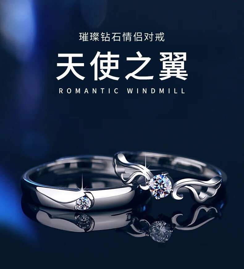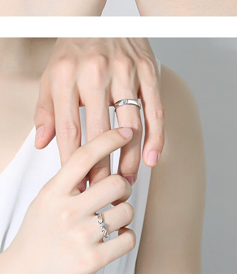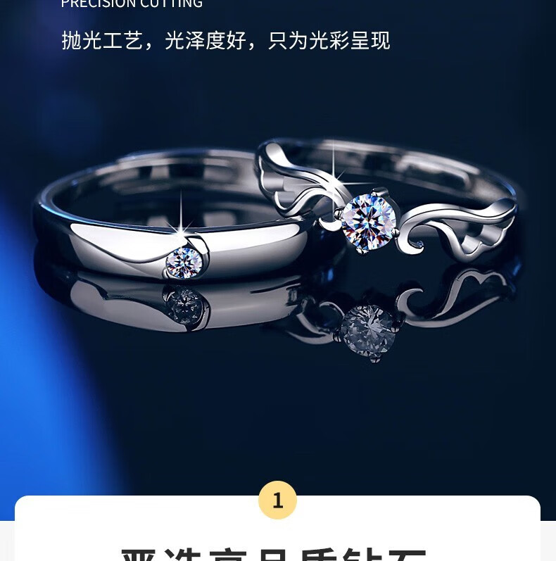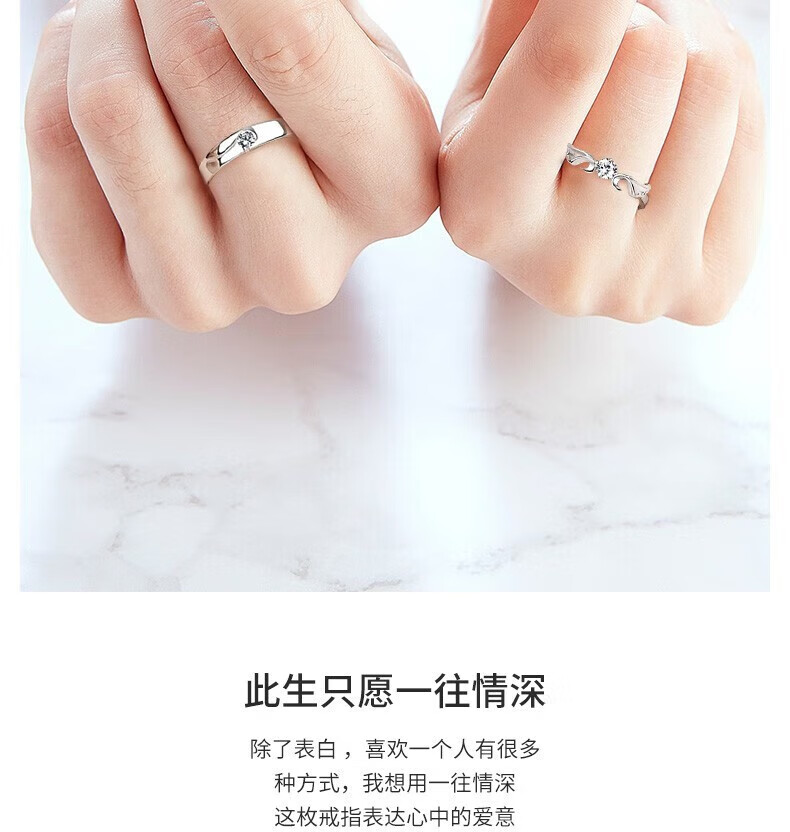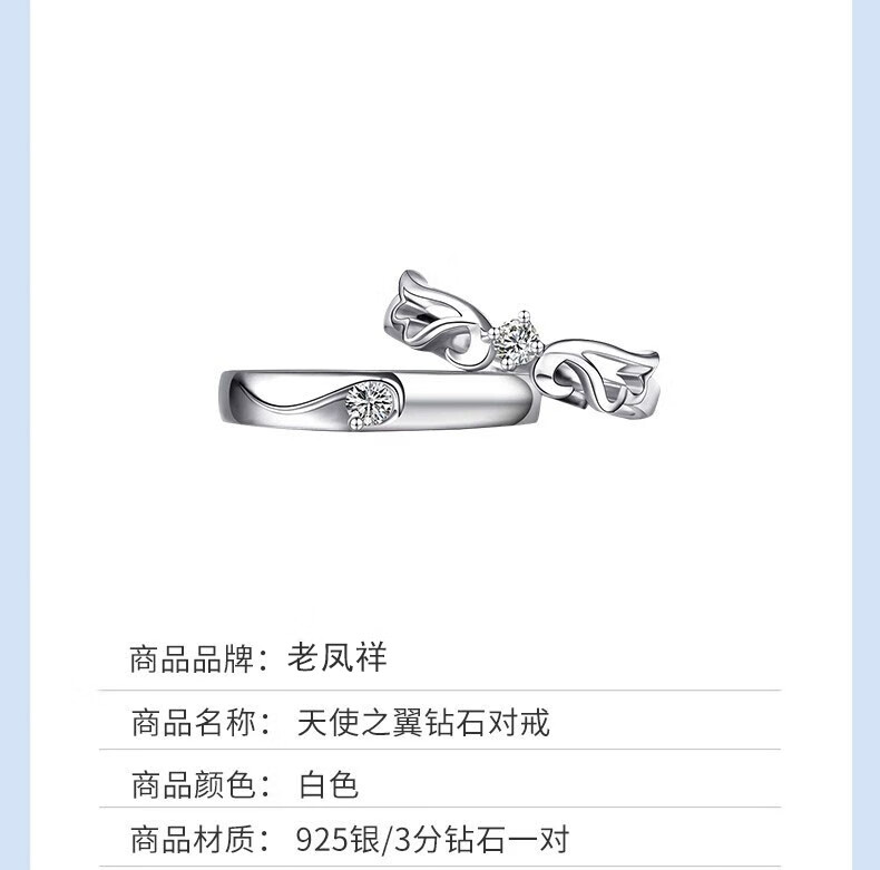 Lao Fengxiang's sterling silver couple's ring for marriage proposal and confession, diamond ring, wedding anniversary gift for girlfriend and wife's birthday, diamond ring for couple's love affair