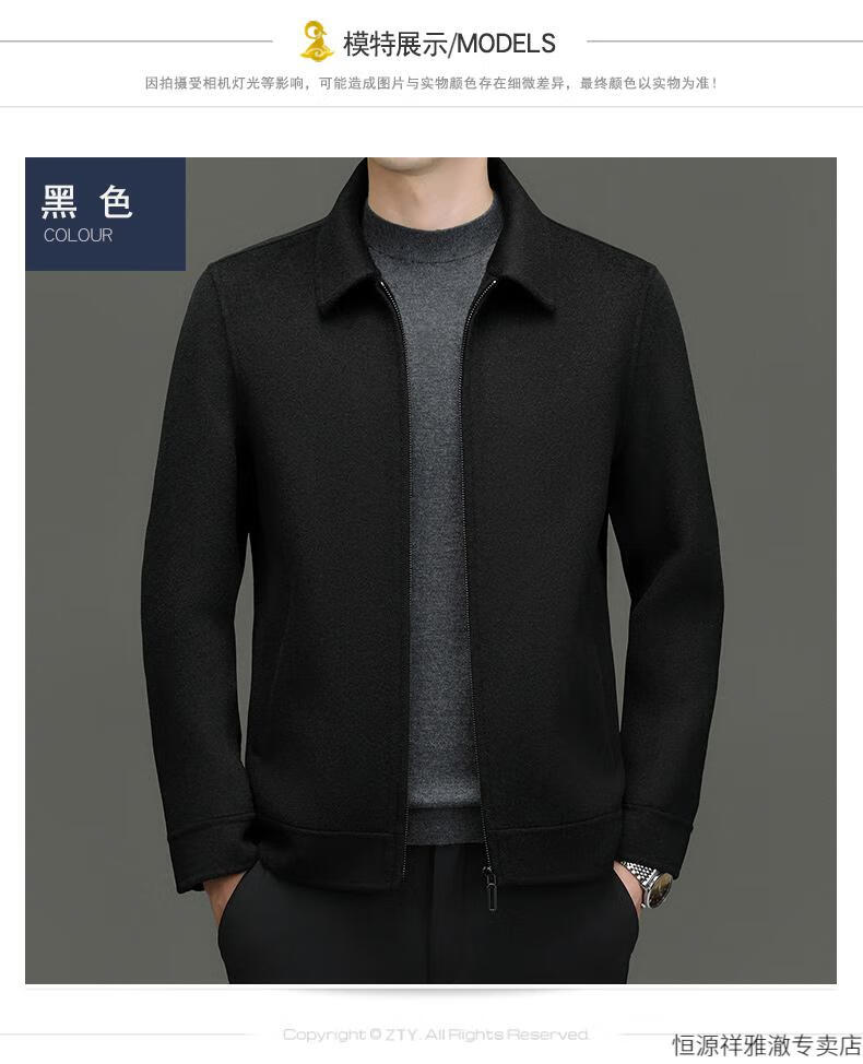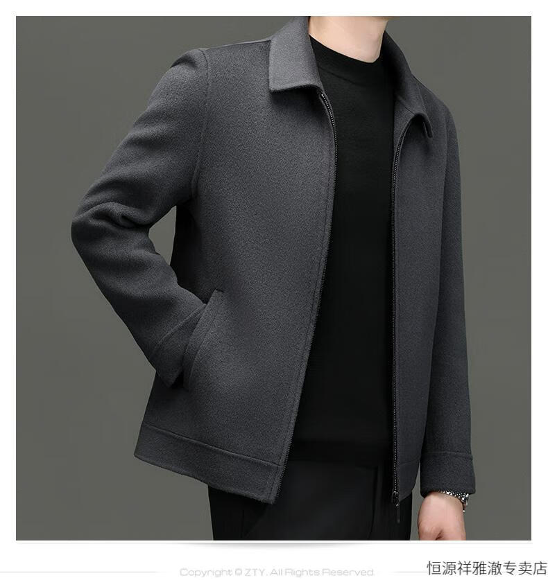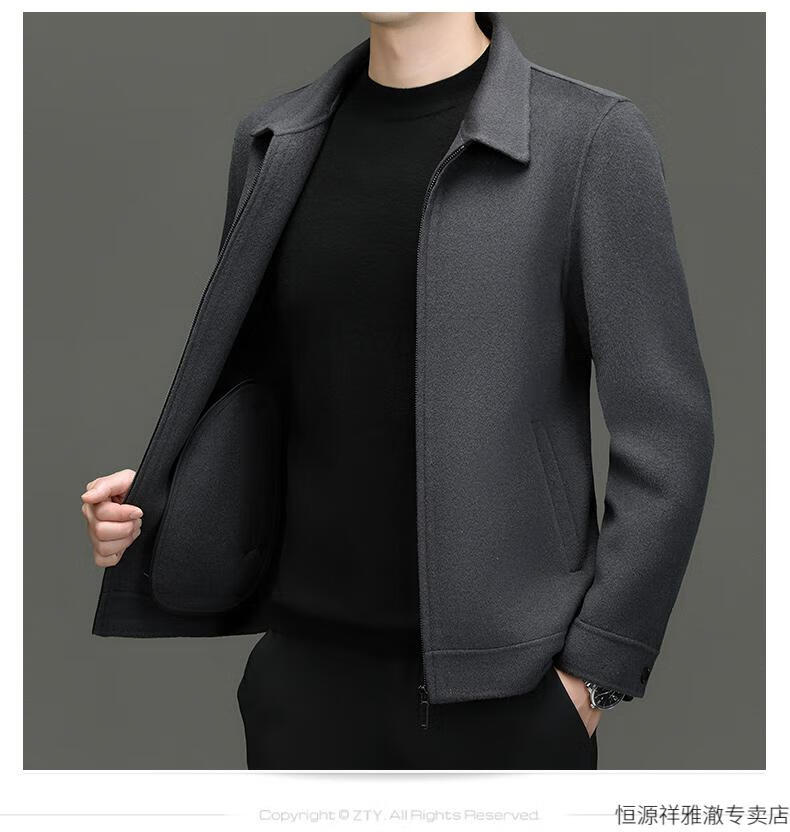 Hengyuanxiang Double-sided Wool Short Coat Men's Thick Woolen Jacket 2024 Autumn and Winter Light Business Lapel Woolen Jacket Brown Camel Grayish 175/L