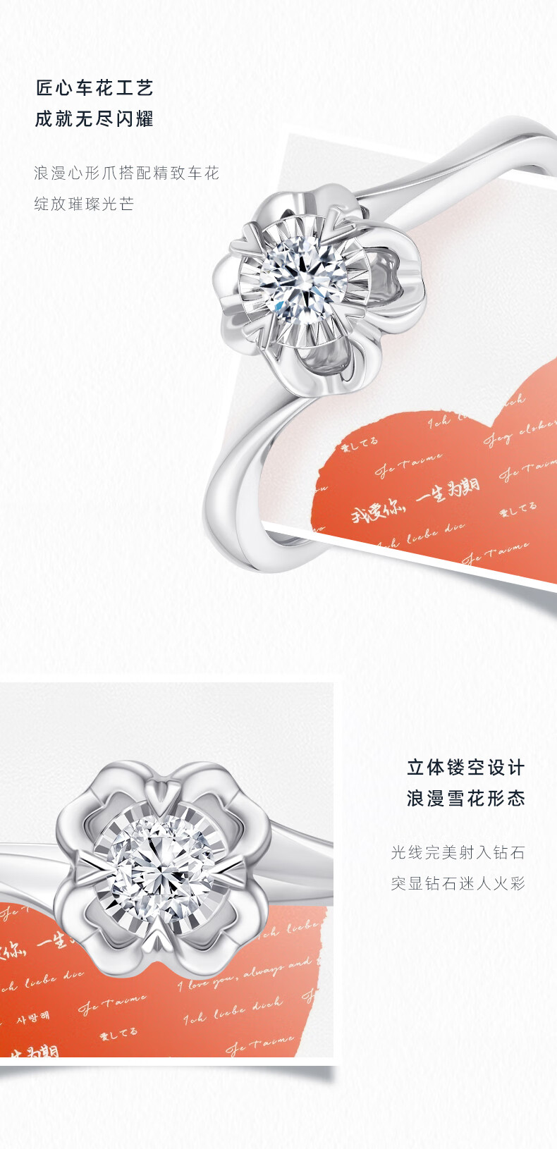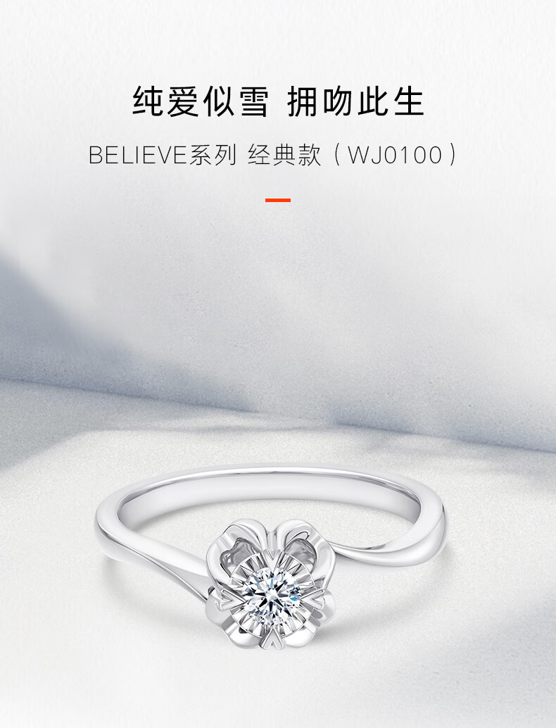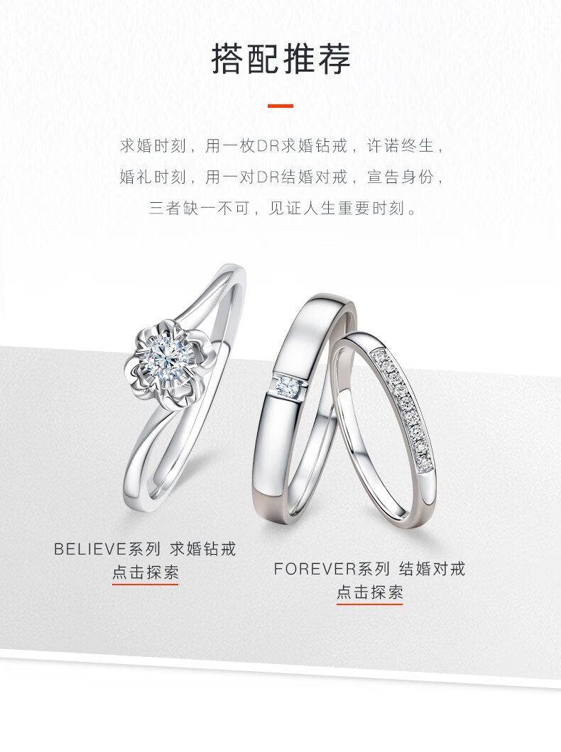 DR Spot Platinum Diamond Ring BELIEVE Snow Kiss Wedding Diamond Ring Confession Anniversary Holiday Gift 70% Users Select Spot Sparkling 6 Points H Color SI1
