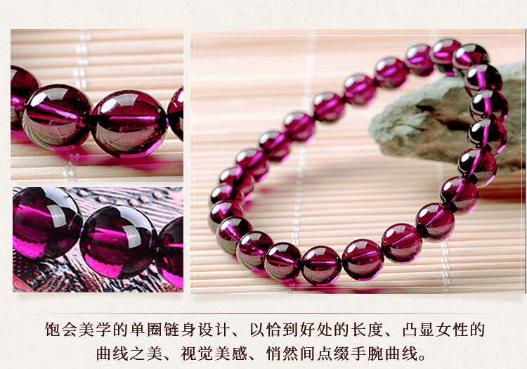 Shixi 7-8mm Purple Teeth Black Garnet Bracelet Boutique Bracelet for Men and Women Crystal Agate Purple Red Personalized Versatile