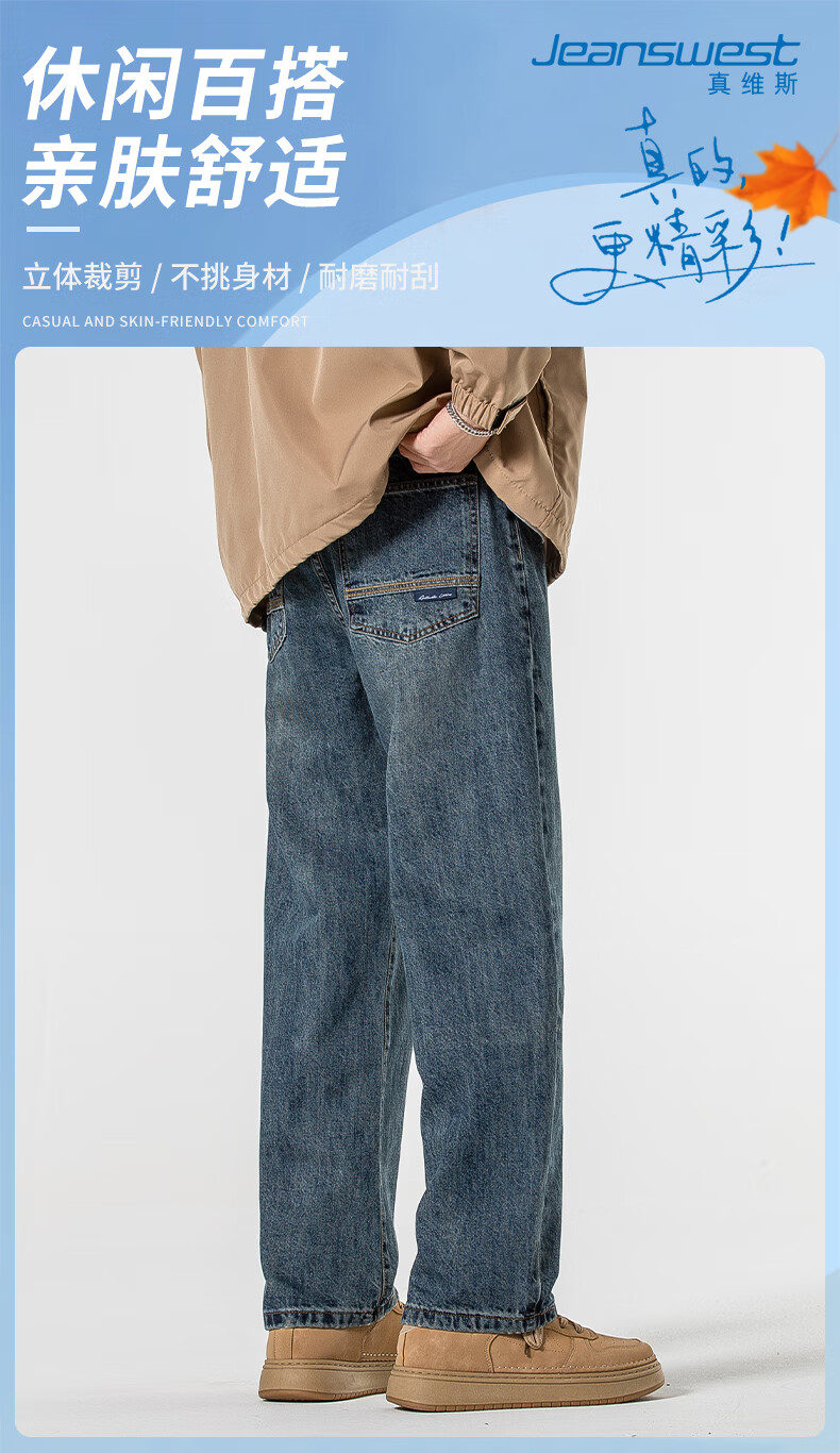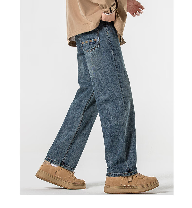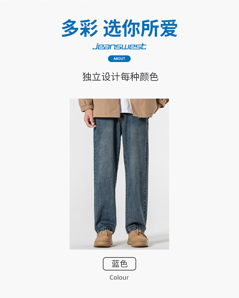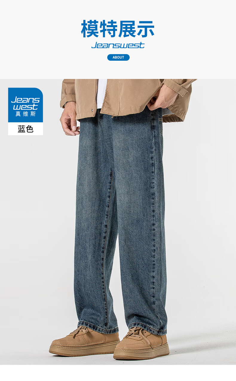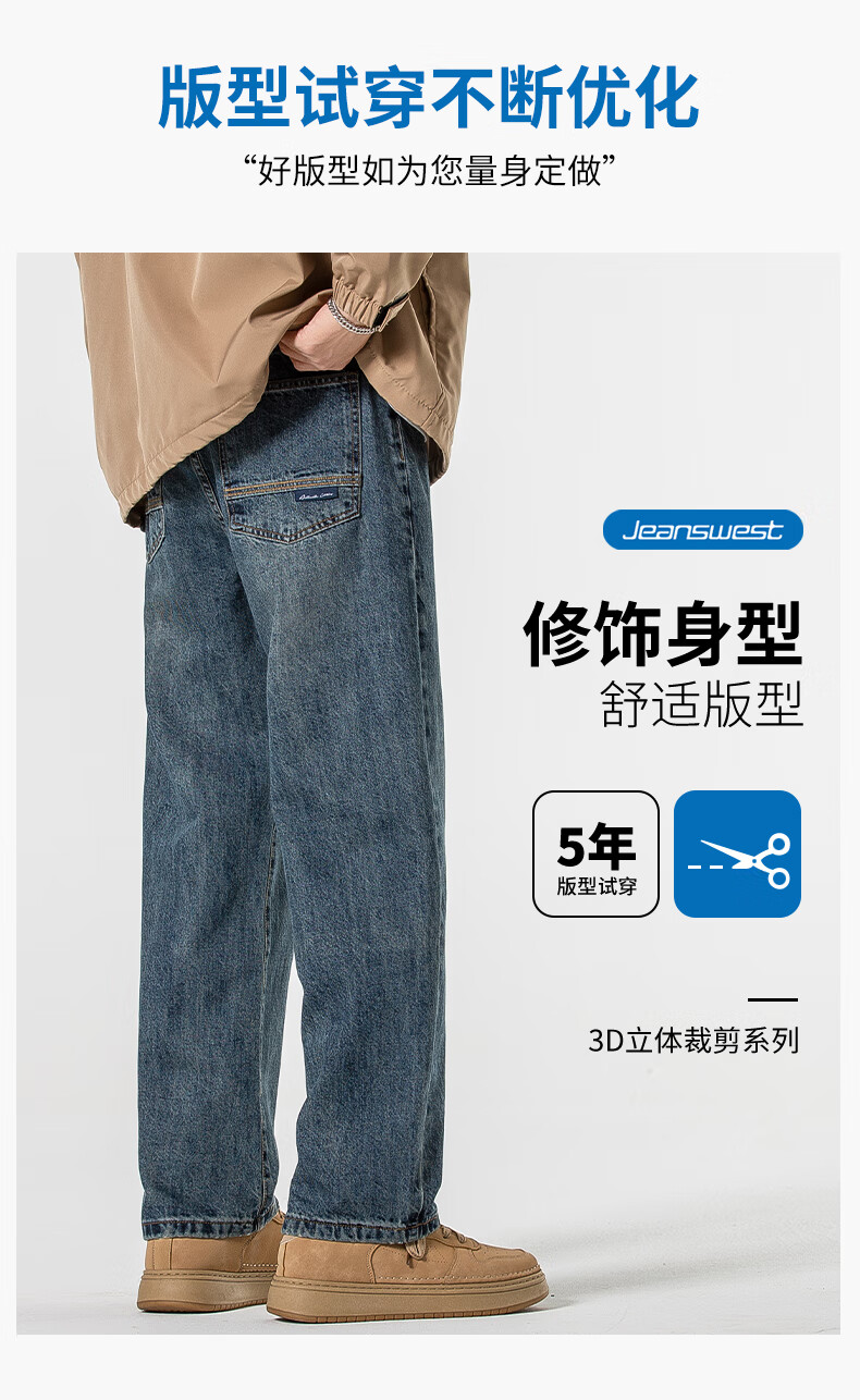Мужские джинсы Jeanswest весна-осень 2025 модный бренд тяжеловес американские свободные прямые широкие брюки универсальные ретро мужские брюки T003 синие 32 2 фута 5 - вес 135-145 Jin Jin равен 0,5 кг