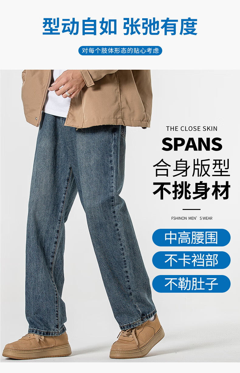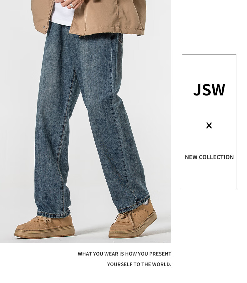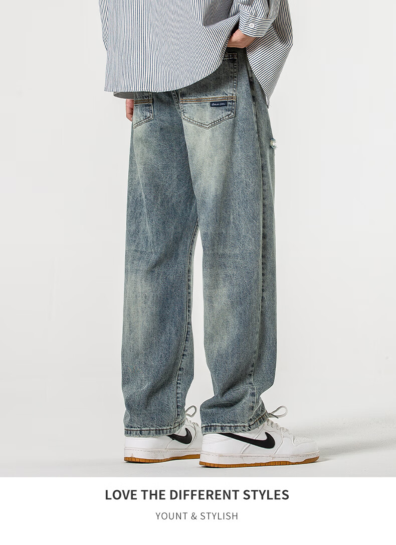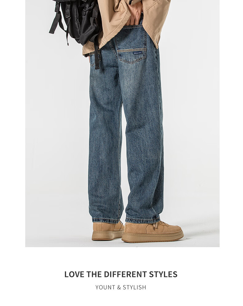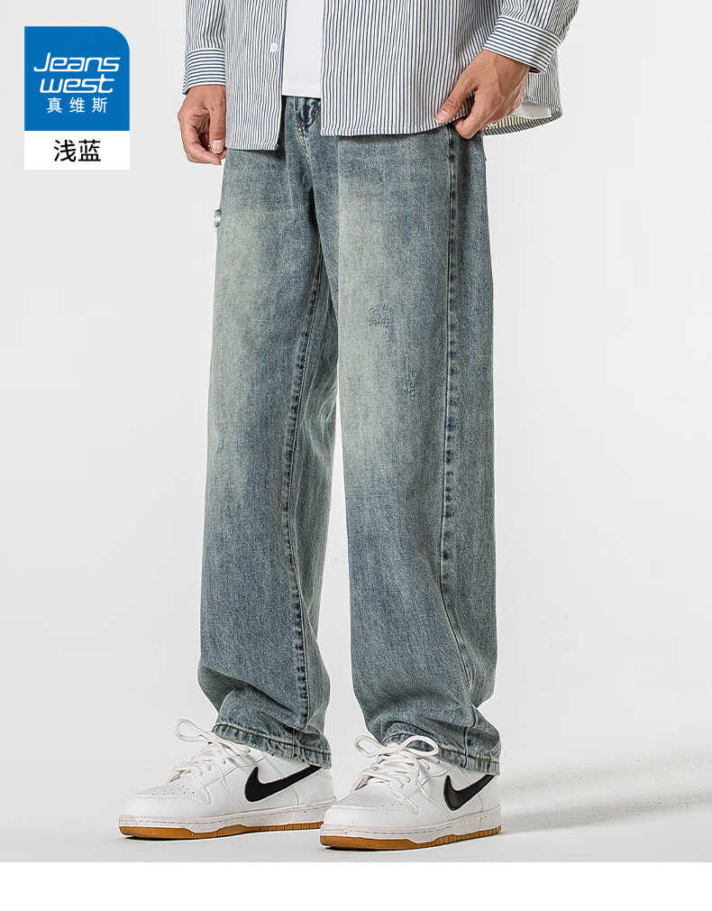 Мужские джинсы Jeanswest весна-осень 2025 модный бренд тяжеловес американские свободные прямые широкие брюки универсальные ретро мужские брюки T003 синие 32 2 фута 5 - вес 135-145 Jin Jin равен 0,5 кг