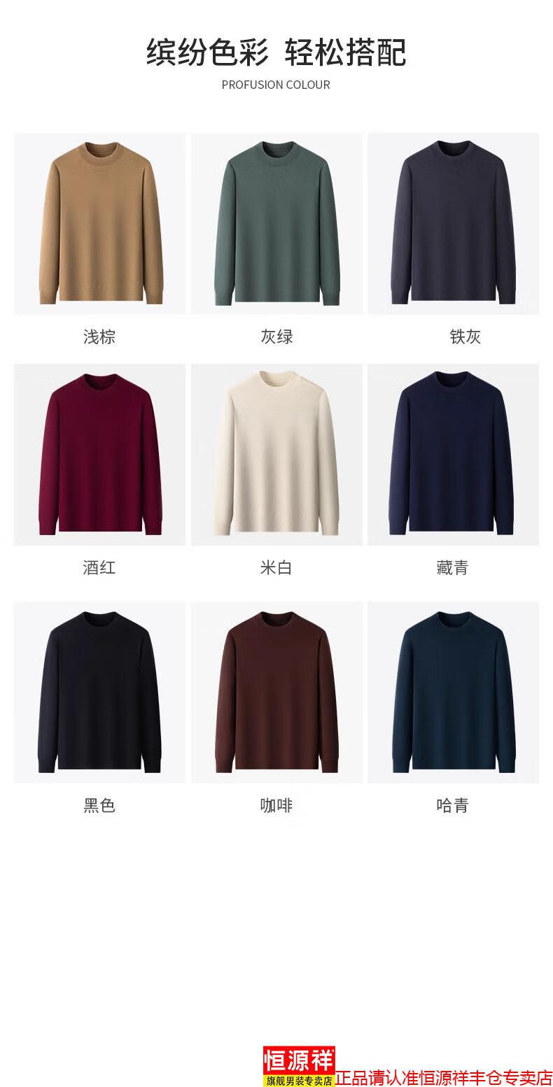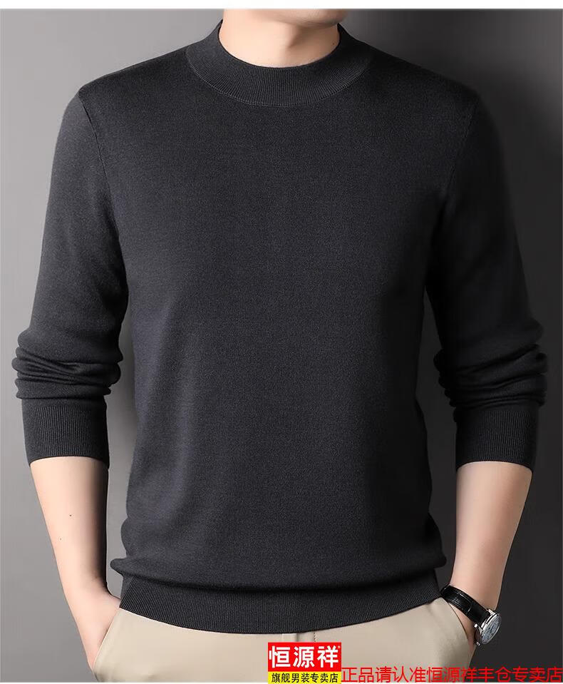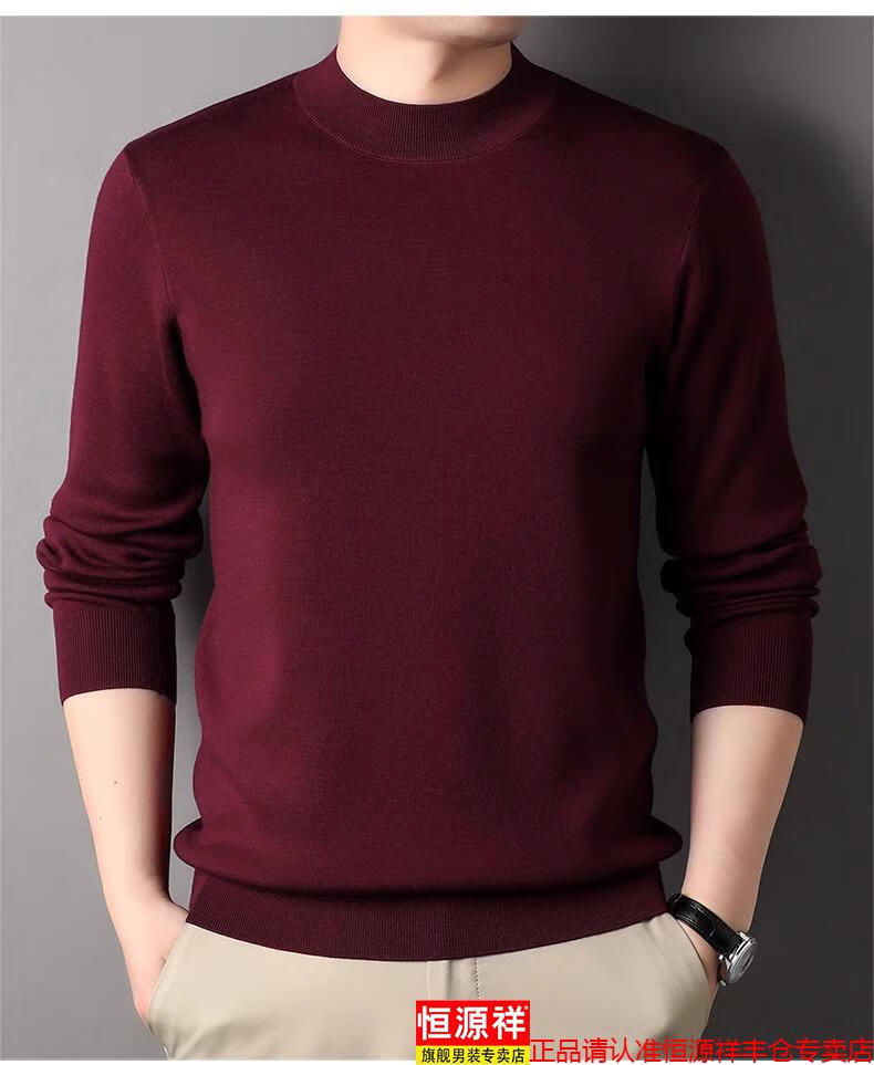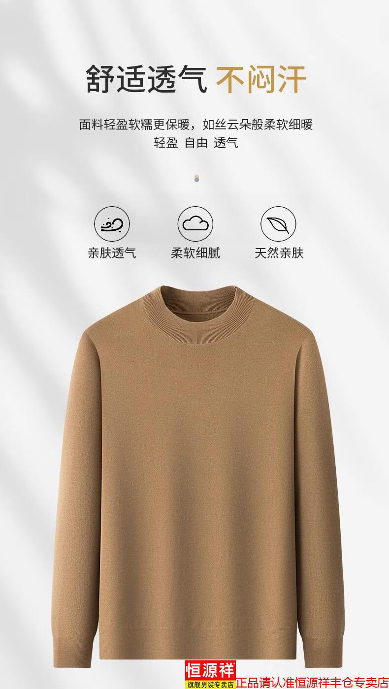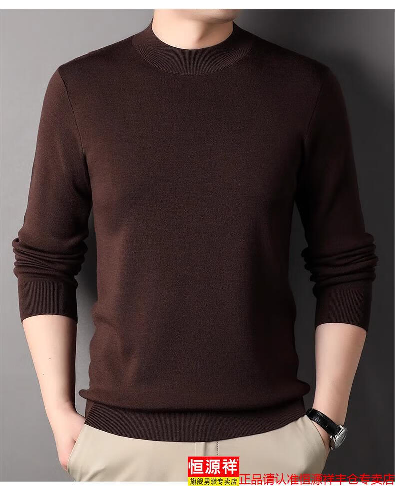 Hengyuanxiang light luxury high-end machine washable sweater for men spring and autumn pure wool sweater worsted half turtleneck sweater for men thin coffee 175/XL