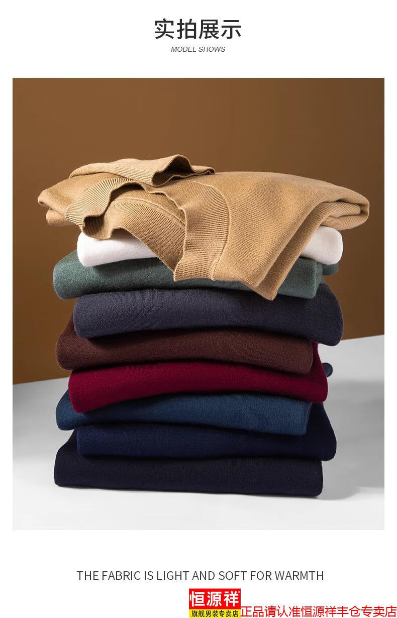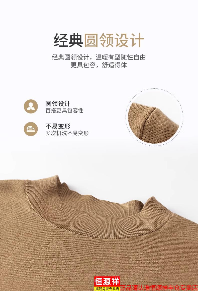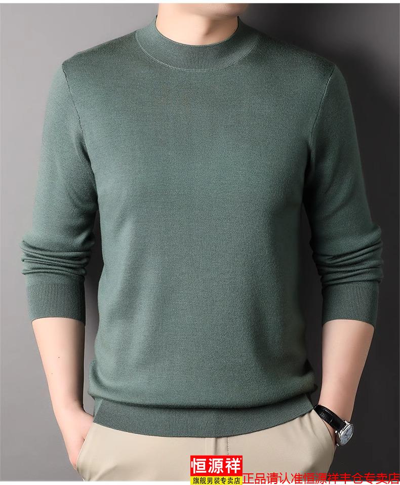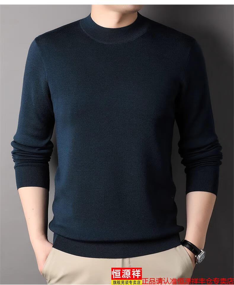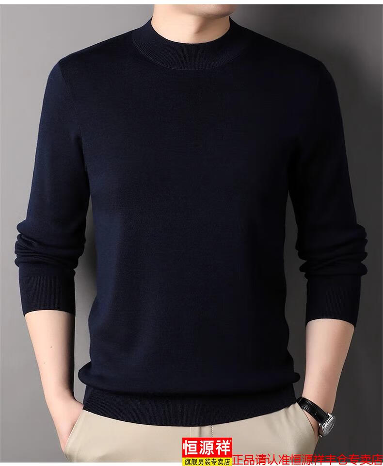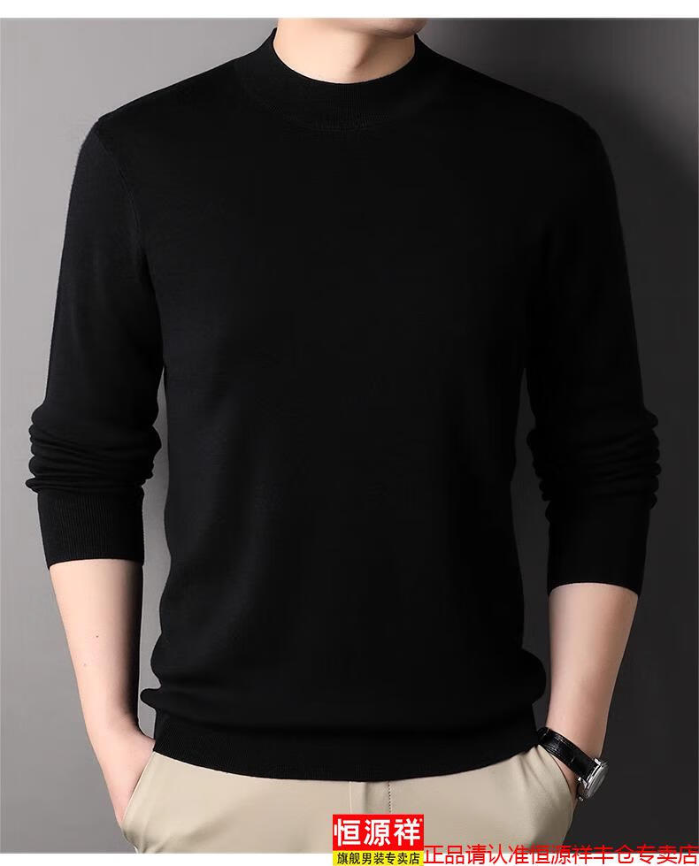 Hengyuanxiang light luxury high-end machine washable sweater for men spring and autumn pure wool sweater worsted half turtleneck sweater for men thin coffee 175/XL