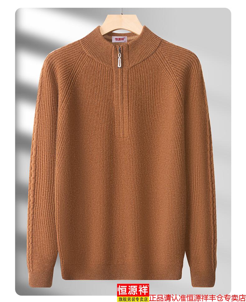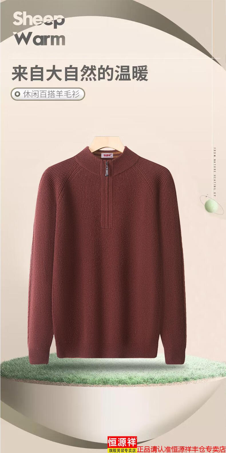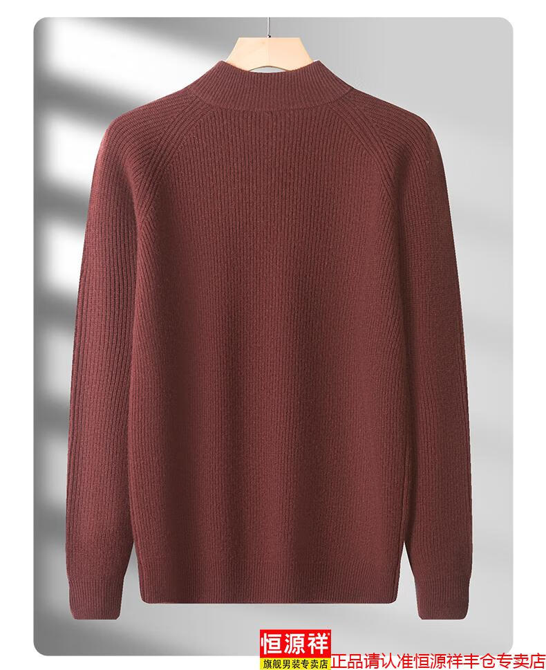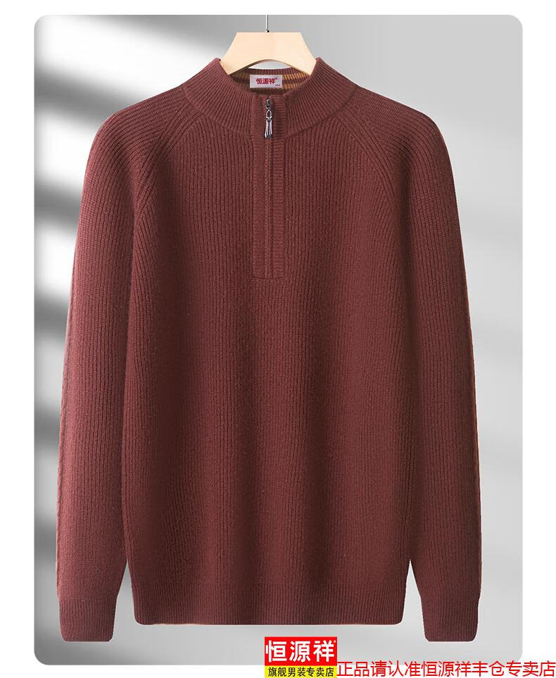 Hengyuanxiang High-End Wool Sweater 2025 New Men's Half-Zip Collar Warm Sweater Winter Dad Knitted Top 86143 Gold Maroon 165 Suitable for 100-120 Jin Jin equals 0.5 kg