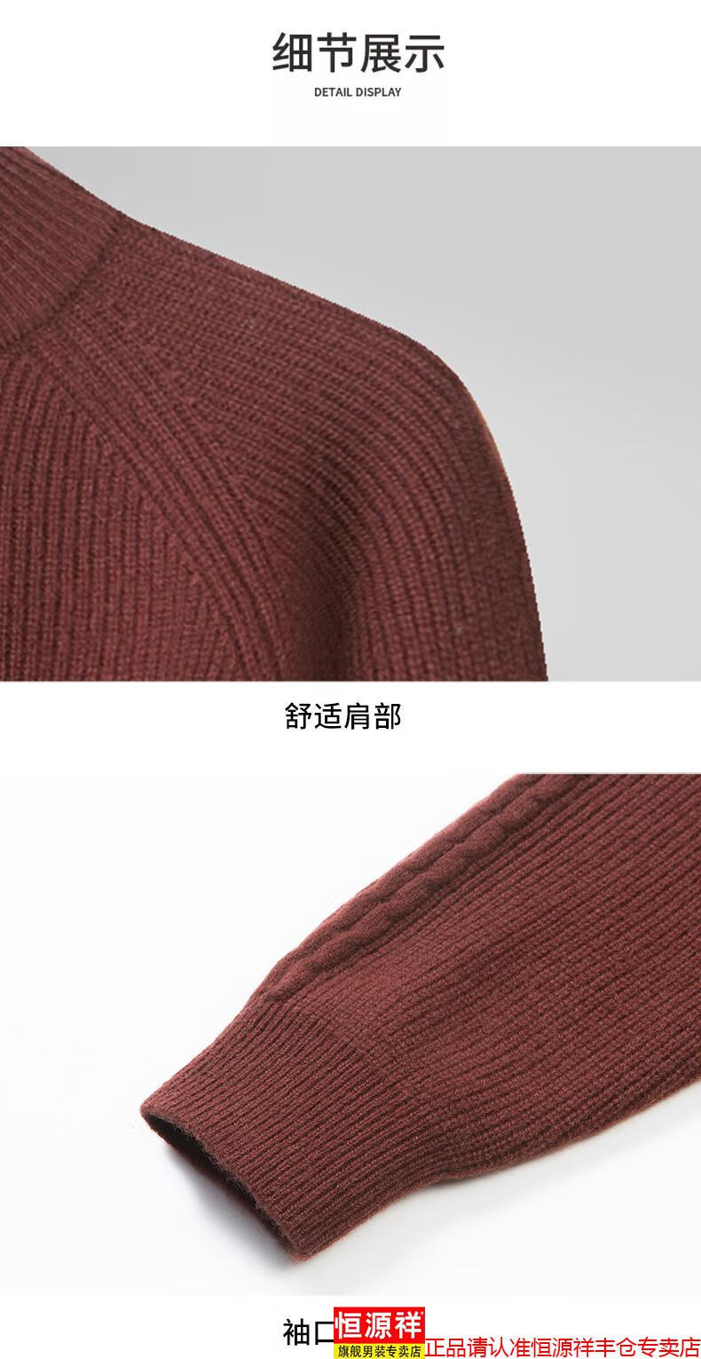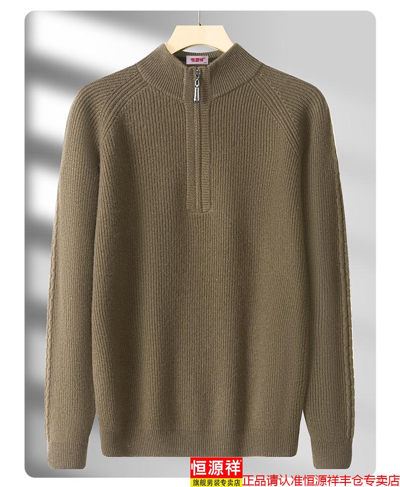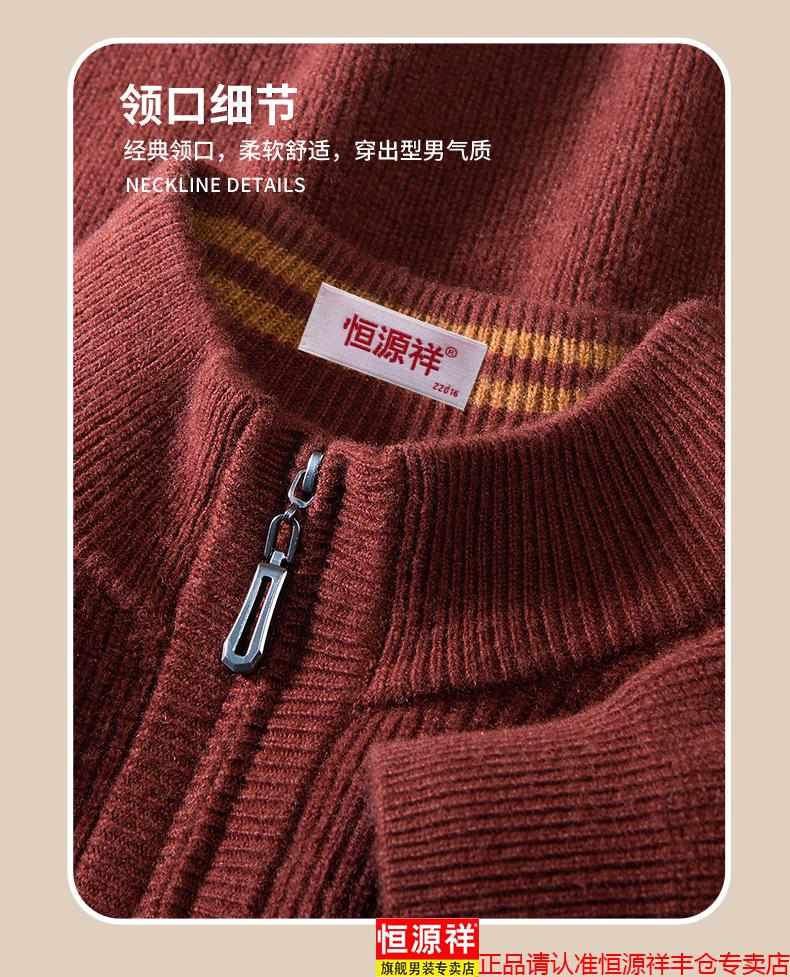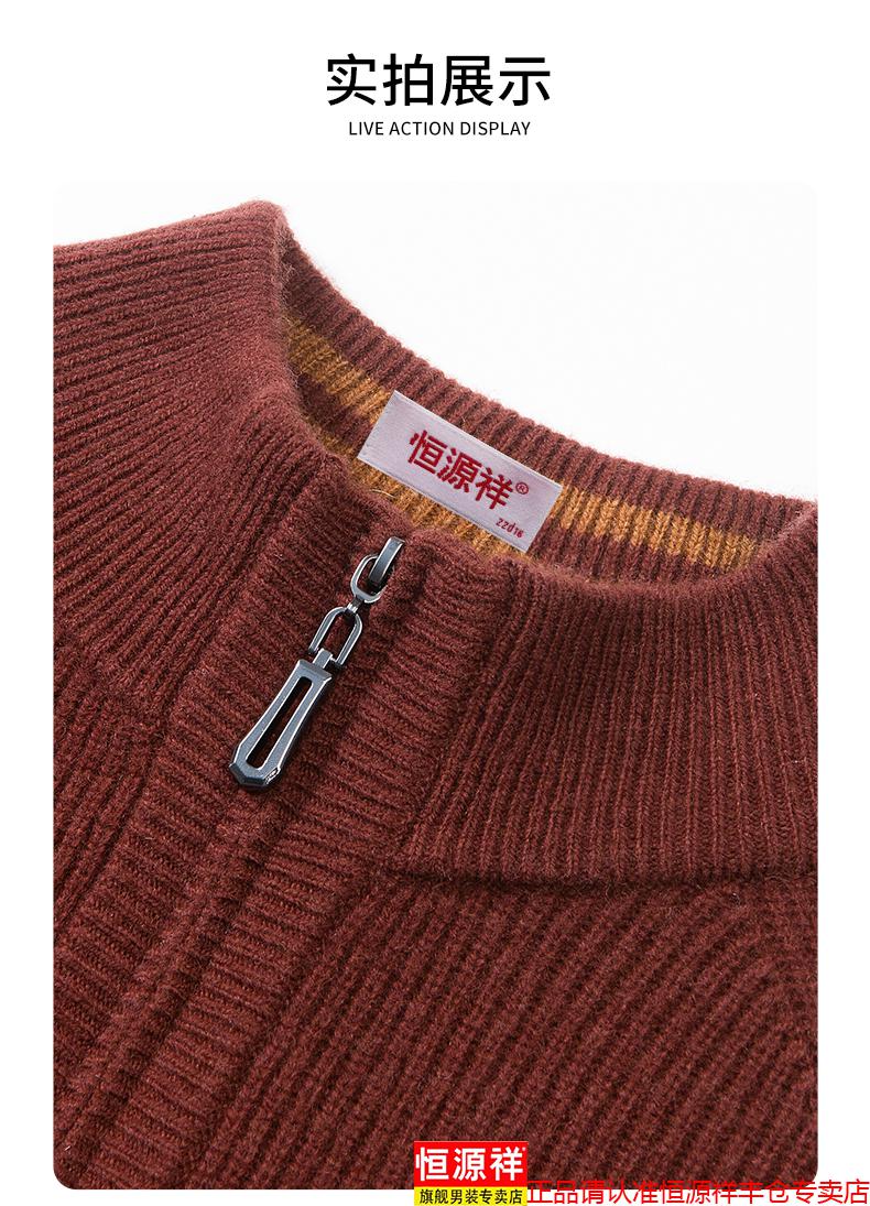 Hengyuanxiang High-End Wool Sweater 2025 New Men's Half-Zip Collar Warm Sweater Winter Dad Knitted Top 86143 Gold Maroon 165 Suitable for 100-120 Jin Jin equals 0.5 kg