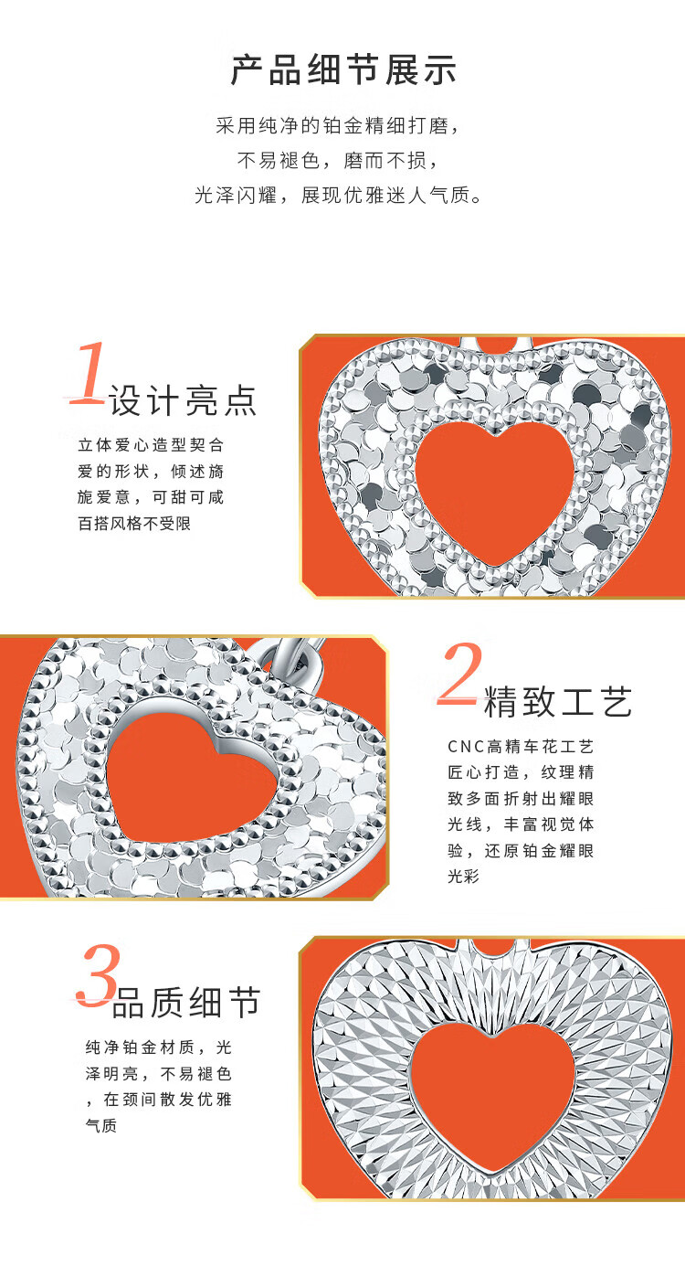 Liuguifu Jewelry Platinum Pendant Love pt950 Platinum Pendant Chain Pendant Birthday Gift Necklace 1.70g