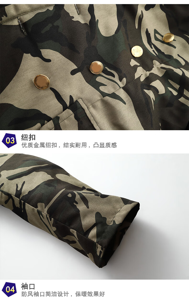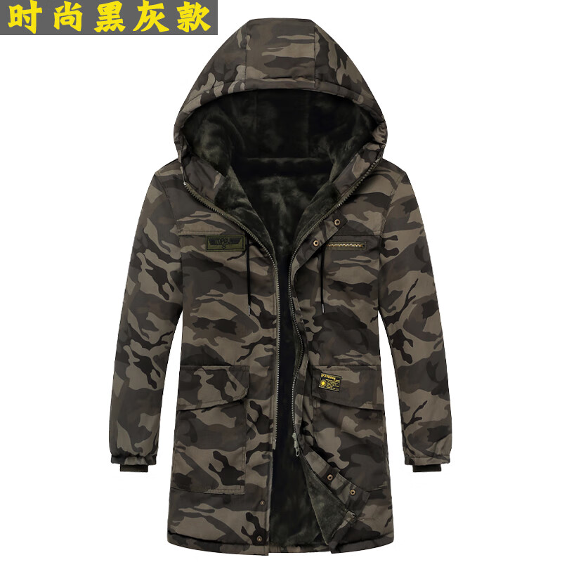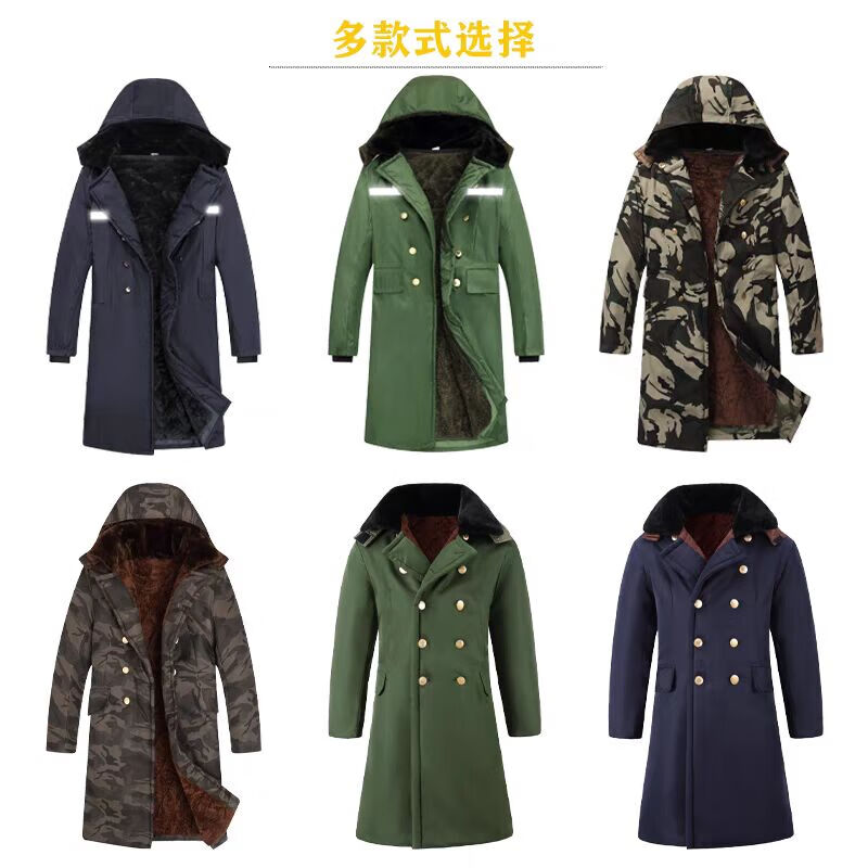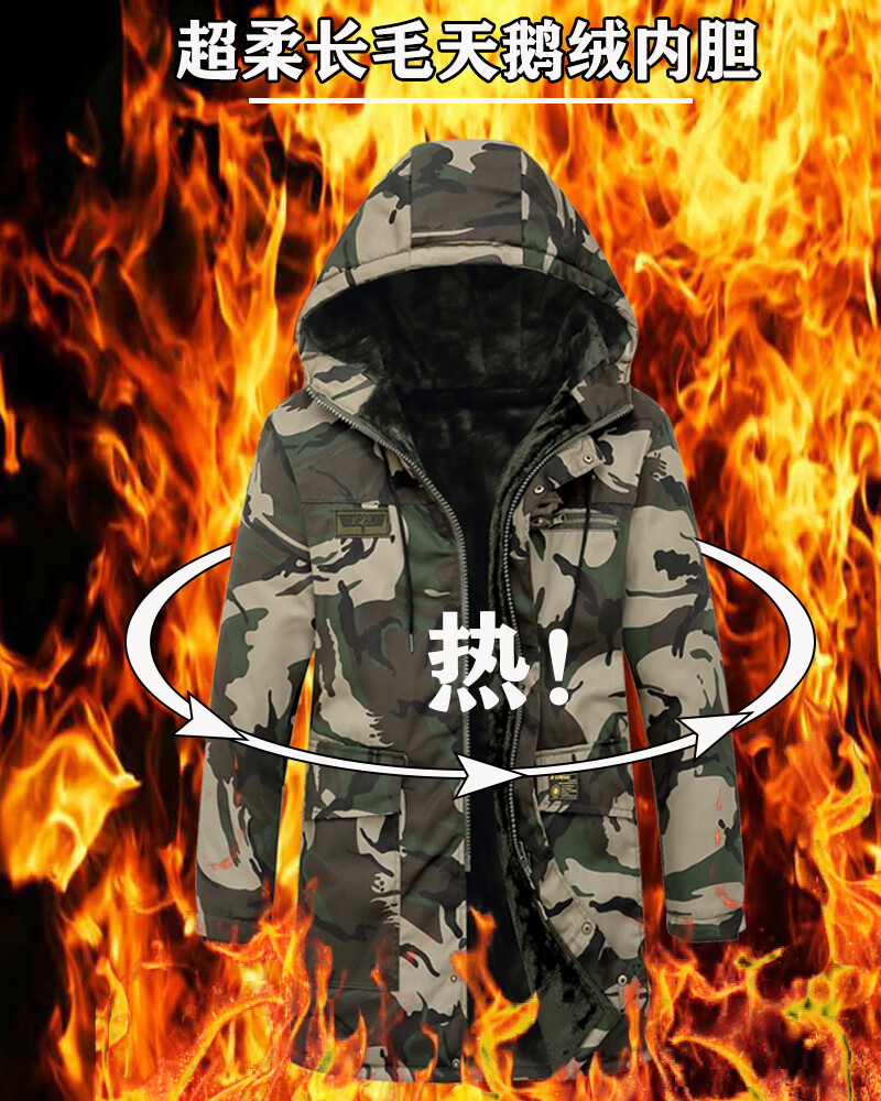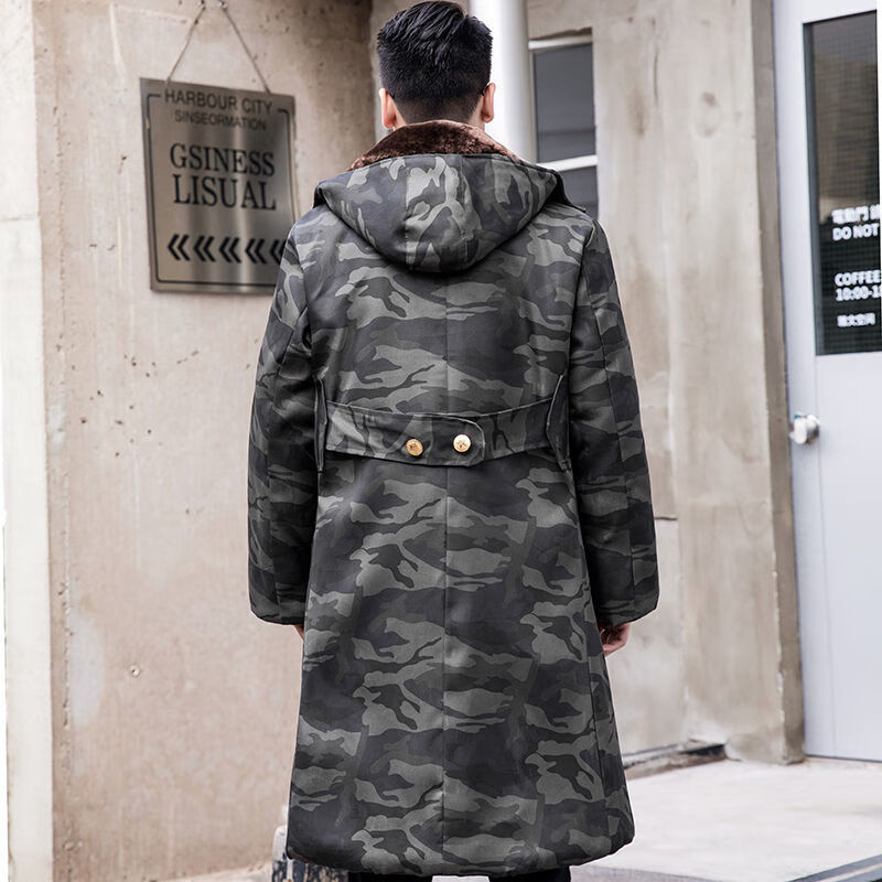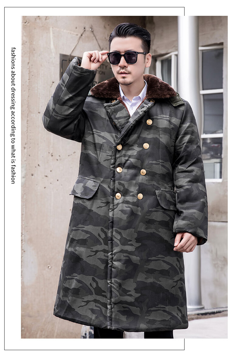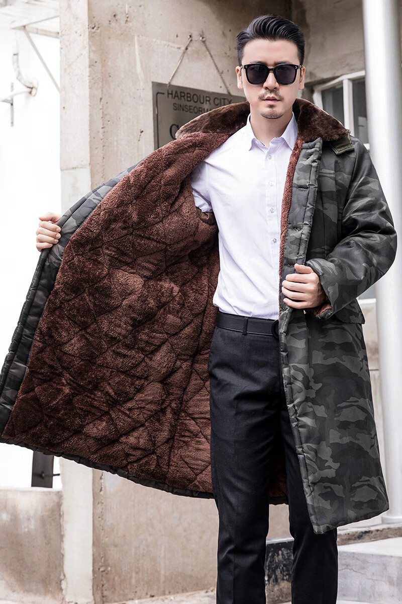 Hengyuanxiang camouflage cotton coat men's winter thickened middle-aged cotton coat plus velvet cotton coat cold storage cold-proof cotton jacket overalls waterproof extra-long military green (to the middle and lower calf) small size (suitable for 100-130Jin Jin equals 0.5 kg)
