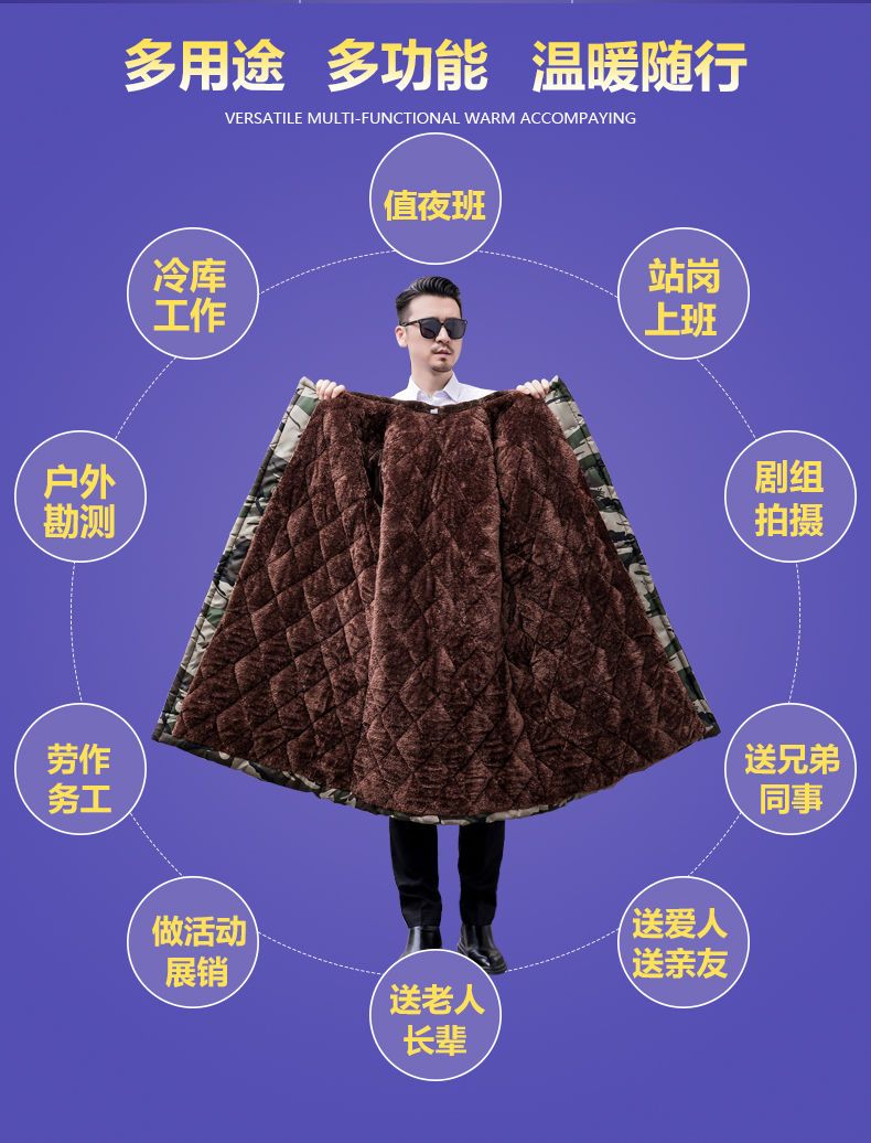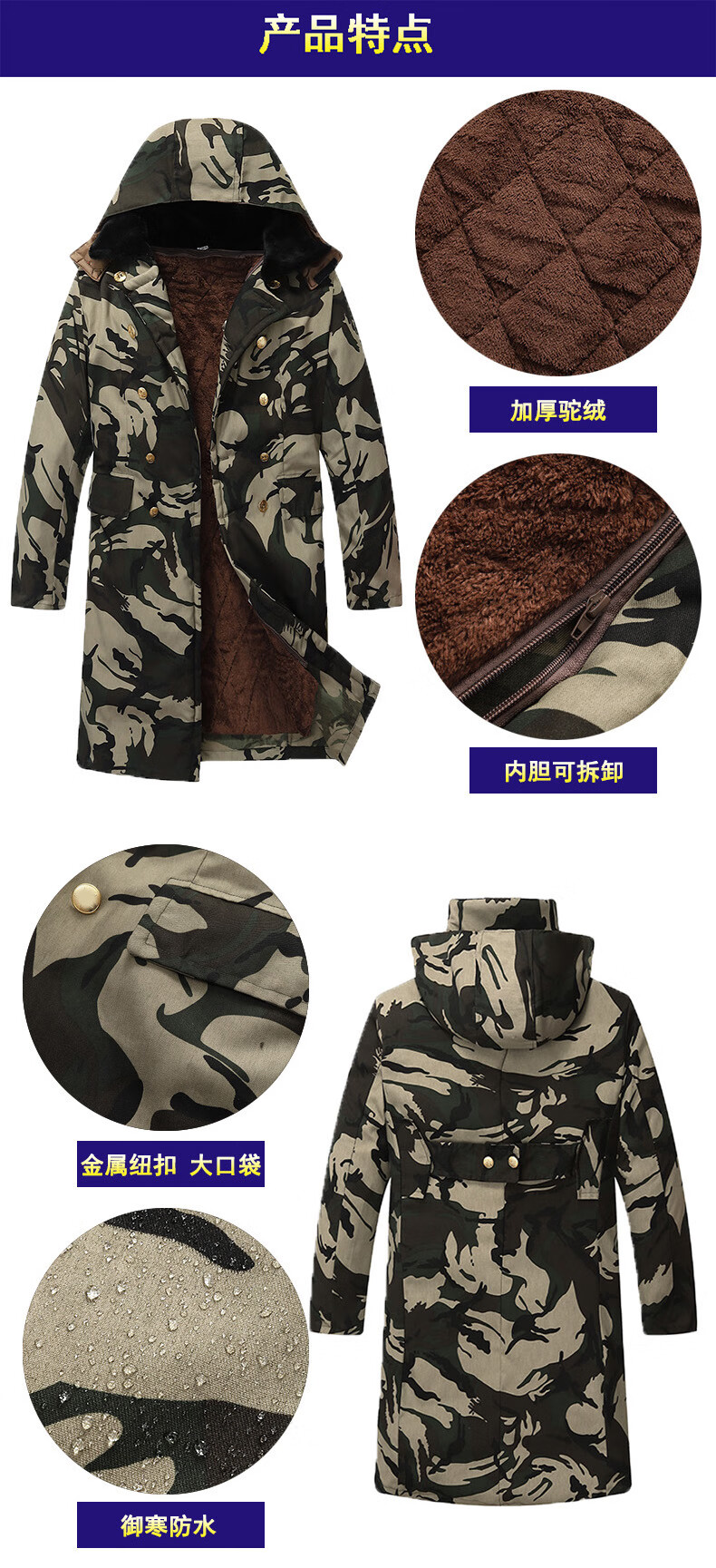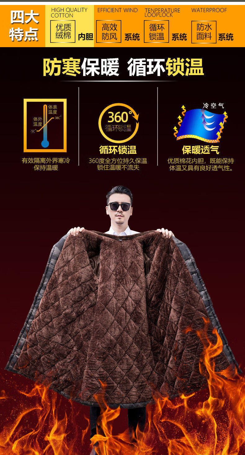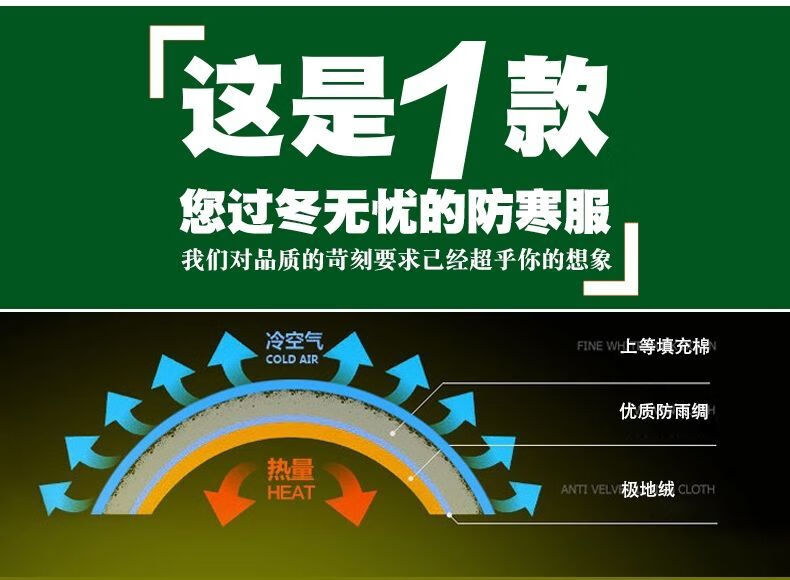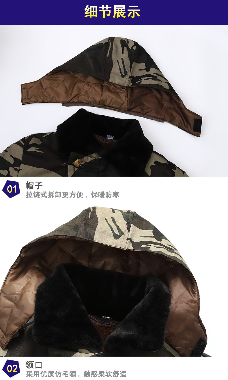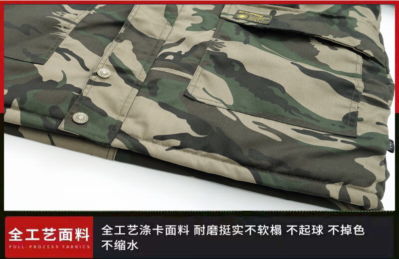 Hengyuanxiang camouflage cotton coat men's winter thickened middle-aged cotton coat plus velvet cotton coat cold storage cold-proof cotton jacket overalls waterproof extra-long military green (to the middle and lower calf) small size (suitable for 100-130Jin Jin equals 0.5 kg)