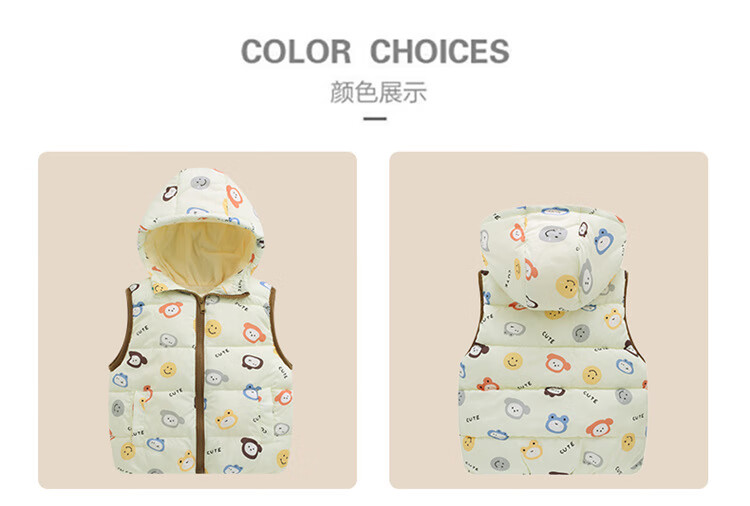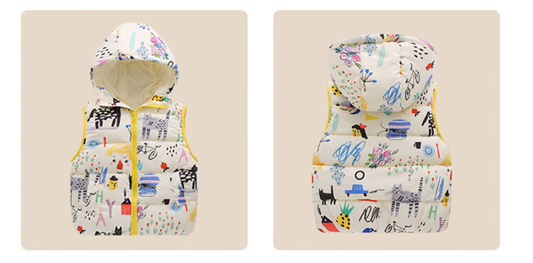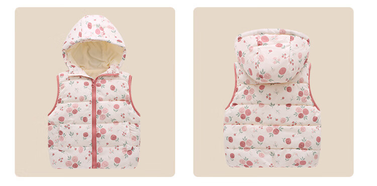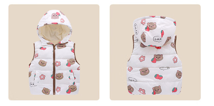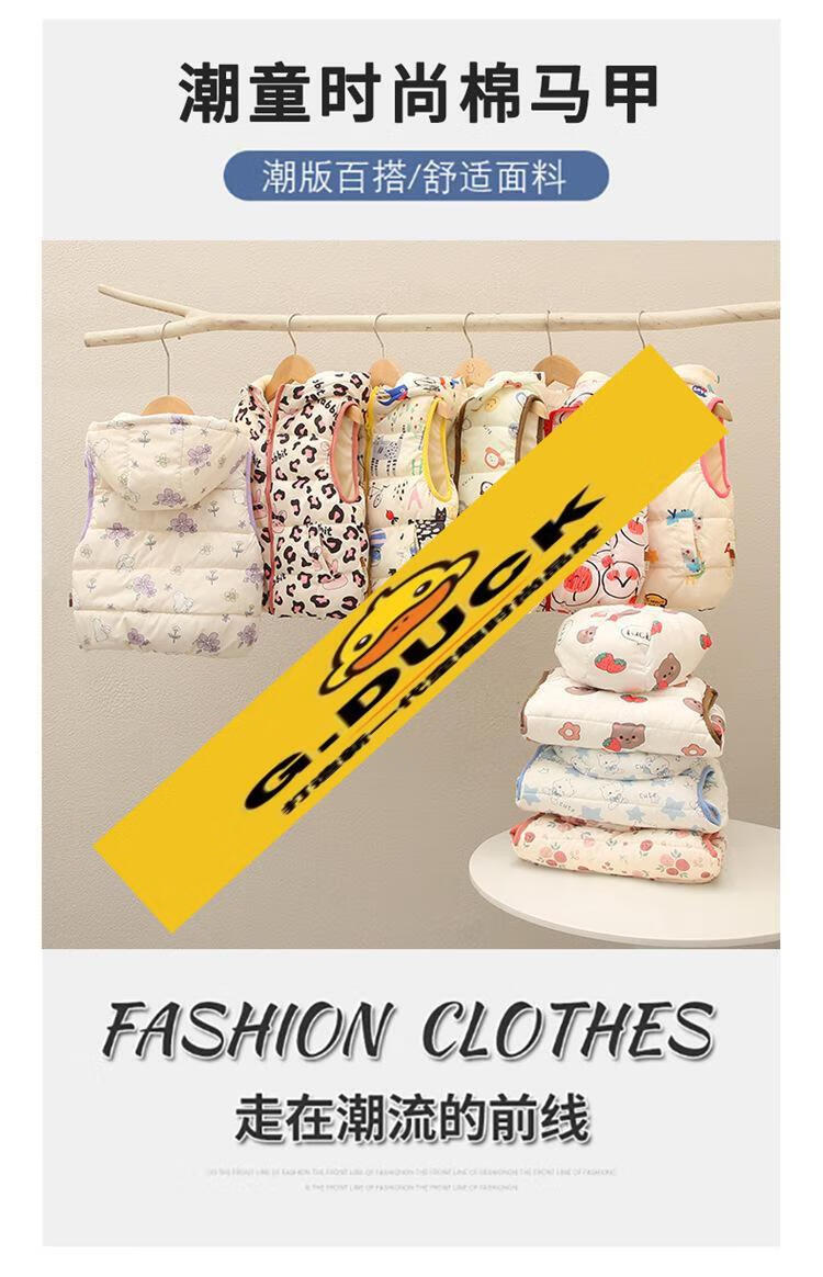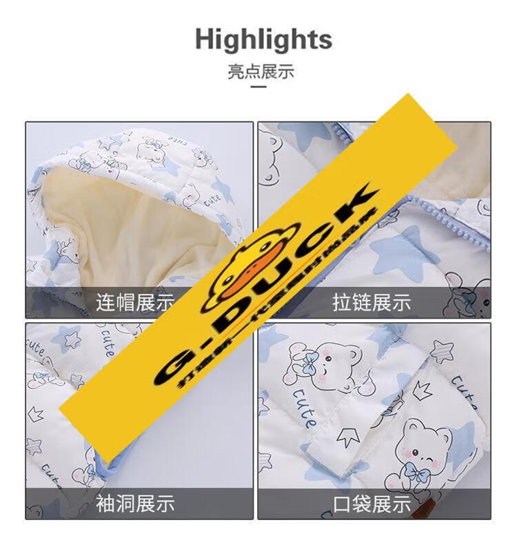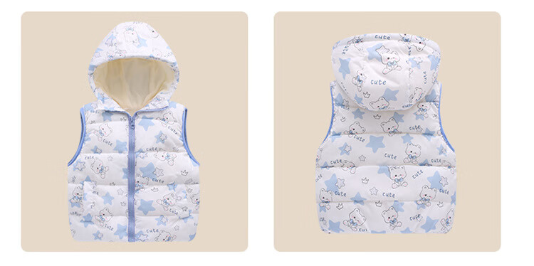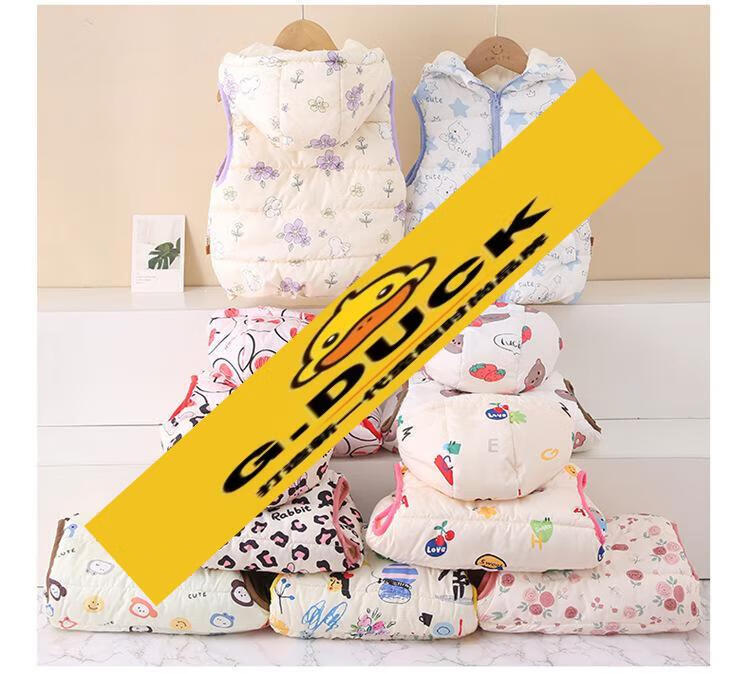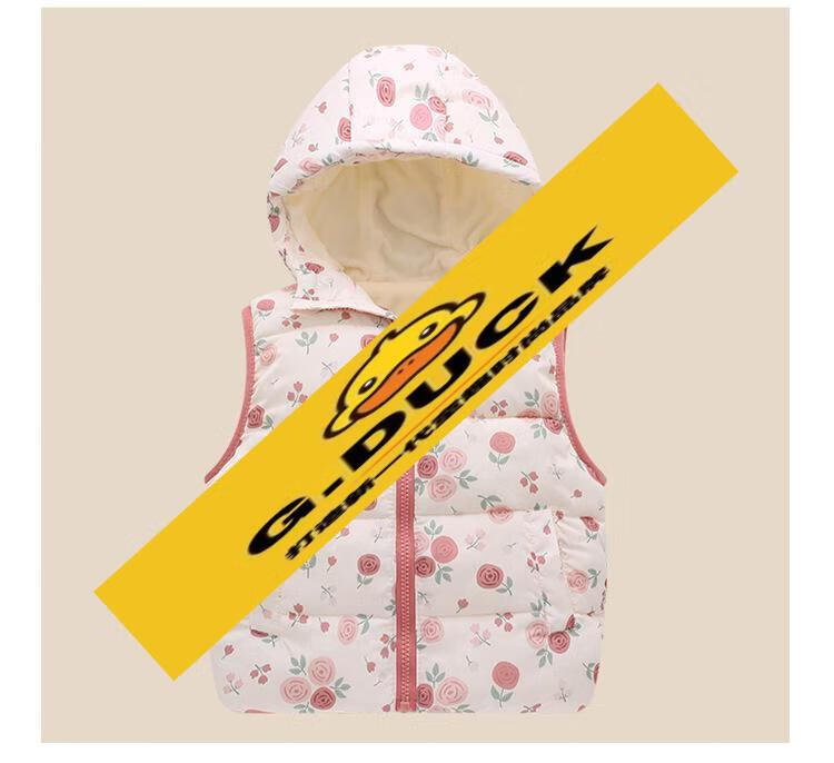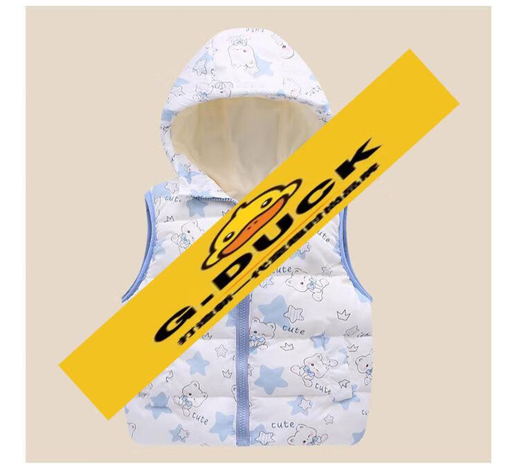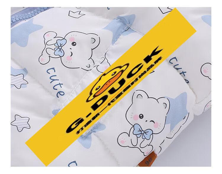 G.DUCKKIDS children's down cotton vest autumn and winter new style small and medium-sized children's floral hooded vest male and female baby warm vest jacket blue bear 120 height 110-115cm age 5-6 years old