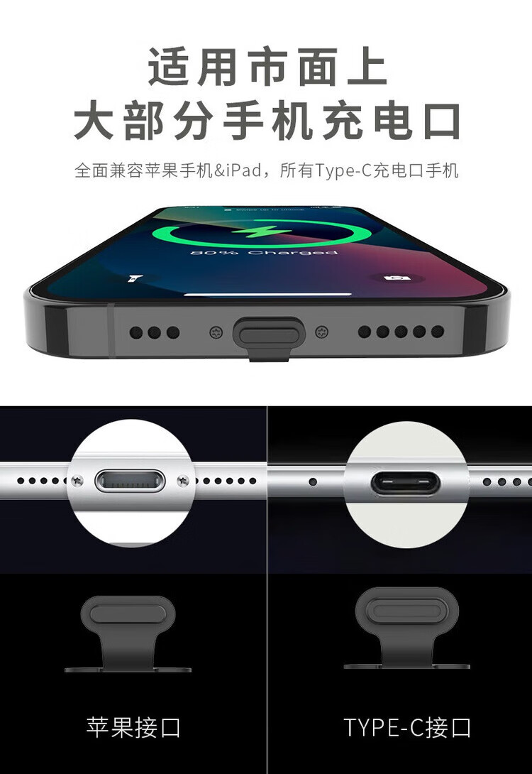 Fun appliance anti-lost mobile phone dust-proof plug type-c charging port dust-proof plug suitable for Apple 16/15 Huawei Xiaomi OPPO waterproof and dust-proof sticker VIVO dust-proof net protects charging port plug type-c charging port - black 2 pieces