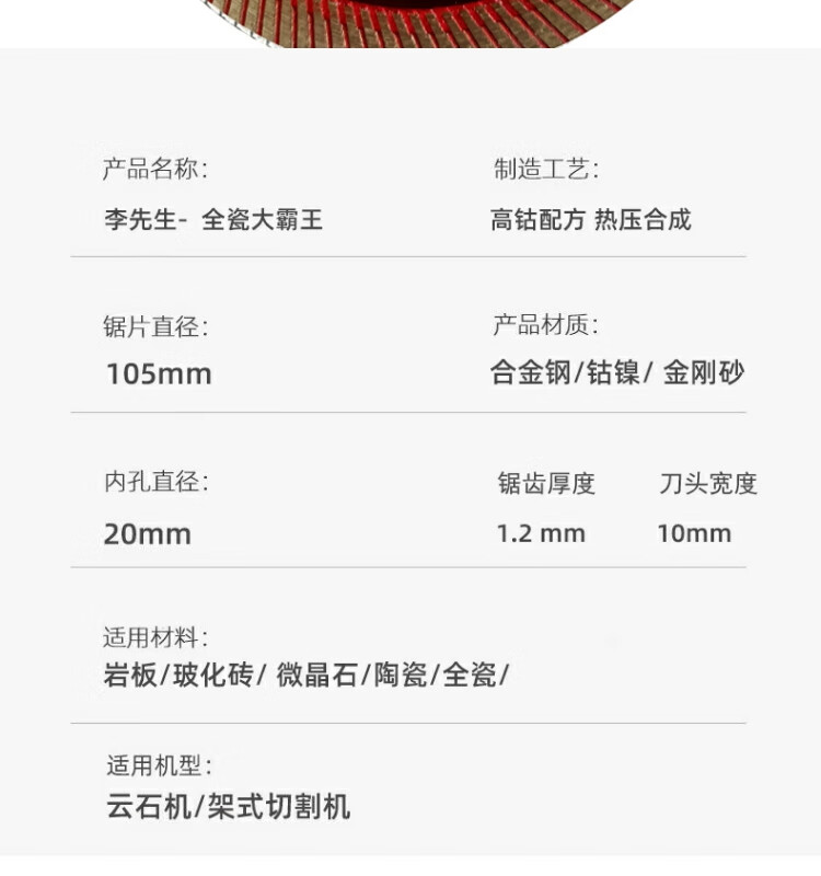 Mr. Li MR LI Mr. Li all-ceramic cutting schist board ultra-fine high-strength sharp dry cutting selected saw blade ultra-thin saw blade high quality 105 high cobalt formula diamond saw blade (buy 5 get 1 free)