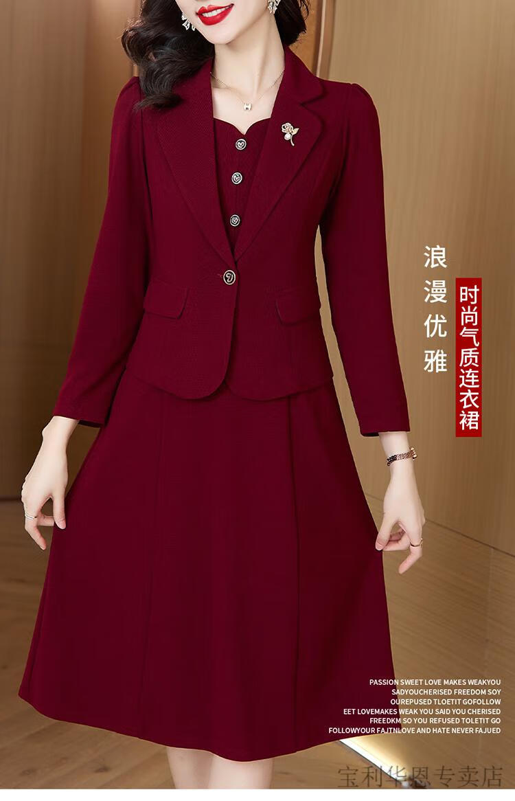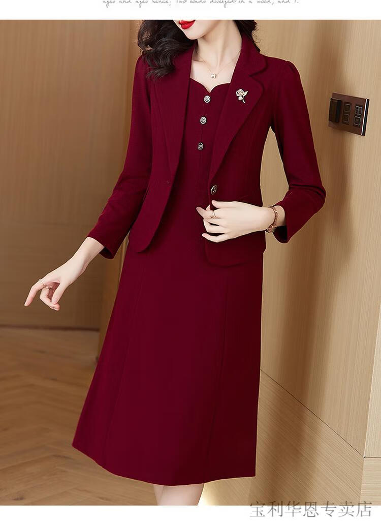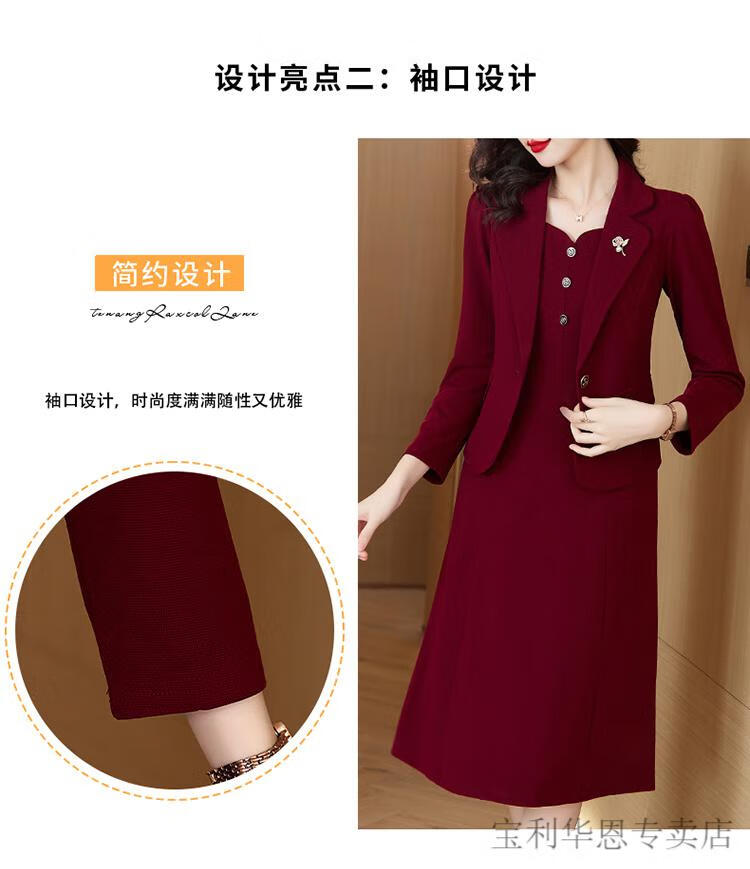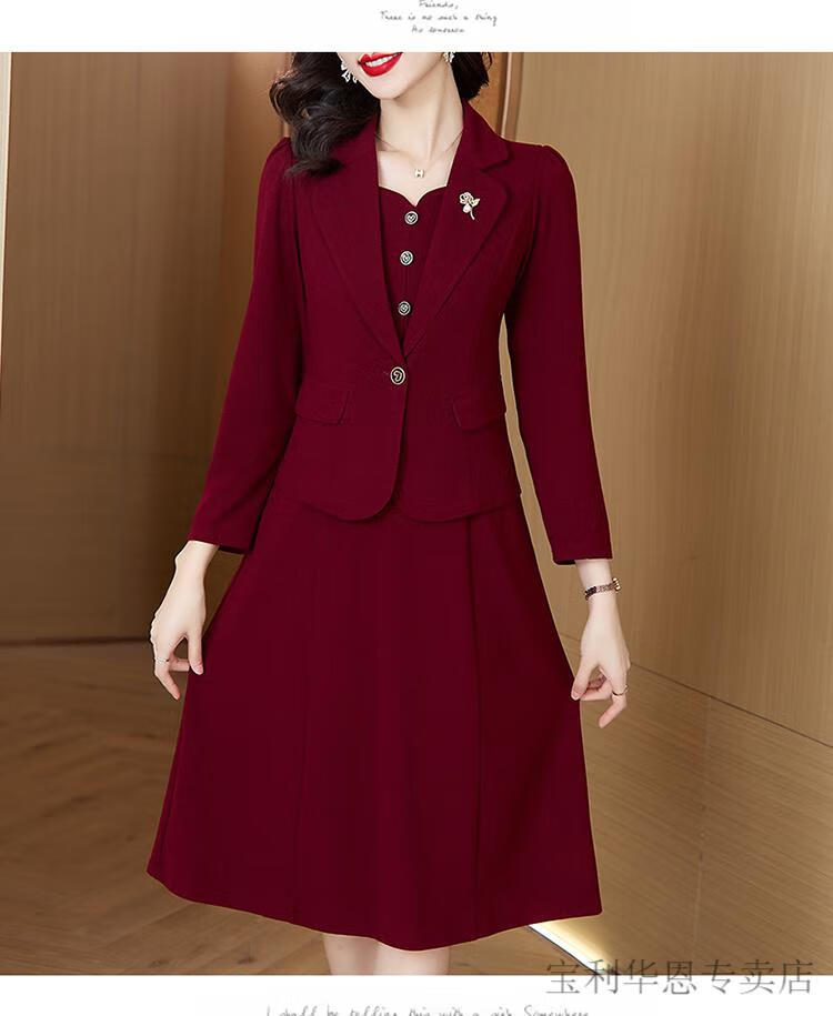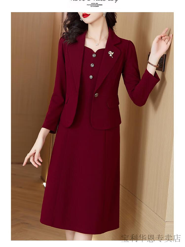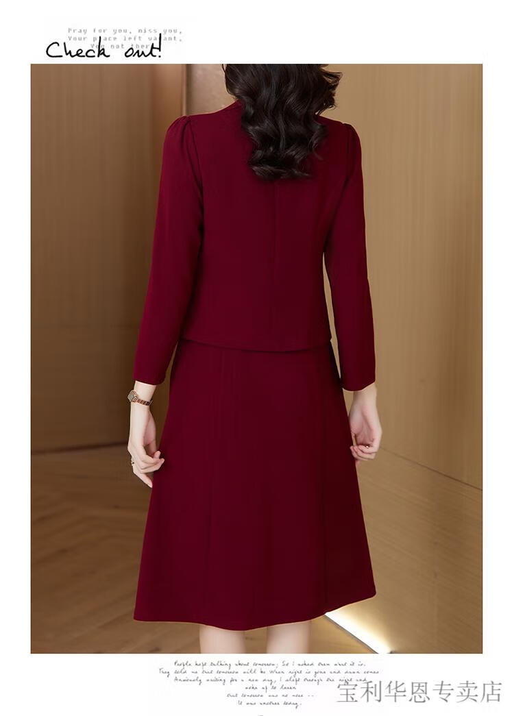 Woodpecker (TUCANO) Grandma Xi's wedding banquet dress can be worn at ordinary times. Women's new spring and autumn wedding dress. Mom's noble skirt suit. Burgundy 2XL. Recommended 120-130 Jin. Jin is equal to 0.5 kg.