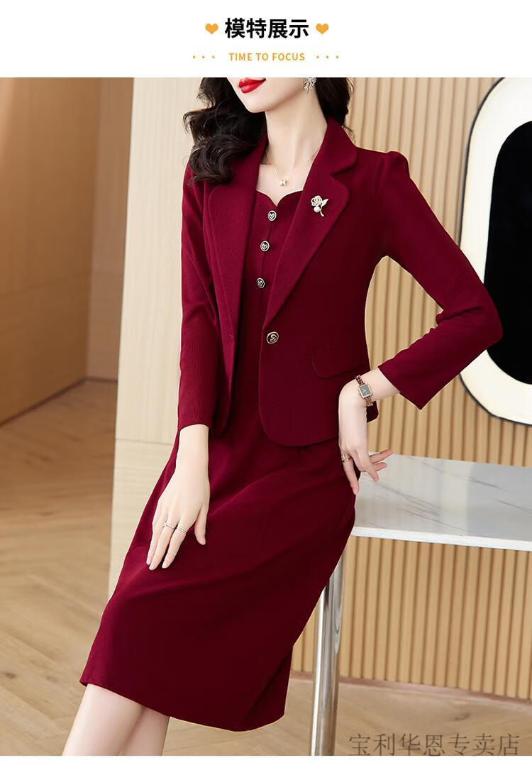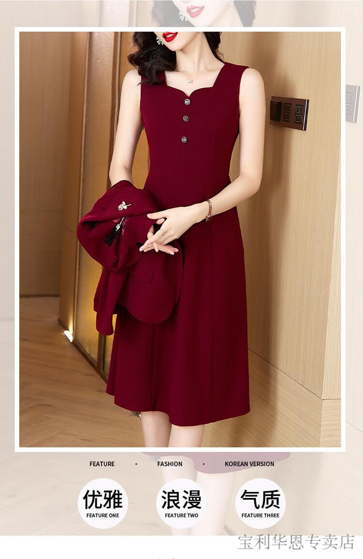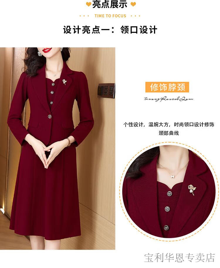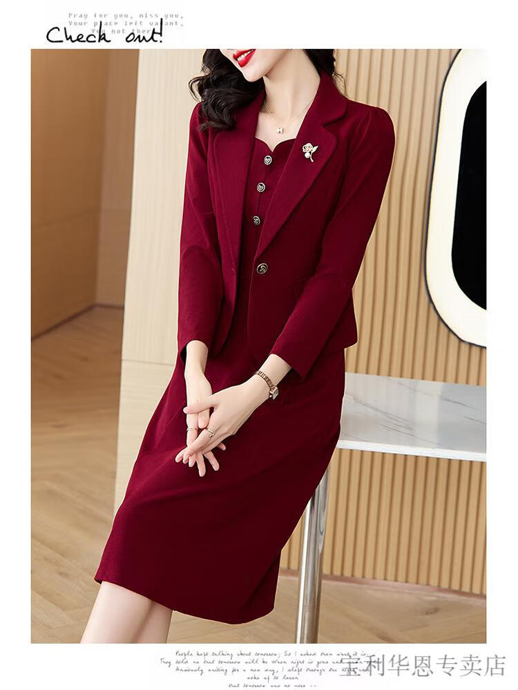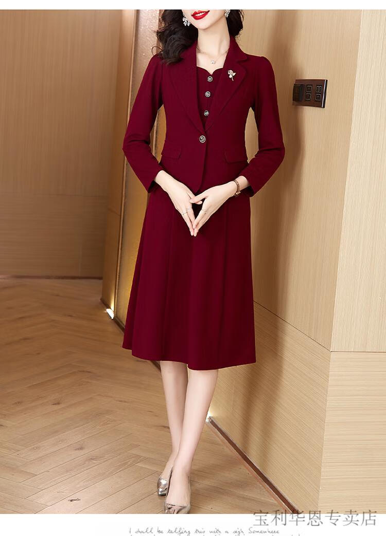 Woodpecker (TUCANO) Grandma Xi's wedding banquet dress can be worn at ordinary times. Women's new spring and autumn wedding dress. Mom's noble skirt suit. Burgundy 2XL. Recommended 120-130 Jin. Jin is equal to 0.5 kg.