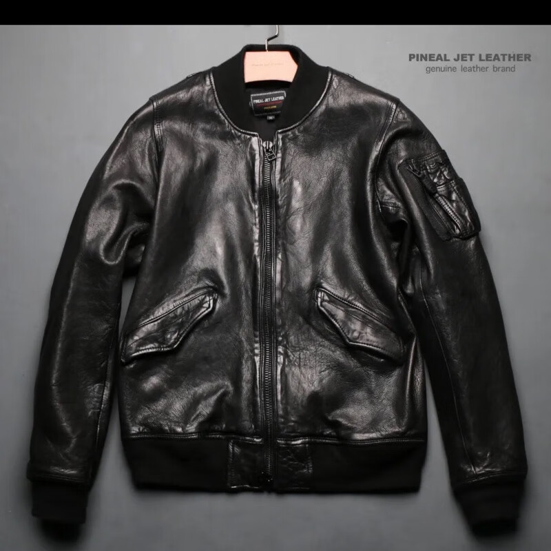2022 Men's Japanese MA-1 Retro Ame Kaba First Layer Sheepskin Spring and Autumn Leather Jacket XL 165Jin Jin is equal to less than 0.5kg