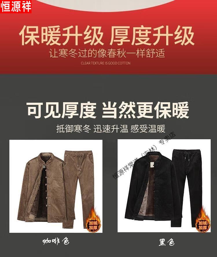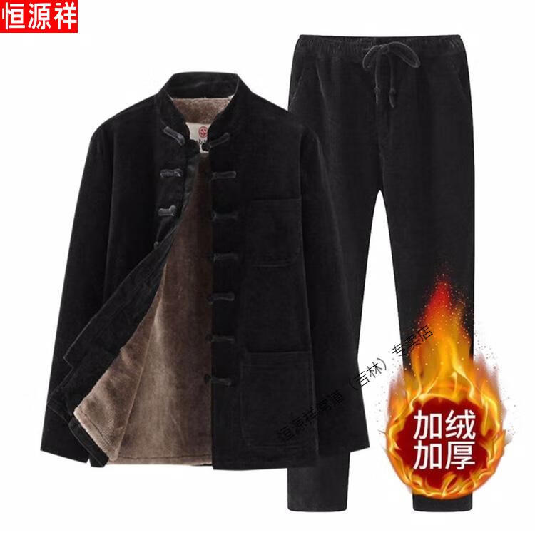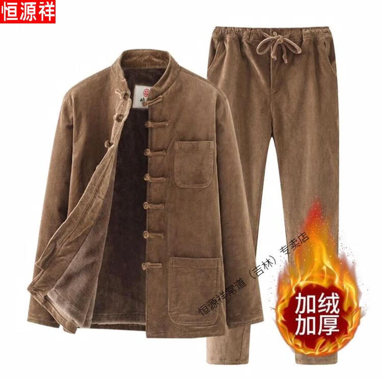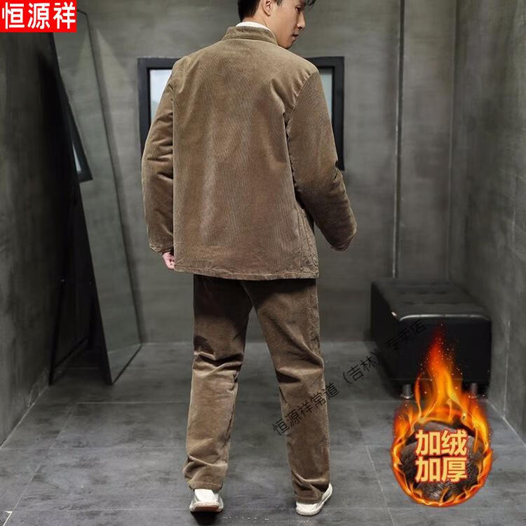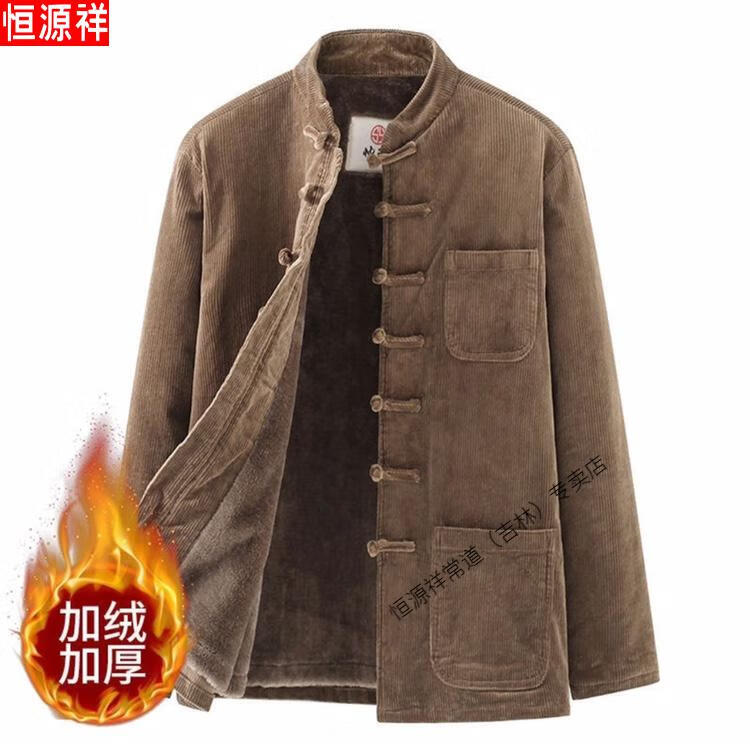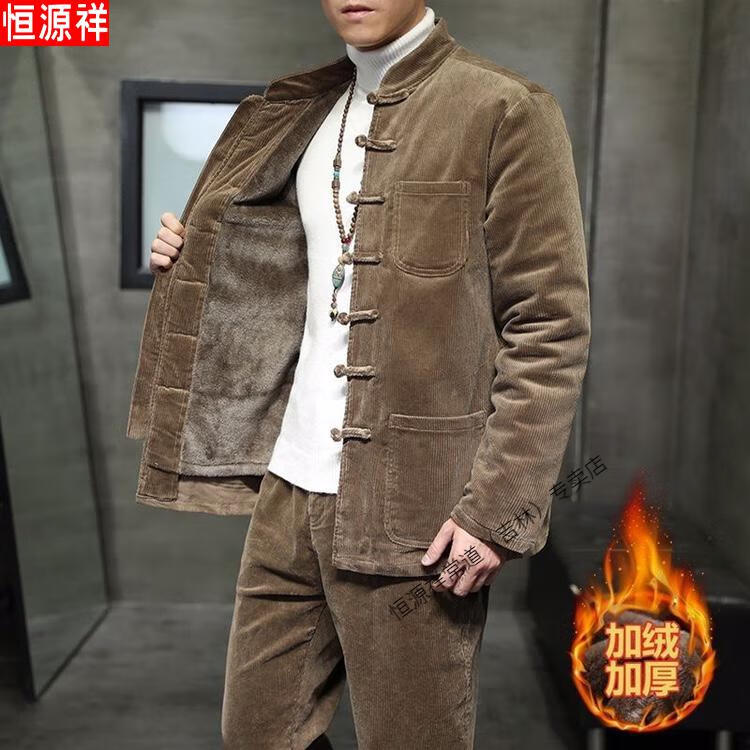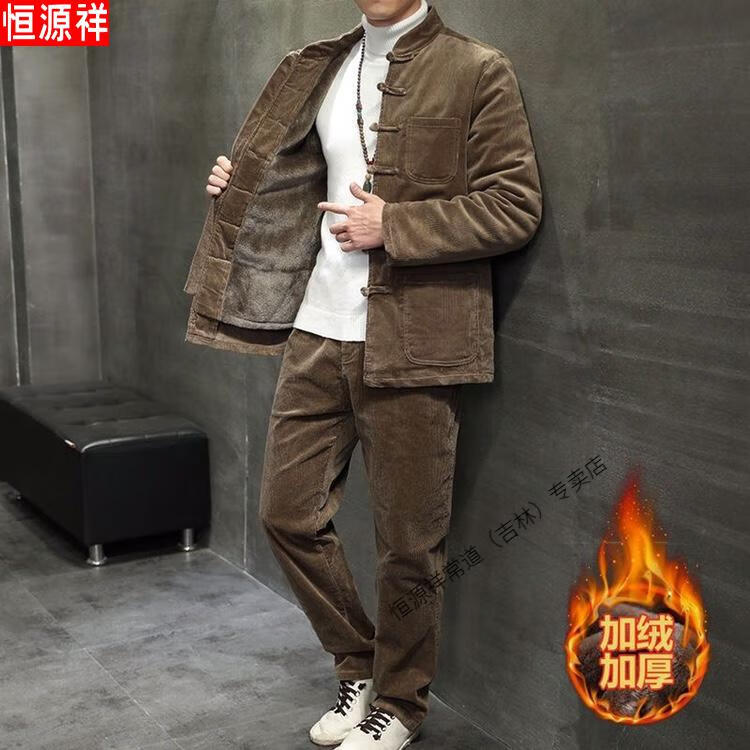 Hengyuanxiang Corduroy Tang Suit Autumn and Winter Chinese Style Suit Men's Casual Ethnic Thickened Retro Button Chinese Jacket Brown Single Top 4XL 180-200