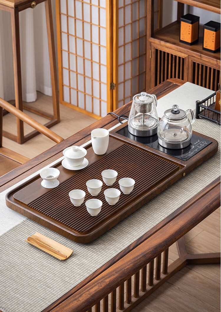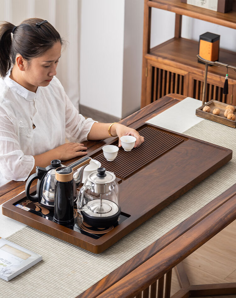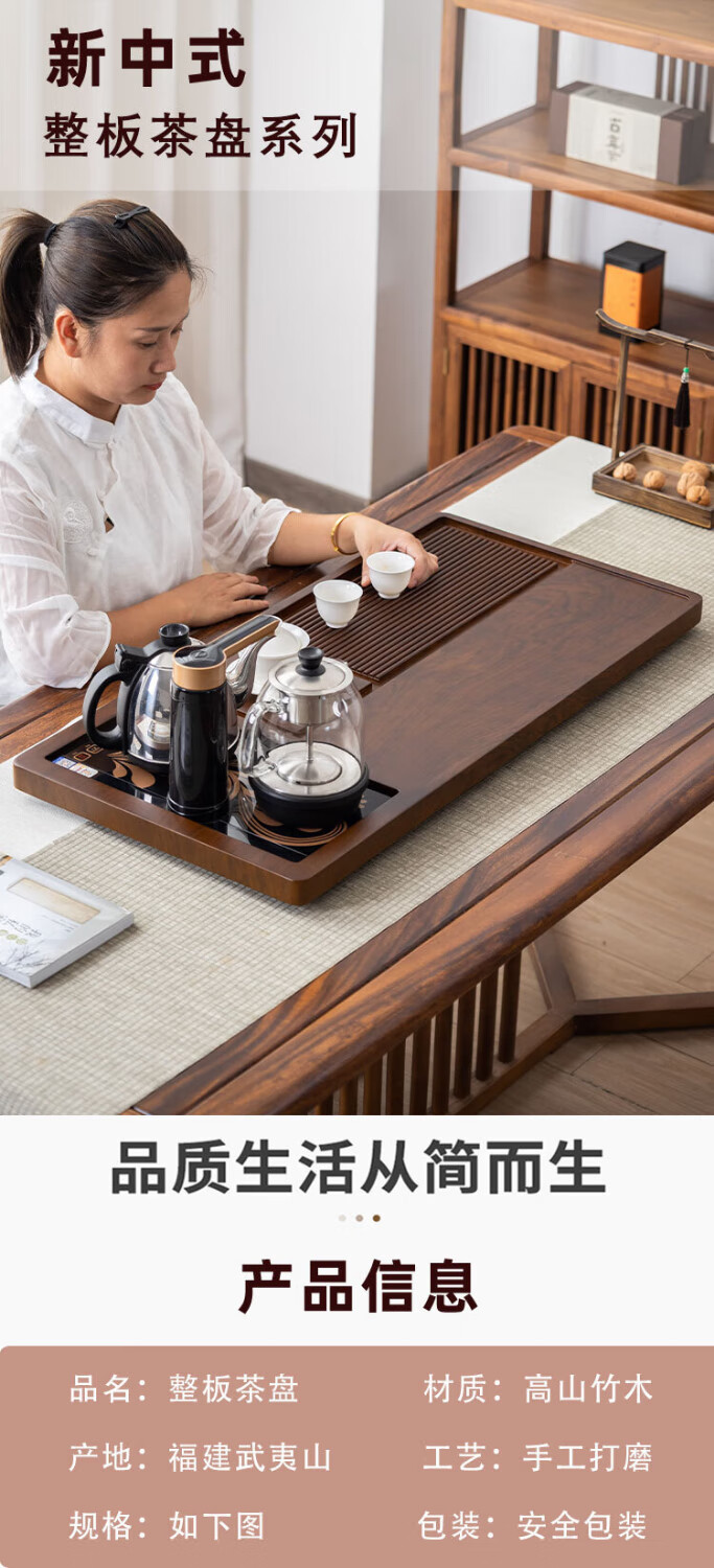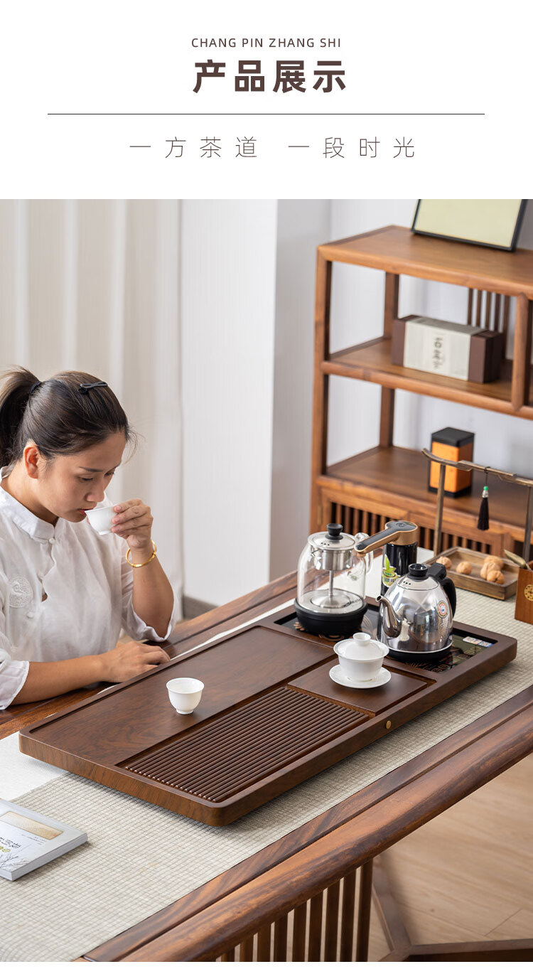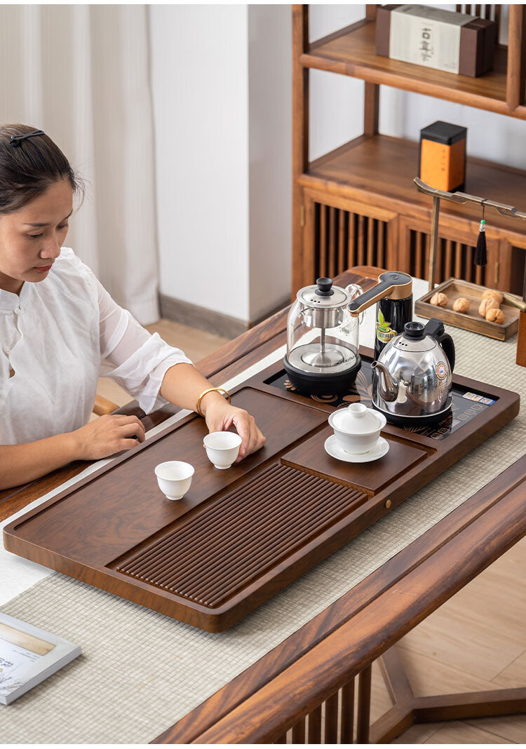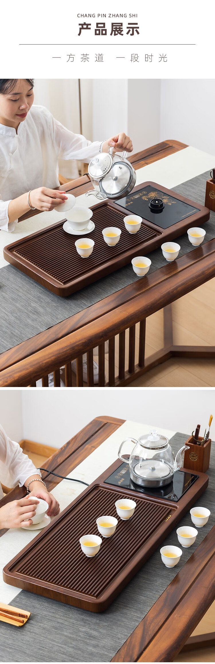 Chenshi tea tray solid wood home Bakelite style office tea set complete set fully automatic Kung Fu tea table kettle integrated Huanghuali color Pinyi 80*43 open style without electrical appliances