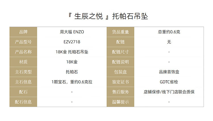 Chow Tai Fook ENZO Birthday Joy 18K Gold Topaz Pendant EZV2718 Birthday Gift Free Silver Chain 18K Gold Topaz Pendant