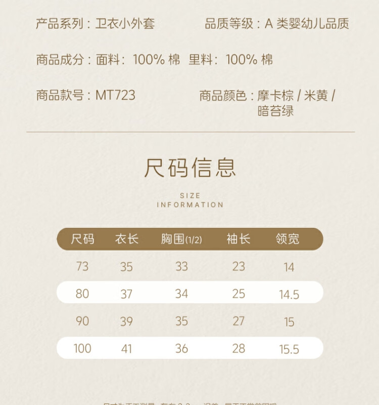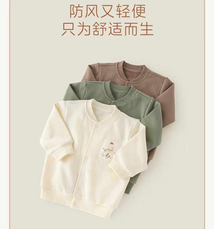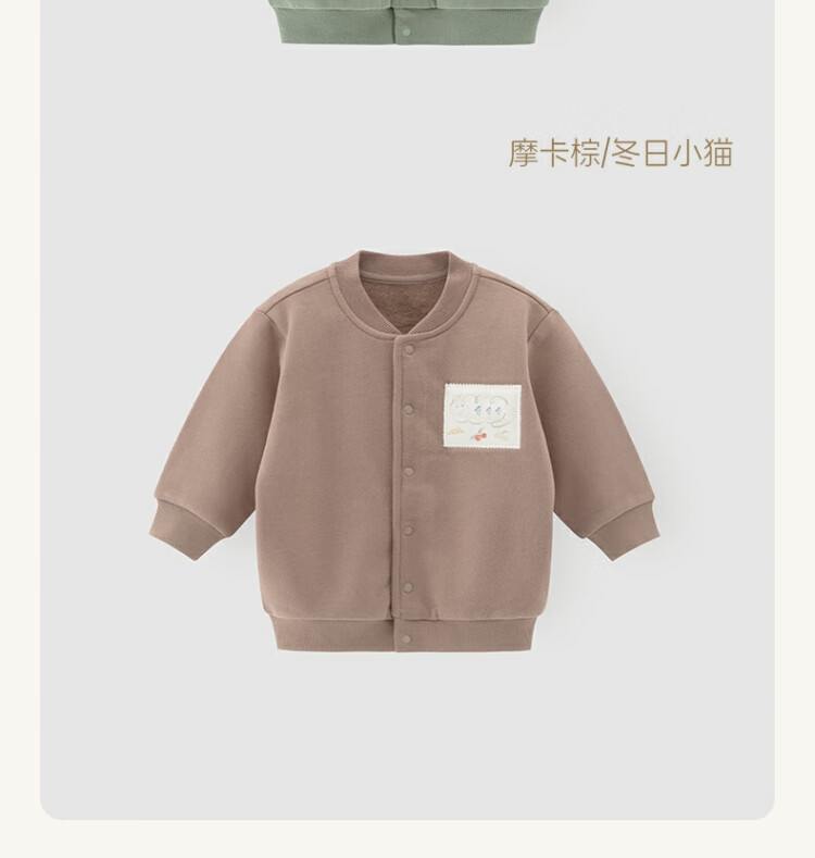 Wooden cotton baby fleece small coat autumn and winter baby cardigan going out pure cotton sweatshirt baby warm top autumn clothing Mocha brown winter kitten 80