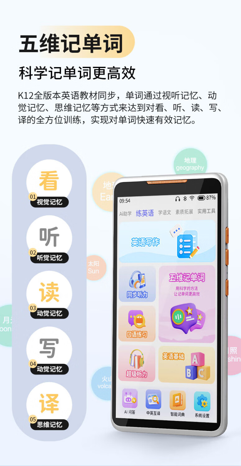 Haojixing English Listening Walkman Pocket Learning Machine Listening Treasure English Learning Listening and Listening Treasure Listening Machine Ear Player Primary School Junior High School General Education Artifact Children's Gift D55 Point Reading Version 128G-Synchronized Point Reading Full Subject Synchronization